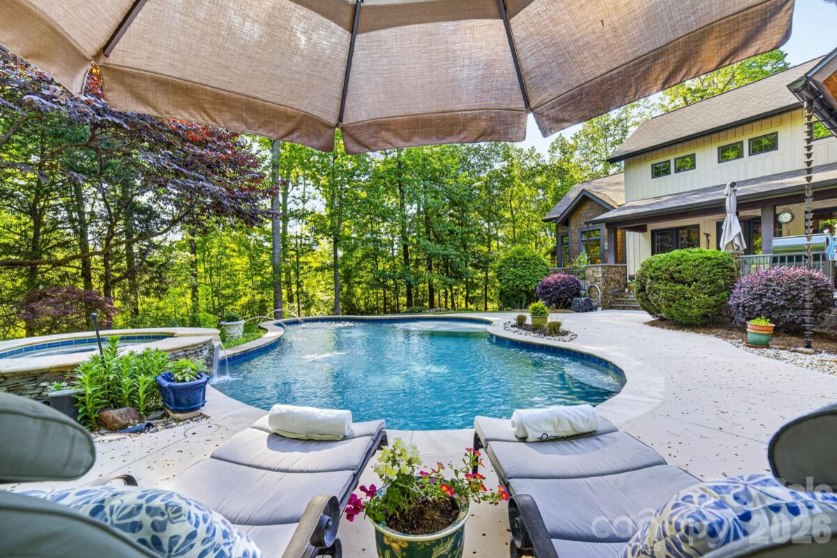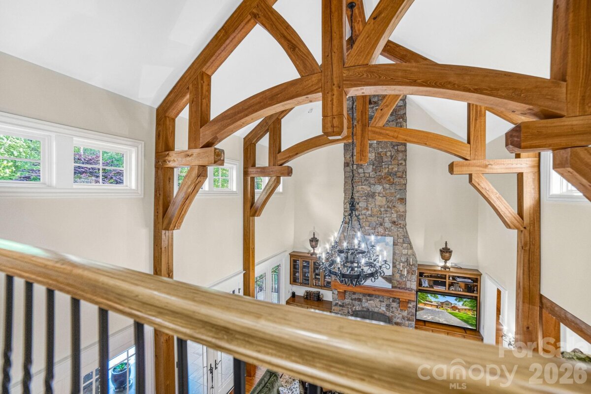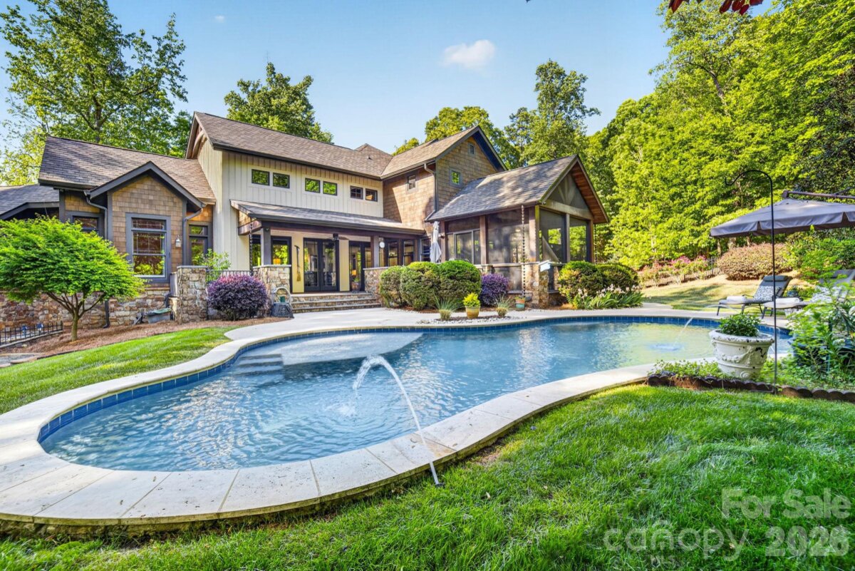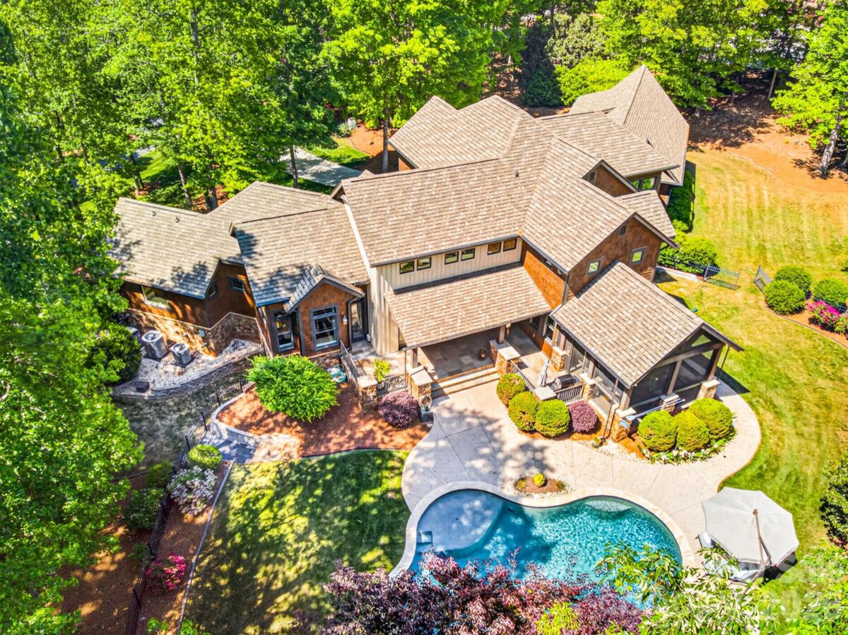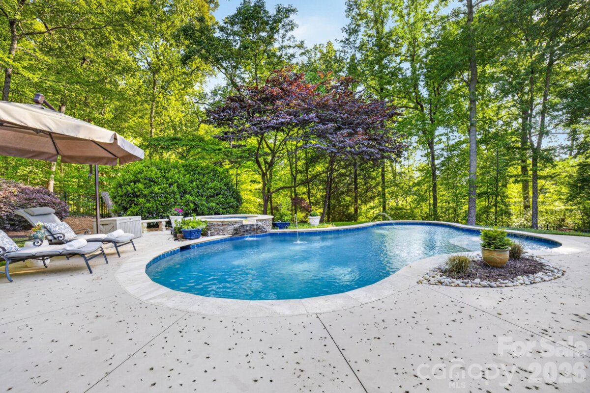 A Sanctuary of Nature and Luxury...14705 Henry Harrison Stillwell Dr., Huntersville Welcome to this award-winning custom home in Stillwell, one of the most exclusive gated communities near Lake Norman. Exceptional craftsmanship defines this rare, serene retreat on 4 wooded acres in the gated Stillwell community near Lake Norman. Built by Kelly Custom Homes and architecturally designed with the owner in mind to maximize the natural setting, this 4BR/4.5BA home features a main-level primary suite and natural finishes. Architectural highlights include a dramatic vaulted great room with exposed hammer-beam trusses and cypress beams, a study/flex room, office, solid-core 8' doors, stunning stone fireplace, custom built-ins, and refinished wide-plank floors (2025). The chef’s kitchen offers a large island with a vegetable sink, GE Monogram double ovens, a 6-burner gas cooktop, Dacor hood, hammered copper sink, butler’s pantry with wine chiller, and a very large walk-in pantry. The primary bedroom is a beautiful retreat for early morning bird watching and evening stars, from the window seat with storage to relaxing in bed. The vaulted ceiling with cypress beams and beautiful architectural aspects make this room a special place! The thoughtfully curated primary bathroom includes heated limestone floors, separate Carrera marble sinks plus a vanity area, custom framed mirrors, beautiful lighting and a dual slipper tub with a large window view of the private side yard. The generously sized windowed shower includes a ledge and rain and hand shower heads. The upper level includes 3 beautiful BRs (two with ensuite baths), a loft overlooking the stunning great room & a recreation room. Special features include a secret room with a study nook & sliding bookcase, a laundry chute to the main level laundry and walk-in storage. Ideal for entertaining, the outdoor spaces include covered bluestone porches, a screened porch with cedar beams, beadboard ceiling and bluestone flooring, and an updated, heated PebbleSheen pool and spa with tanning ledge and umbrella stand. Notable features include a stone and cedar shake exterior, custom Sapele mahogany front doors, an insulated three-car garage with epoxy coated flooring and ample parking area, a new designer series GAF Timberline roof, gutters & gutter guards, rain chains (2025), a conditioned and sealed tall crawl space, whole house water filtration & kitchen RO system, and updated HVAC systems. Privacy. Craftsmanship. Design. Nature. Resort amenities. A home of lasting beauty—thoughtfully constructed, meticulously maintained, and perfectly located. A rare blend of design, privacy, and location, Stillwell is one of Huntersville's best neighborhoods with just 36 homes and located minutes from Lake Norman, I-77 exit 23 & 25 and an easy commute to Charlotte.