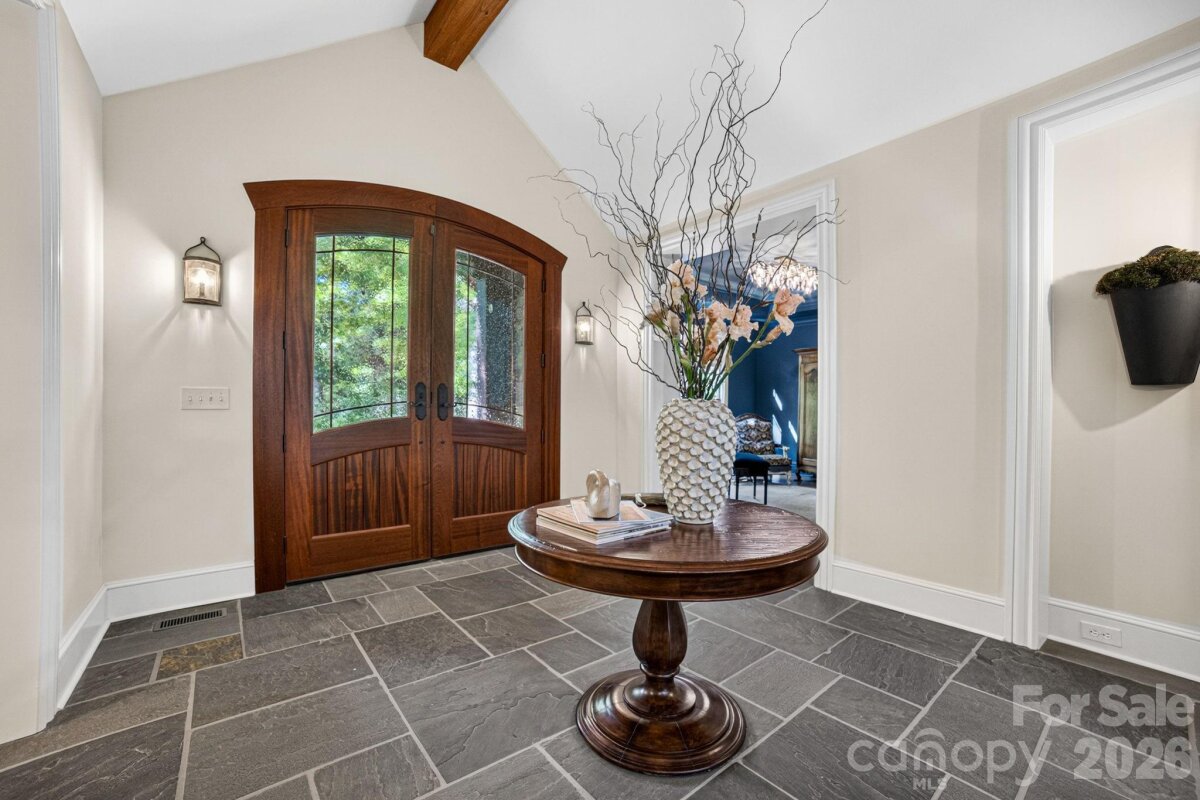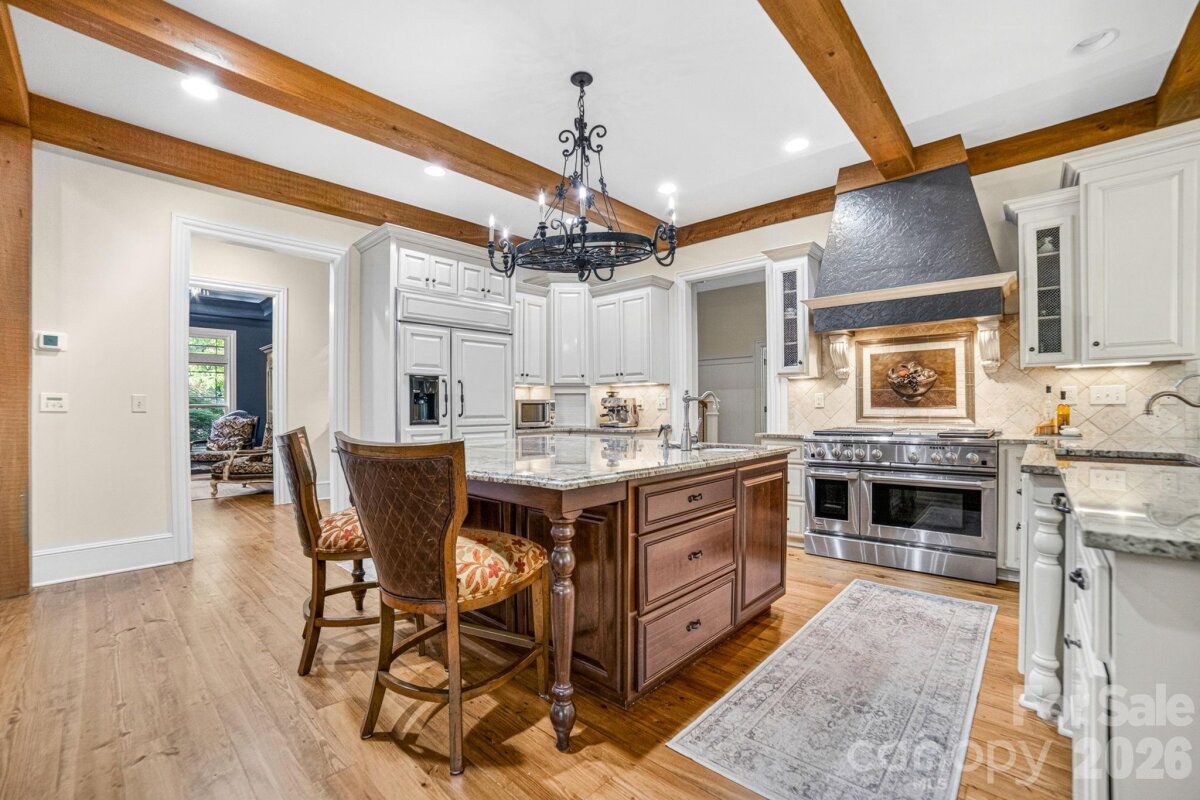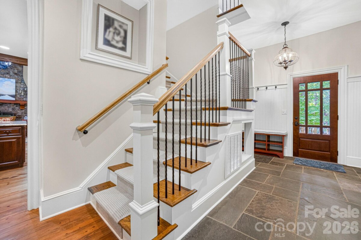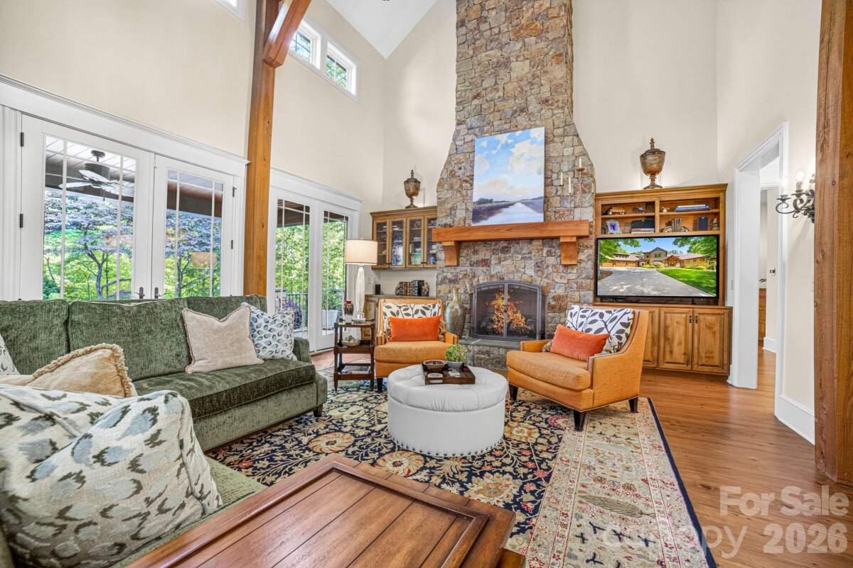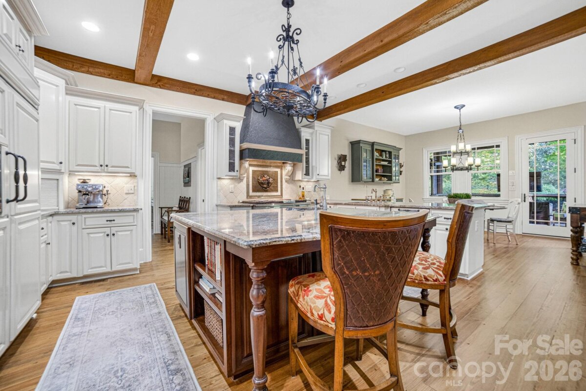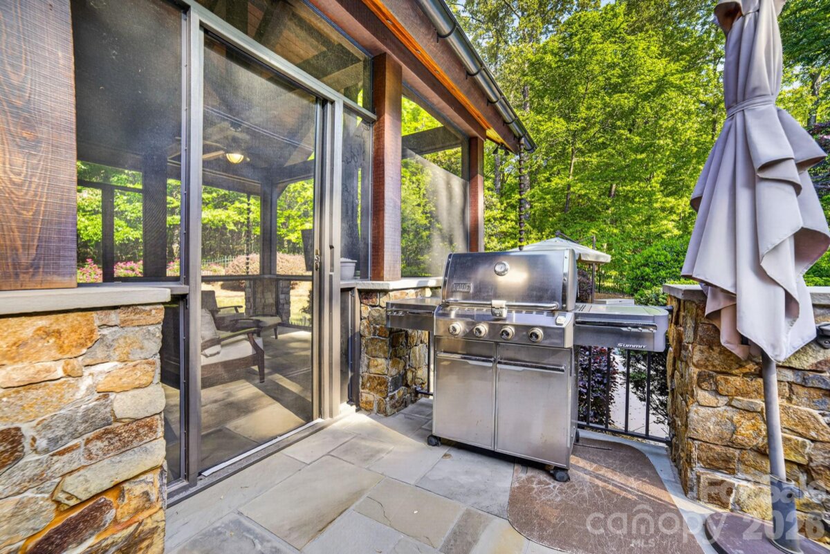 A Sanctuary of Nature and Luxury...14705 Henry Harrison Stillwell Dr., Huntersville Welcome to this award-winning custom home in Stillwell, one of the most exclusive gated communities near Lake Norman. Exceptional craftsmanship defines this rare, serene retreat on 4 wooded acres in the gated Stillwell community near Lake Norman. Built by Kelly Custom Homes and architecturally designed with the owner in mind to maximize the natural setting, this 4BR/4.5BA home features a main-level primary suite and natural finishes. Architectural highlights include a dramatic vaulted great room with exposed hammer-beam trusses and cypress beams, a study/flex room, office, solid-core 8' doors, stunning stone fireplace, custom built-ins, and refinished wide-plank floors (2025). The chef’s kitchen offers a large island with a vegetable sink, GE Monogram double ovens, a 6-burner gas cooktop, Dacor hood, hammered copper sink, butler’s pantry with wine chiller, and a very large walk-in pantry. The primary bedroom is a beautiful retreat for early morning bird watching and evening stars, from the window seat with storage to relaxing in bed. The vaulted ceiling with cypress beams and beautiful architectural aspects make this room a special place! The thoughtfully curated primary bathroom includes heated limestone floors, separate Carrera marble sinks plus a vanity area, custom framed mirrors, beautiful lighting and a dual slipper tub with a large window view of the private side yard. The generously sized windowed shower includes a ledge and rain and hand shower heads. The upper level includes 3 beautiful BRs (two with ensuite baths), a loft overlooking the stunning great room & a recreation room. Special features include a secret room with a study nook & sliding bookcase, a laundry chute to the main level laundry and walk-in storage. Ideal for entertaining, the outdoor spaces include covered bluestone porches, a screened porch with cedar beams, beadboard ceiling and bluestone flooring, and an updated, heated PebbleSheen pool and spa with tanning ledge and umbrella stand. Notable features include a stone and cedar shake exterior, custom Sapele mahogany front doors, an insulated three-car garage with epoxy coated flooring and ample parking area, a new designer series GAF Timberline roof, gutters & gutter guards, rain chains (2025), a conditioned and sealed tall crawl space, whole house water filtration & kitchen RO system, and updated HVAC systems. Privacy. Craftsmanship. Design. Nature. Resort amenities. A home of lasting beauty—thoughtfully constructed, meticulously maintained, and perfectly located. A rare blend of design, privacy, and location, Stillwell is one of Huntersville's best neighborhoods with just 36 homes and located minutes from Lake Norman, I-77 exit 23 & 25 and an easy commute to Charlotte.