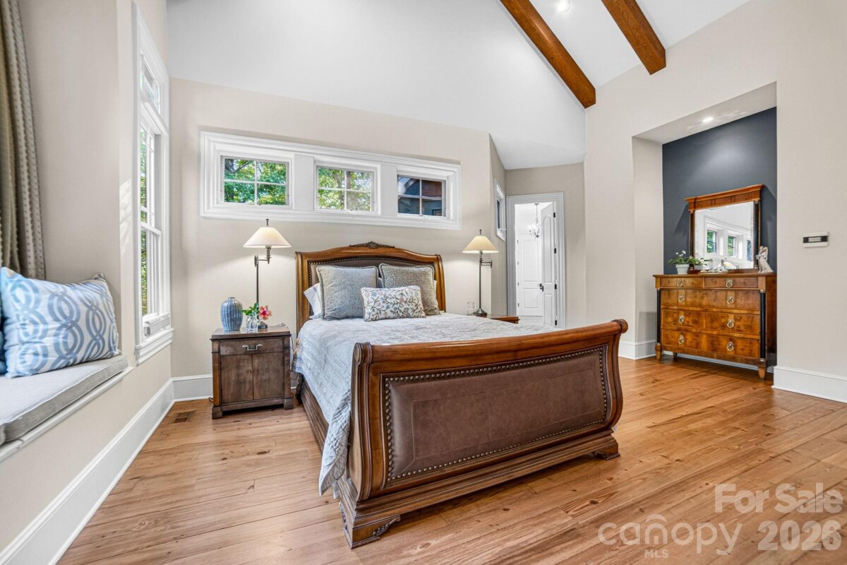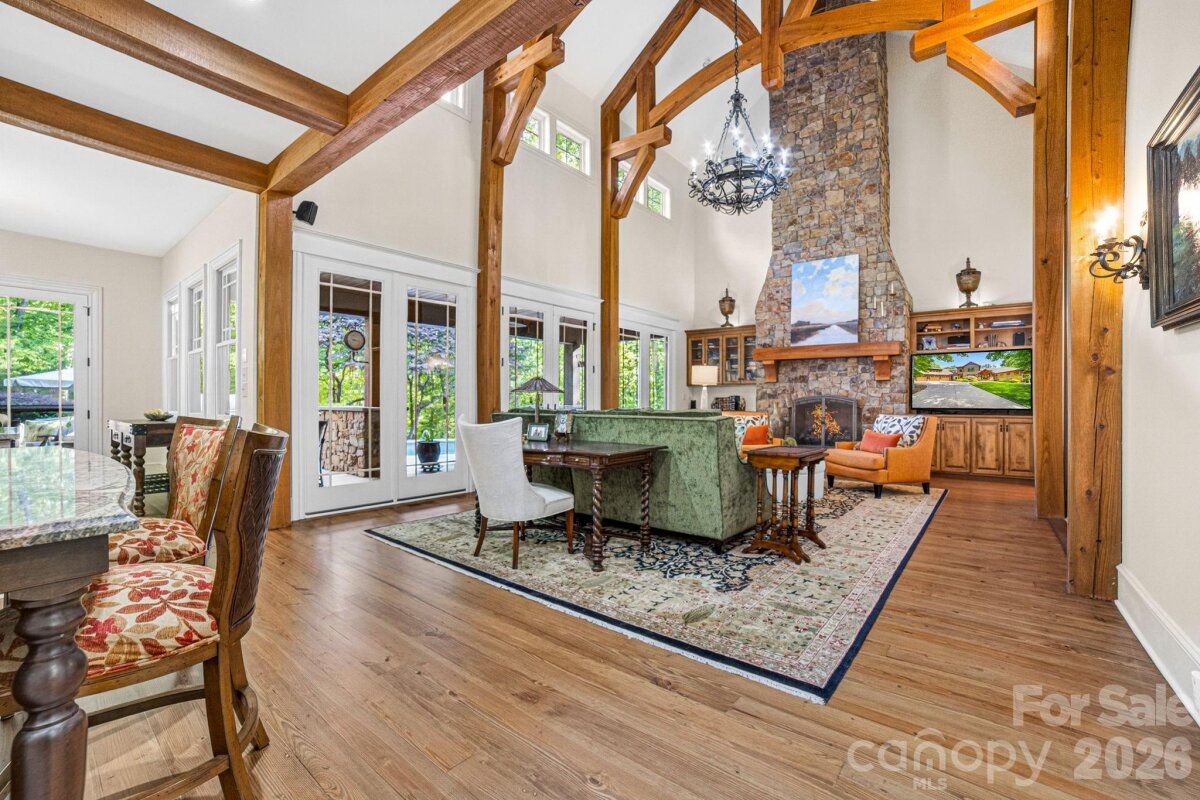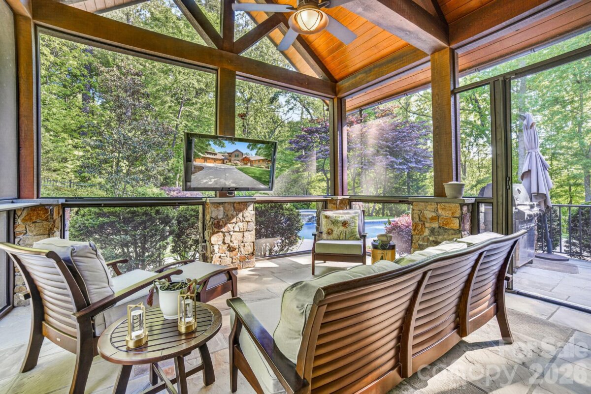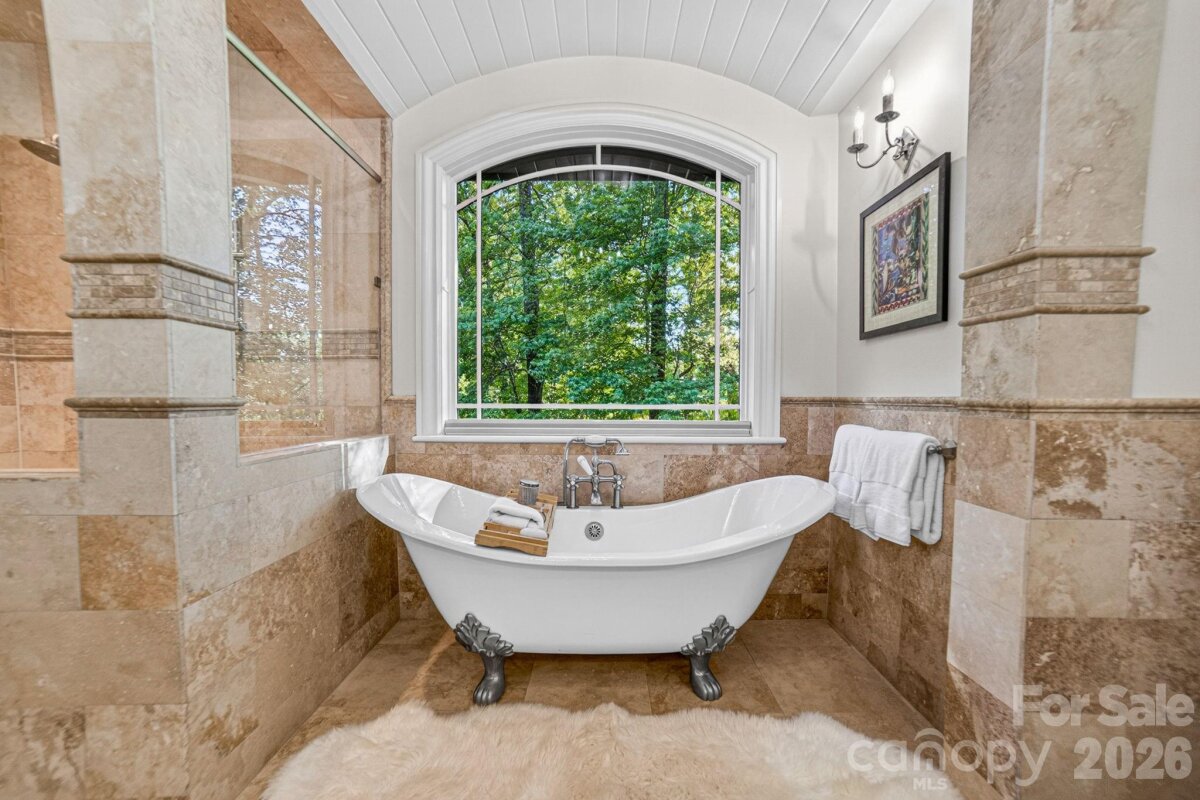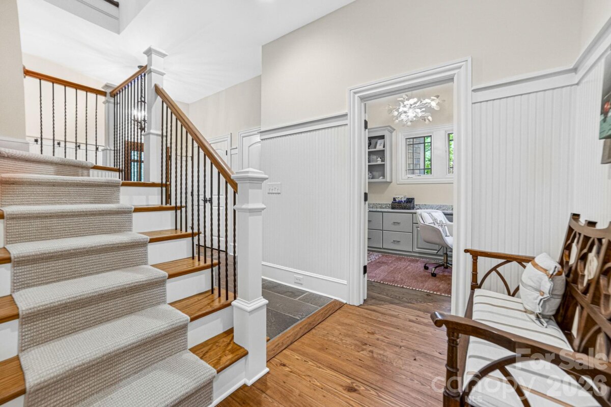 A Sanctuary of Nature and Luxury...14705 Henry Harrison Stillwell Dr., Huntersville Welcome to this award-winning custom home in Stillwell, one of the most exclusive gated communities near Lake Norman. Exceptional craftsmanship defines this rare, serene retreat on 4 wooded acres in the gated Stillwell community near Lake Norman. Built by Kelly Custom Homes and architecturally designed with the owner in mind to maximize the natural setting, this 4BR/4.5BA home features a main-level primary suite and natural finishes. Architectural highlights include a dramatic vaulted great room with exposed hammer-beam trusses and cypress beams, a study/flex room, office, solid-core 8' doors, stunning stone fireplace, custom built-ins, and refinished wide-plank floors (2025). The chef’s kitchen offers a large island with a vegetable sink, GE Monogram double ovens, a 6-burner gas cooktop, Dacor hood, hammered copper sink, butler’s pantry with wine chiller, and a very large walk-in pantry. The primary bedroom is a beautiful retreat for early morning bird watching and evening stars, from the window seat with storage to relaxing in bed. The vaulted ceiling with cypress beams and beautiful architectural aspects make this room a special place! The thoughtfully curated primary bathroom includes heated limestone floors, separate Carrera marble sinks plus a vanity area, custom framed mirrors, beautiful lighting and a dual slipper tub with a large window view of the private side yard. The generously sized windowed shower includes a ledge and rain and hand shower heads. The upper level includes 3 beautiful BRs (two with ensuite baths), a loft overlooking the stunning great room & a recreation room. Special features include a secret room with a study nook & sliding bookcase, a laundry chute to the main level laundry and walk-in storage. Ideal for entertaining, the outdoor spaces include covered bluestone porches, a screened porch with cedar beams, beadboard ceiling and bluestone flooring, and an updated, heated PebbleSheen pool and spa with tanning ledge and umbrella stand. Notable features include a stone and cedar shake exterior, custom Sapele mahogany front doors, an insulated three-car garage with epoxy coated flooring and ample parking area, a new designer series GAF Timberline roof, gutters & gutter guards, rain chains (2025), a conditioned and sealed tall crawl space, whole house water filtration & kitchen RO system, and updated HVAC systems. Privacy. Craftsmanship. Design. Nature. Resort amenities. A home of lasting beauty—thoughtfully constructed, meticulously maintained, and perfectly located. A rare blend of design, privacy, and location, Stillwell is one of Huntersville's best neighborhoods with just 36 homes and located minutes from Lake Norman, I-77 exit 23 & 25 and an easy commute to Charlotte.