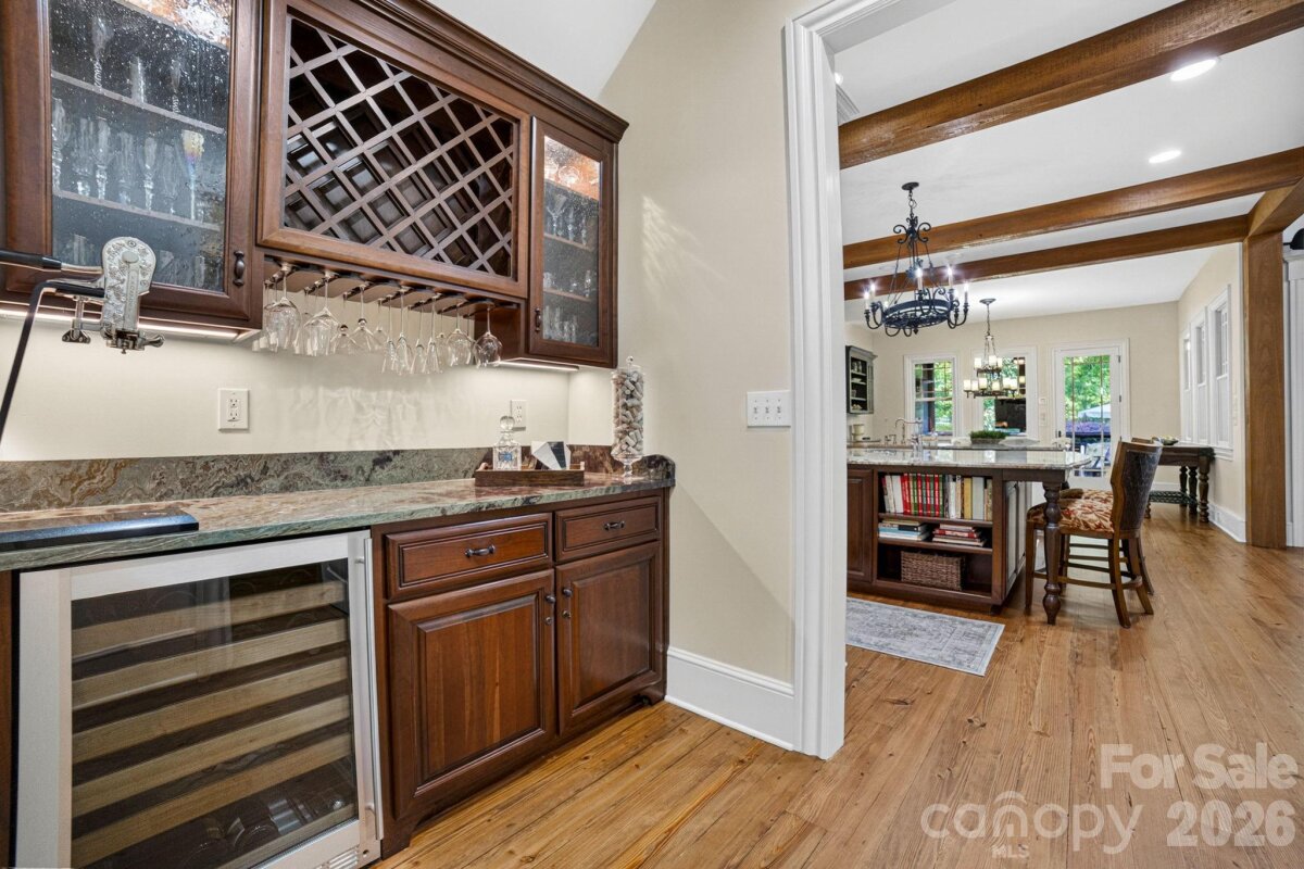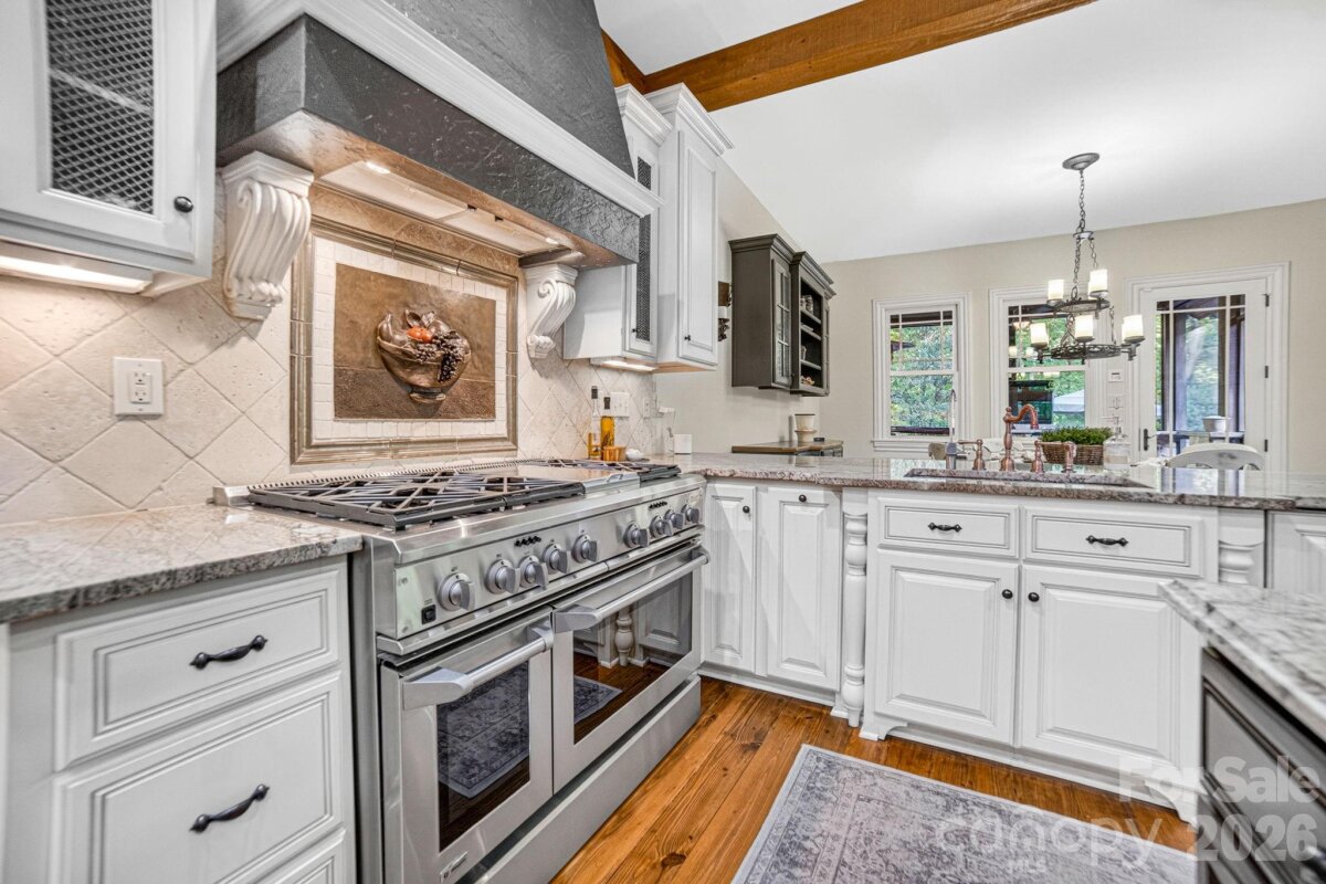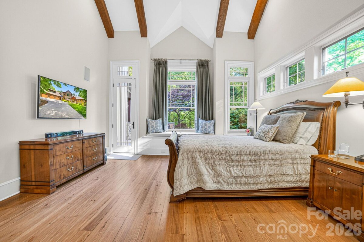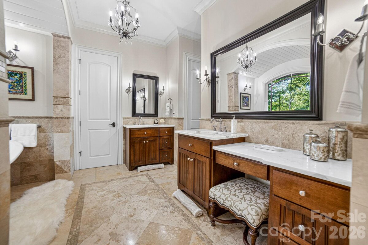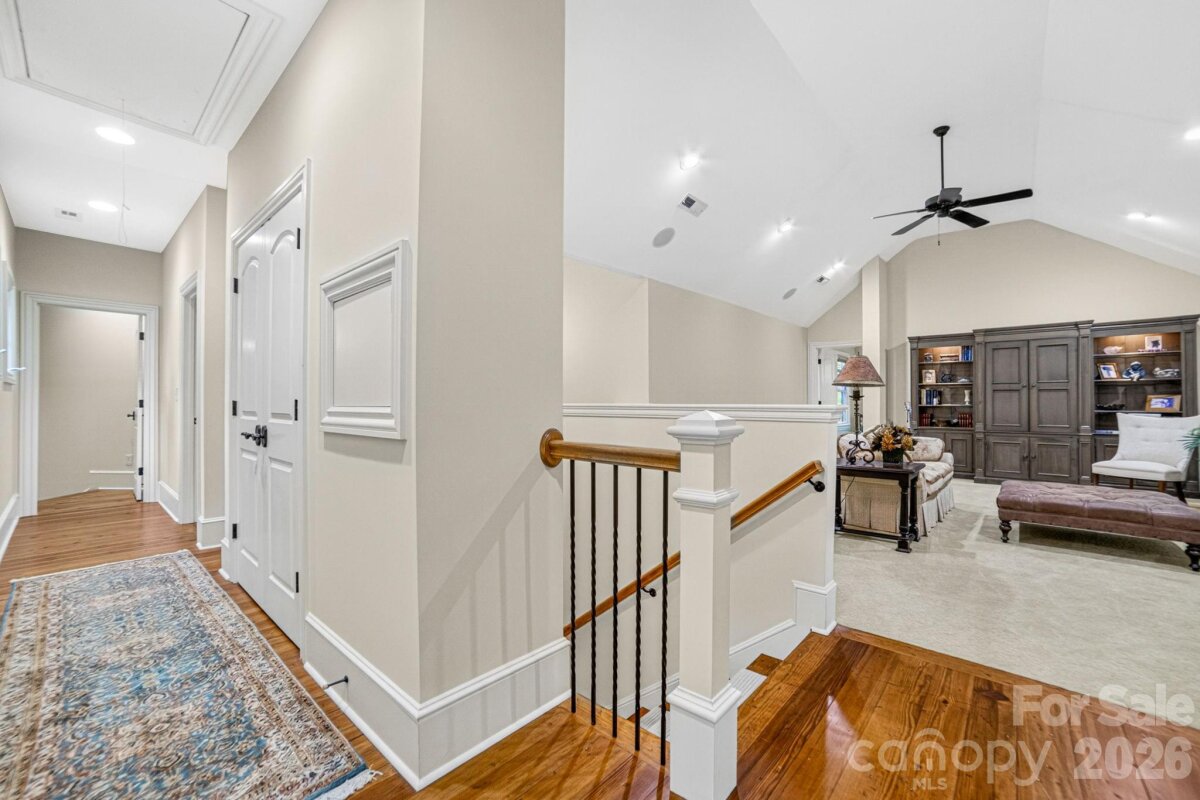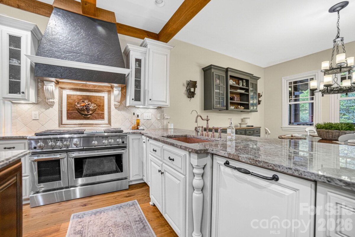 A Sanctuary of Nature and Luxury...14705 Henry Harrison Stillwell Dr., Huntersville Welcome to this award-winning custom home in Stillwell, one of the most exclusive gated communities near Lake Norman. Exceptional craftsmanship defines this rare, serene retreat on 4 wooded acres in the gated Stillwell community near Lake Norman. Built by Kelly Custom Homes and architecturally designed with the owner in mind to maximize the natural setting, this 4BR/4.5BA home features a main-level primary suite and natural finishes. Architectural highlights include a dramatic vaulted great room with exposed hammer-beam trusses and cypress beams, a study/flex room, office, solid-core 8' doors, stunning stone fireplace, custom built-ins, and refinished wide-plank floors (2025). The chef’s kitchen offers a large island with a vegetable sink, GE Monogram double ovens, a 6-burner gas cooktop, Dacor hood, hammered copper sink, butler’s pantry with wine chiller, and a very large walk-in pantry. The primary bedroom is a beautiful retreat for early morning bird watching and evening stars, from the window seat with storage to relaxing in bed. The vaulted ceiling with cypress beams and beautiful architectural aspects make this room a special place! The thoughtfully curated primary bathroom includes heated limestone floors, separate Carrera marble sinks plus a vanity area, custom framed mirrors, beautiful lighting and a dual slipper tub with a large window view of the private side yard. The generously sized windowed shower includes a ledge and rain and hand shower heads. The upper level includes 3 beautiful BRs (two with ensuite baths), a loft overlooking the stunning great room & a recreation room. Special features include a secret room with a study nook & sliding bookcase, a laundry chute to the main level laundry and walk-in storage. Ideal for entertaining, the outdoor spaces include covered bluestone porches, a screened porch with cedar beams, beadboard ceiling and bluestone flooring, and an updated, heated PebbleSheen pool and spa with tanning ledge and umbrella stand. Notable features include a stone and cedar shake exterior, custom Sapele mahogany front doors, an insulated three-car garage with epoxy coated flooring and ample parking area, a new designer series GAF Timberline roof, gutters & gutter guards, rain chains (2025), a conditioned and sealed tall crawl space, whole house water filtration & kitchen RO system, and updated HVAC systems. Privacy. Craftsmanship. Design. Nature. Resort amenities. A home of lasting beauty—thoughtfully constructed, meticulously maintained, and perfectly located. A rare blend of design, privacy, and location, Stillwell is one of Huntersville's best neighborhoods with just 36 homes and located minutes from Lake Norman, I-77 exit 23 & 25 and an easy commute to Charlotte.
