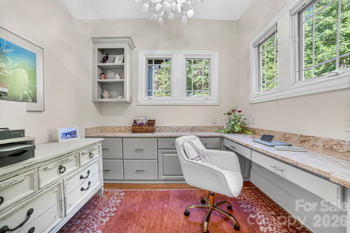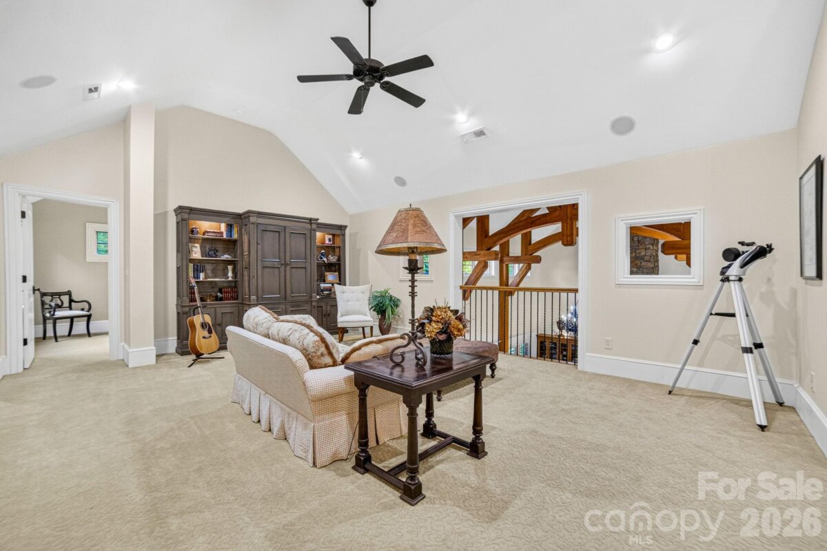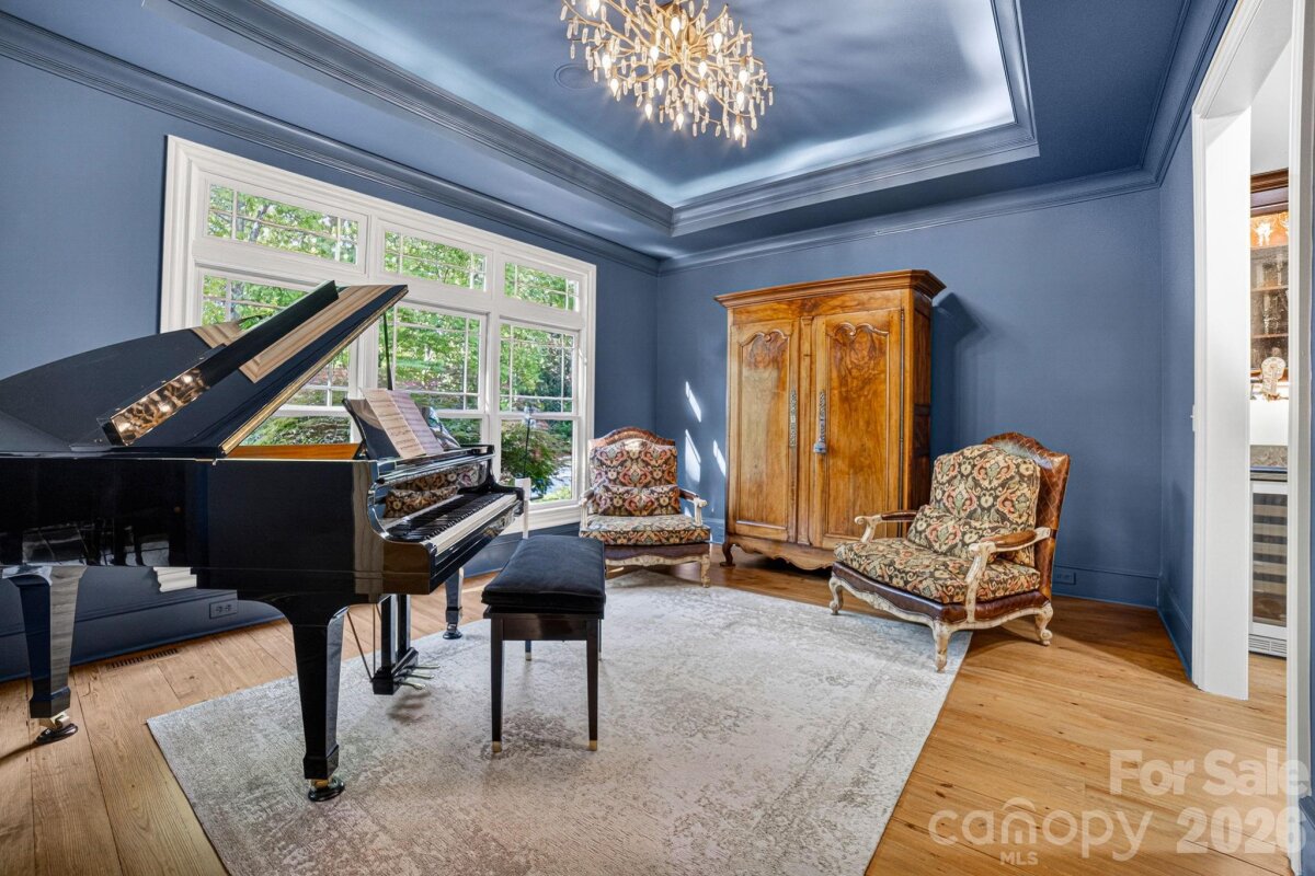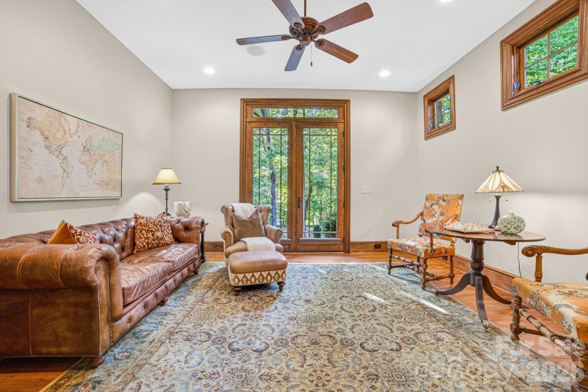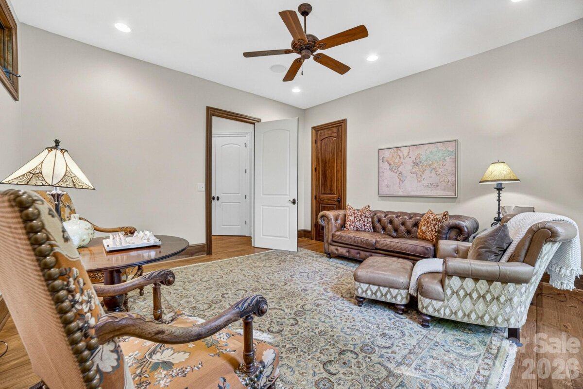 A Sanctuary of Nature and Luxury...14705 Henry Harrison Stillwell Dr., Huntersville Welcome to this award-winning custom home in Stillwell, one of the most exclusive gated communities near Lake Norman. Exceptional craftsmanship defines this rare, serene retreat on 4 wooded acres in the gated Stillwell community near Lake Norman. Built by Kelly Custom Homes and architecturally designed with the owner in mind to maximize the natural setting, this 4BR/4.5BA home features a main-level primary suite and natural finishes. Architectural highlights include a dramatic vaulted great room with exposed hammer-beam trusses and cypress beams, a study/flex room, office, solid-core 8' doors, stunning stone fireplace, custom built-ins, and refinished wide-plank floors (2025). The chef’s kitchen offers a large island with a vegetable sink, GE Monogram double ovens, a 6-burner gas cooktop, Dacor hood, hammered copper sink, butler’s pantry with wine chiller, and a very large walk-in pantry. The primary bedroom is a beautiful retreat for early morning bird watching and evening stars, from the window seat with storage to relaxing in bed. The vaulted ceiling with cypress beams and beautiful architectural aspects make this room a special place! The thoughtfully curated primary bathroom includes heated limestone floors, separate Carrera marble sinks plus a vanity area, custom framed mirrors, beautiful lighting and a dual slipper tub with a large window view of the private side yard. The generously sized windowed shower includes a ledge and rain and hand shower heads. The upper level includes 3 beautiful BRs (two with ensuite baths), a loft overlooking the stunning great room & a recreation room. Special features include a secret room with a study nook & sliding bookcase, a laundry chute to the main level laundry and walk-in storage. Ideal for entertaining, the outdoor spaces include covered bluestone porches, a screened porch with cedar beams, beadboard ceiling and bluestone flooring, and an updated, heated PebbleSheen pool and spa with tanning ledge and umbrella stand. Notable features include a stone and cedar shake exterior, custom Sapele mahogany front doors, an insulated three-car garage with epoxy coated flooring and ample parking area, a new designer series GAF Timberline roof, gutters & gutter guards, rain chains (2025), a conditioned and sealed tall crawl space, whole house water filtration & kitchen RO system, and updated HVAC systems. Privacy. Craftsmanship. Design. Nature. Resort amenities. A home of lasting beauty—thoughtfully constructed, meticulously maintained, and perfectly located. A rare blend of design, privacy, and location, Stillwell is one of Huntersville's best neighborhoods with just 36 homes and located minutes from Lake Norman, I-77 exit 23 & 25 and an easy commute to Charlotte.