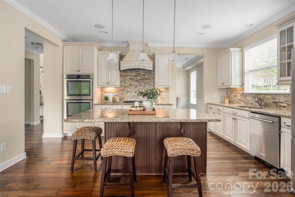 Located in the highly sought after Vermillion neighborhood, this exceptional one-owner home has been impeccably cared for and truly has it all! Meticulously maintained with an extensive list of features, this property offers both luxury and functionality at every turn. Step outside to your private backyard oasis featuring a heated saltwater pool and spa with lighting, beautiful travertine, and two cabanas perfect for entertaining or relaxing. Enjoy outdoor living on the screened porch with privacy shades, overlooking the serene, private wooded back yard with stairs leading down to the pool area. Inside, the thoughtfully designed floor plan offers 7 bedrooms, including a guest ensuite on the main level, along with 4 full baths and a half bath. The spacious kitchen is equipped with a large island, double ovens, two pantries, under-cabinet lighting, and a convenient desk nook, flowing seamlessly into the great room with a gas fireplace. The home also features a versatile, light-filled living room/office, perfect for work or additional gathering space. Upstairs, you’ll find the laundry room complete with washer and dryer, as well as a well-appointed secondary full bath with dual (his and hers) sinks. One of the bedrooms adjacent to the primary suite has been converted into an oversized closet but can easily be returned to a bedroom if desired. The fully finished basement expands your living space with a bedroom, full bath, bonus room, flex space, and abundant storage, including a heated and cooled storage area. Additional highlights include a 3-car carriage-style garage (2-door + 1-door), a 24kW Generac generator, whole house surge protector, outdoor lighting, and the HVAC and pest services have been maintained under annual service plans. Vermillion also features two additional saltwater pools, a playground, and the community’s very own restaurant, Harvey's Bar and Grill. From the home, downtown Huntersville is just approximately 1.5 miles away, offering restaurants, a coffee shop, brewery, local shops, and Veterans Park. Vermillion will also be part of the future greenway connecting directly to downtown Huntersville.