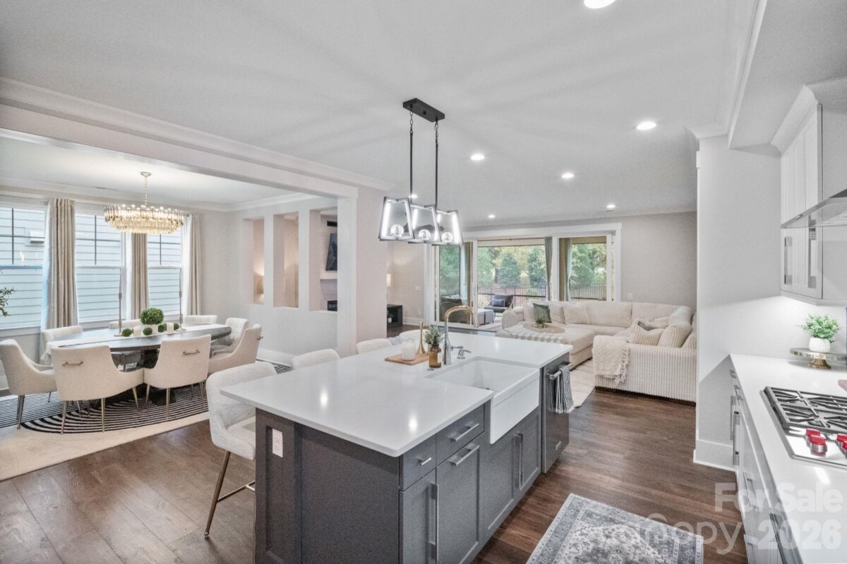 Welcome home to this stunning 2024 Covina plan by Classica Homes in the highly sought-after Huntson Reserve! Thoughtfully designed with countless upgrades, this home blends modern luxury with everyday comfort. The bright, open floor plan showcases a chef’s kitchen featuring a Wolf gas range, upgraded Kitchen Aid SS appliances, quartz countertops, upgraded cabinetry, and a gorgeous backsplash. The spacious great room centers around a stunning linear gas fireplace and flows seamlessly into the dining area and the relaxing screened-in patio, perfect for entertaining. The main level offers both a serene primary suite with a custom walk-in closet and a generous guest ensuite bedroom. A private study with glass French doors and a convenient drop zone and laundry room with direct access to the primary closet add to the home’s functionality. Upstairs, you will find an oversized loft, flex space (currently being used as a 2nd office but also perfect for a home gym), and two additional ensuite bedrooms, which is an upgrade for this plan. You will be thrilled to know there is a large walk-in attic for extra storage! Enjoy the beautifully landscaped, fenced backyard with lush grass and irrigation system already in place. High-end roller shades throughout, including motorized shades in the primary, complete this exceptional home. The garage is also equipped with an EV charger outlet. *PROFESSIONAL POOL RENDERINGS/PHOTOS TO SHOW WHAT COULD BE BUILT IN BACKYARD PER ALLOTED IMPERVIOUS* Huntson Reserve offers walking trails, community green spaces, and a prime location close to Birkdale Village, Lake Norman, shopping, dining, and Rosemont Nature Park via Torrence Creek Parkway. Come check it out for yourself!