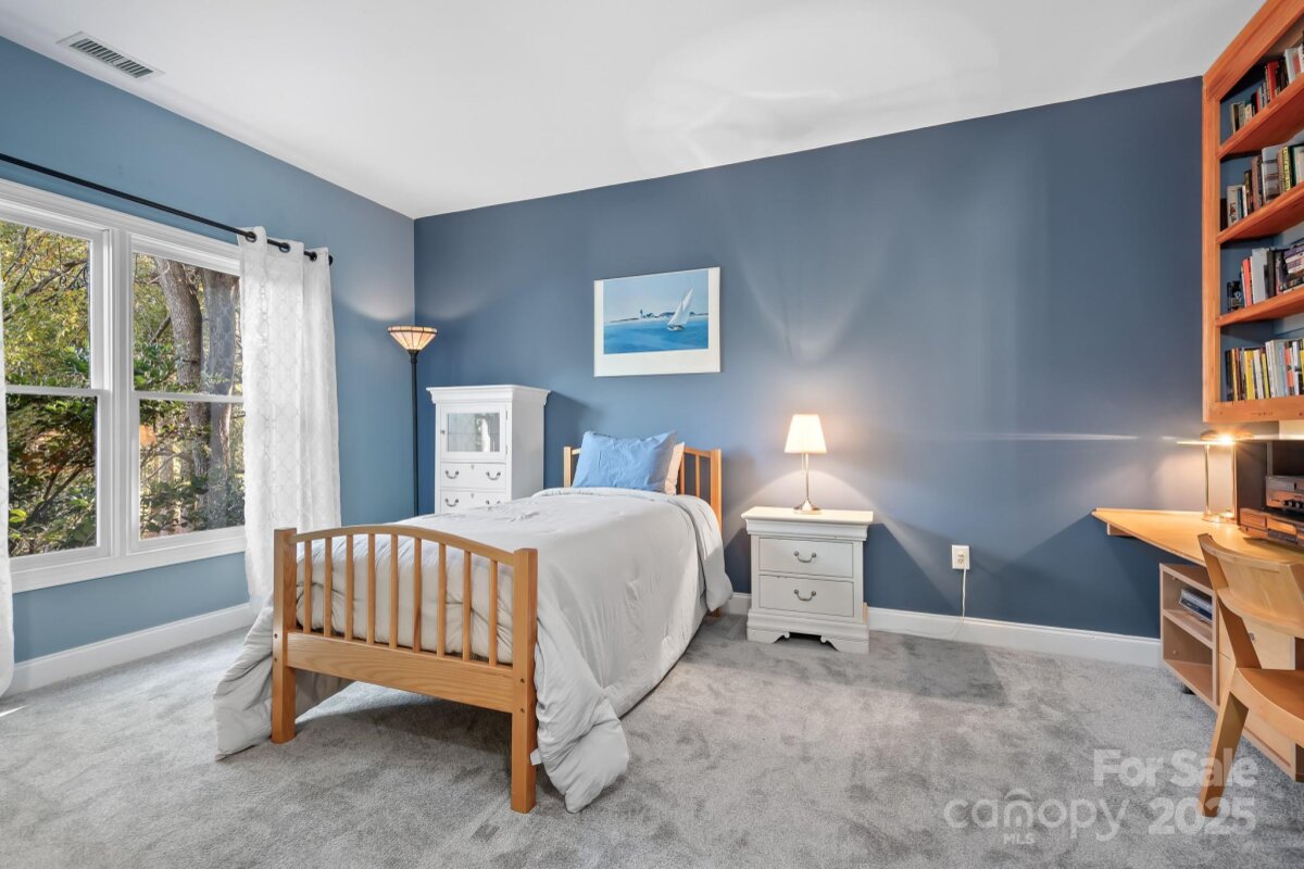 Welcome to 16033 Agincourt Drive, located in Birkdale, one of Huntersville’s premier golf course communities—just minutes to Birkdale Village, Lake Norman, I-77, and area greenways. Premium cul-de-sac location and on the GOLF COURSE overlooking the 14th FAIRWAY! This classic FULL BRICK 2-story home features 4 bedrooms, 3.5 baths, large bonus, an attached side-load 2-car garage, and almost 3600 square feet of beautiful and well-planned usable living space. A soaring 2-story foyer welcomes you into this stunning home, showcasing custom artistic finishes and hardwood floors throughout most of the main level. Beautiful streams of natural sunlight pour into the home to add brightness and warmth. The great room impresses with floor-to-ceiling windows and a custom tile surround wood-burning fireplace (also has gas starter to add logs), while the formal dining room provides an elegant space for gatherings—or doubles as a piano or music room. The front living/home office offers built-ins and decorative tile accents, continuing the home’s unique artistic flair. Enjoy mornings and evenings on the slate patio surrounded by the views and sounds of nature, offering both privacy and scenic golf course views. The open kitchen and large breakfast area flow seamlessly into the great room, creating an ideal setting for entertaining or relaxed daily living. The bright and spacious upstairs offers generous secondary bedrooms and a flexible bonus room highlighted by beautiful ceiling lines and custom built-ins, ideal for work, play, or relaxation. The upstairs features two bedrooms connected by a shared Jack-and-Jill bath, while the opposite side offers another Jack-and-Jill arrangement between a bedroom and the bonus room. Sitting on a spacious .33 acre lot, this property has been thoughtfully updated ~ NEW CARPET 2025, hardwoods refinished (2022), interior freshly painted (2022), kitchen refreshed (2022), 2 TRANE AC and FURNACES units 2015, and roof replaced (2017). Community amenities include clubhouse, pool, tennis courts, sand volleyball courts, basketball courts, park, side walks that take you straight to Birkdale Village if you want to walk or you can bike or drive in minutes. Close to shopping, dining, medical, I-77 and top Huntersville conveniences.