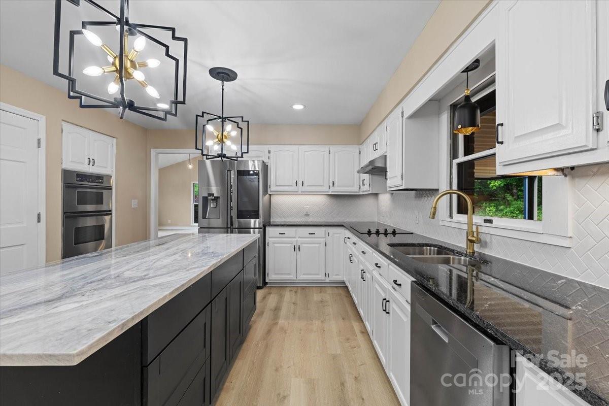 Country elegance are the two words that distinctly separate 5916 Cashion Road from any other 5br 3ba home in Huntersville, North Carolina. This stately farmhouse evokes a sense of rustic tranquility with its classic, full-brick exterior, covered sitting-porch, large open floor plan, new flooring throughout, fresh paint, upgraded lighting and new natural stone surfaces throughout. This hidden gem has a multi-purpose sunroom that can be used as a home office, and formal living areas that boast of cathedral ceilings. The fully finished basement includes a recreation room w/ built in shelves and multi-platform theater that doubles as the home’s 5th bedroom suite. In addition, the basement level offers an inviting exercise room equipped with double boho ceiling fans, two additional bedrooms all of which contribute to nearly 5,000 square feet of timeless, one-of-a kind appeal to cultivate long-lasting memories. This is truly a place to call home that is independent of an HOA.