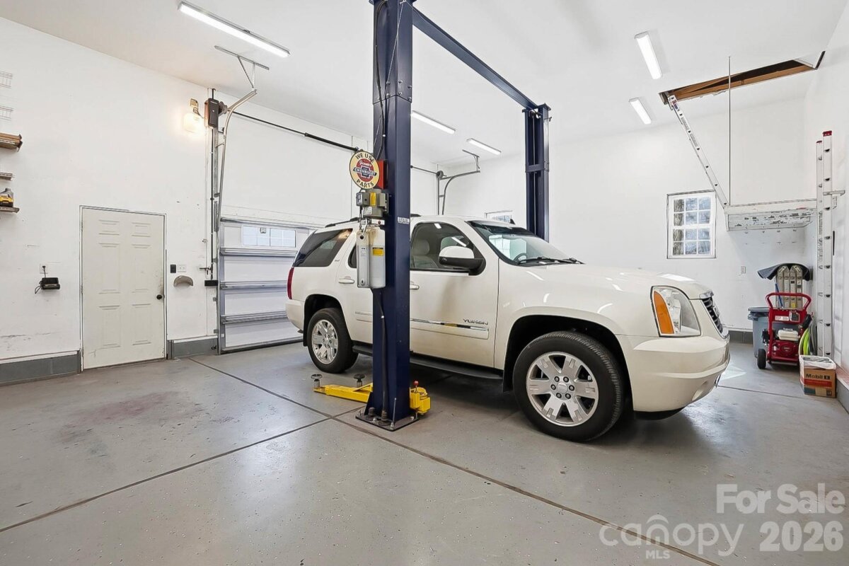 Located at the end of a quiet cul-de-sac on a private 1.2-acre lot, this custom home offers space, functionality, and quality construction inside and out. The exterior features durable Hardie board siding with stone accents, a covered front porch, and extensive driveway space. Car collectors, hobbyists, and those needing serious storage will appreciate the attached 3-car garage PLUS a massive detached garage equipped with a vehicle lift and load-bearing second-floor storage. The detached garage provides exceptional flexibility for additional vehicles, workshop space, equipment storage, or creative use. Inside, hardwood floors run throughout the entire home, creating a seamless and timeless feel. The open-concept main living area features soaring ceilings, abundant natural light, and a gas fireplace with stone surround. The layout flows easily into the kitchen, which includes granite countertops, custom cabinetry, stainless steel appliances, tile backsplash, and generous prep space. The main-level primary suite offers privacy and convenience, complete with hardwood flooring and a spacious en-suite bath. Also on the main level is an additional bedroom and full bath, providing flexible options for guests, office space, or multi-generational living. Upstairs, you’ll find additional bedrooms and living space, offering versatility for a variety of needs. Large windows throughout the home overlook the wooded setting, enhancing privacy and natural light. The backyard provides room to expand outdoor living areas, garden, or simply enjoy the peaceful 1.2-acre setting. Additional highlights: • Hardie board siding and stone exterior • Attached 3-car garage • Detached oversized garage with lift and second-floor load-bearing storage • Hardwood floors throughout • Primary suite on main level • Main-level secondary bedroom and full bath • Cul-de-sac location • Pre-listing home inspection completed; minor items addressed This move-in-ready home combines quality construction, flexible living space, and rare garage capacity — all on a private 1.2-acre lot in a desirable cul-de-sac setting.