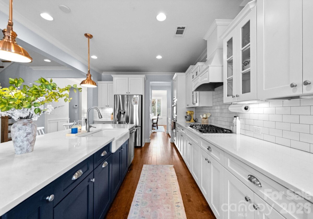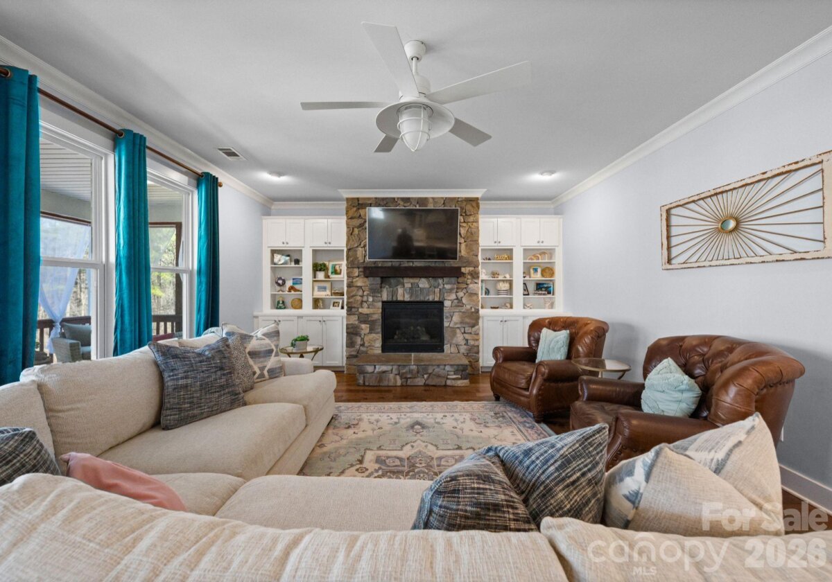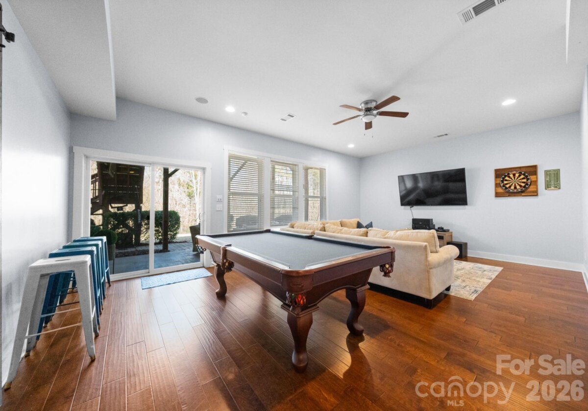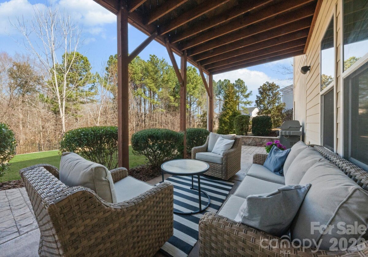 Rare opportunity for a basement home in the sought-after Cobblestone Manor community, ideally set on a private lot with mature trees and natural privacy. Designed for both comfortable everyday living and effortless entertaining, this home offers nearly 4,900 sq ft across three levels. The main level features a welcoming great room with gas fireplace, private office, spacious dining area, and seamless access to the screened porch overlooking the fenced backyard. The kitchen is well-appointed with a large island, gas cooktop, walk-in pantry, and abundant cabinetry. The finished basement adds impressive additional living space with a large recreation/family room, bedroom, full bath, fitness room, and a built-in beverage bar with mini fridge—perfect for entertaining, game nights, or extended guest stays, along with additional storage. Upstairs, the primary suite provides a relaxing retreat with dual vanities, soaking tub, and separate walk-in closets. Additional bedrooms and a versatile loft offer flexibility for guests, recreation, or work-from-home needs. Enjoy outdoor living in the private backyard framed by mature trees, all within Cobblestone Manor with community pool and convenient access to Lake Norman, Birkdale Village, shopping, dining, and major commuter routes.