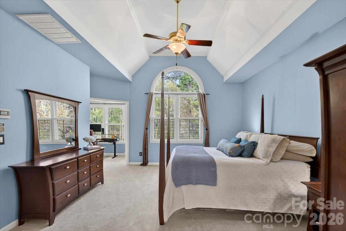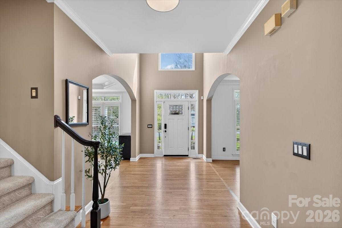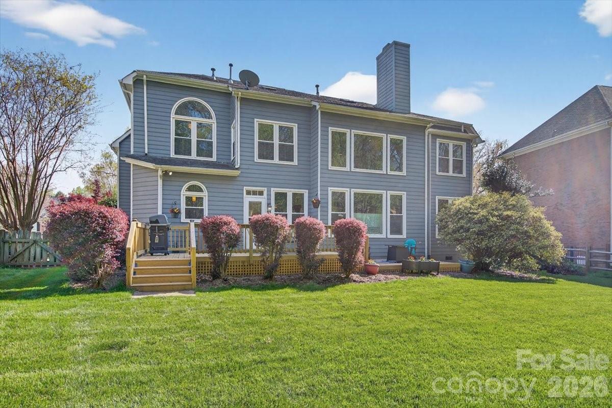 This home speaks for itself. With five bedrooms, four full baths, and three floors of space that actually works, this is the one that offers room to grow, host, retreat, and recharge without compromise. Walking in, the two-story foyer sets the tone. The main level delivers a formal dining room, living room, soaring light-filled family room, breakfast area, main-level laundry, and two pantry spaces, all anchored by a kitchen designed for real life. But wait until you see the primary suite. It delivers. Vaulted ceilings, two walk-in closets with custom built-ins, a private flex space... an office, sitting room, workout area, you decide? It's the stunning five-piece en suite bath that truly earns the word RETREAT: a claw-foot soaking tub set against the tile wall and chandelier, a large shower, separation of the dual sinks and water closet; it is a spa-level space. Three additional spacious bedrooms complete the upper level, one with an en suite, two sharing a Jack & Jill bath. The third floor bonus room was updated in March 2026. It's your wild card: home theatre, gym, studio, playroom, limited only by what you need it to be? Extensive, easy-access attic storage is just another bonus. Back on the main level, the kitchen features stainless appliances, a new electric cooktop, island with bar seating, and a sink that overlooks a backyard worth coming home to. There are two pantries available to the kitchen. The two-story family room pulls in natural light through soaring windows, with built-ins flanking the gas fireplace just beyond. A main-level bedroom and full bath rounds out the floor, ideal for guests or multi-generational living. Set back on a large, flat lot featuring mature landscaping and a side-load garage. Brand new carpet throughout the upper level, staircases and family room, a rebuilt and extended deck (2025), a tankless water heater to keep everyone happy and the windows were replaced approximately four years ago. This home has been thoughtfully maintained and is move-in ready. The Hamptons is a popular Huntersville community featuring two community centers, pools, clubhouses, tennis and pickleball courts, playgrounds, and greenway access. Quick access to I-77 and I-485 keeps Charlotte close, plus shopping, dining, and everything Huntersville, Cornelius, and Davidson have to offer.