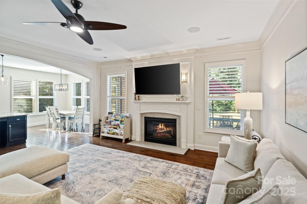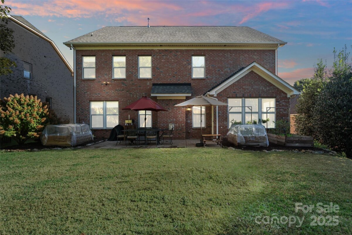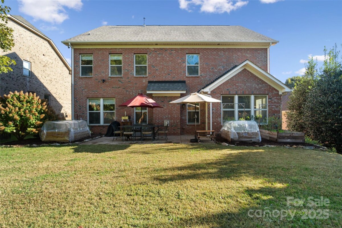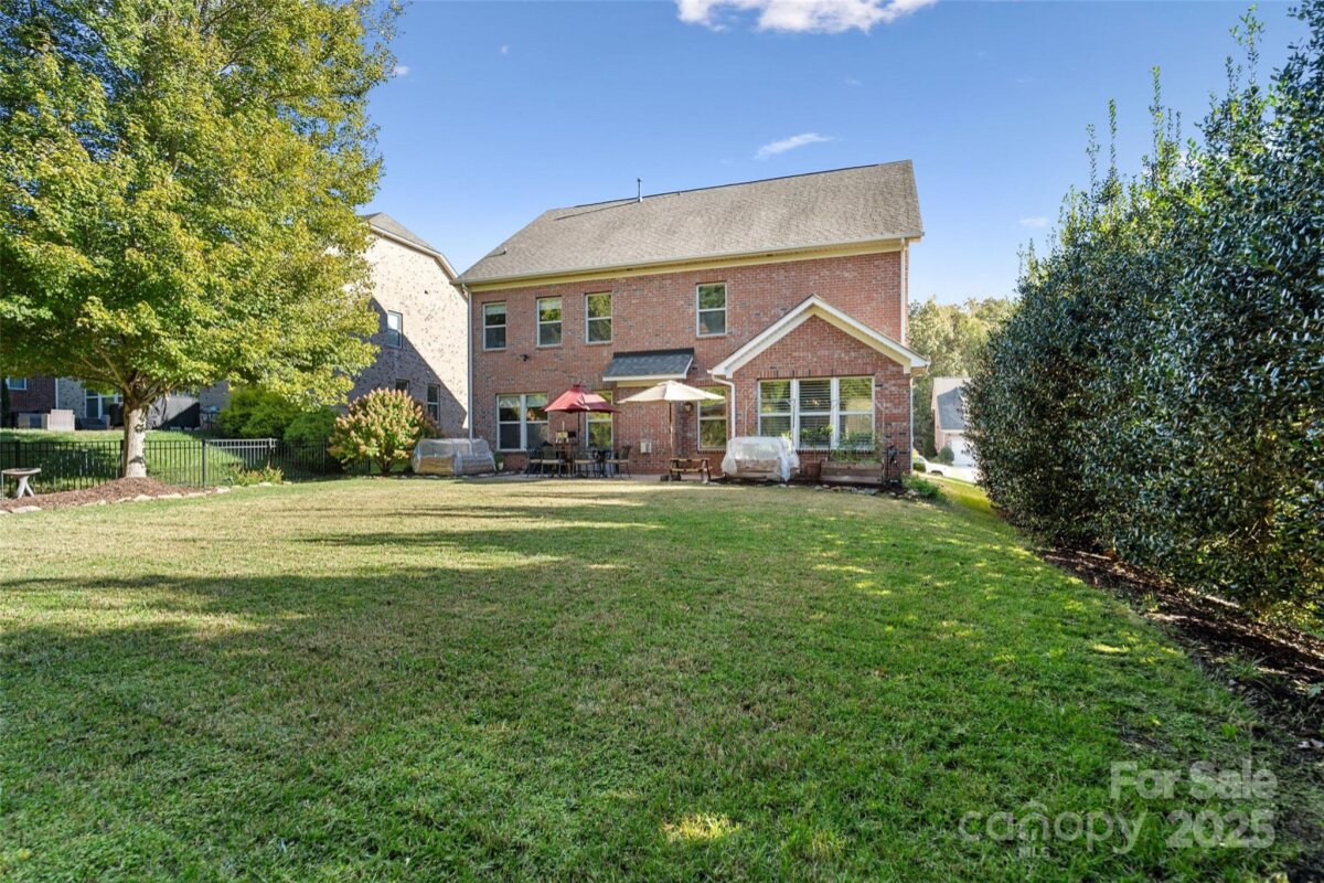 Beautiful home with upgrades throughout in desirable Barber Rock! This stunning home features a covered porch and a stamped-concrete patio, offering the perfect blend of indoor–outdoor living. The main level is filled with natural light and showcases neutral paint, plantation shutters, crown molding, wainscoting, arched doorways, and hardwood floors throughout. The kitchen boasts a huge island with custom bar-seating cutout, stainless steel appliances, gas range, tile backsplash, and a walk-in pantry with custom shelving. A dedicated office space provides the ideal work-from-home setup. Upstairs, the spacious primary suite includes a generous walk-in closet with a custom closet system. The exterior is just as impressive, featuring a large, flat, private backyard, a stamped concrete patio, and garden beds—perfect for entertaining or relaxing. Barber Rock offers an unbeatable location, conveniently situated between Indian Land, Ballantyne, and Fort Mill, giving you easy access to top-rated schools, shopping, dining, and commuter routes.