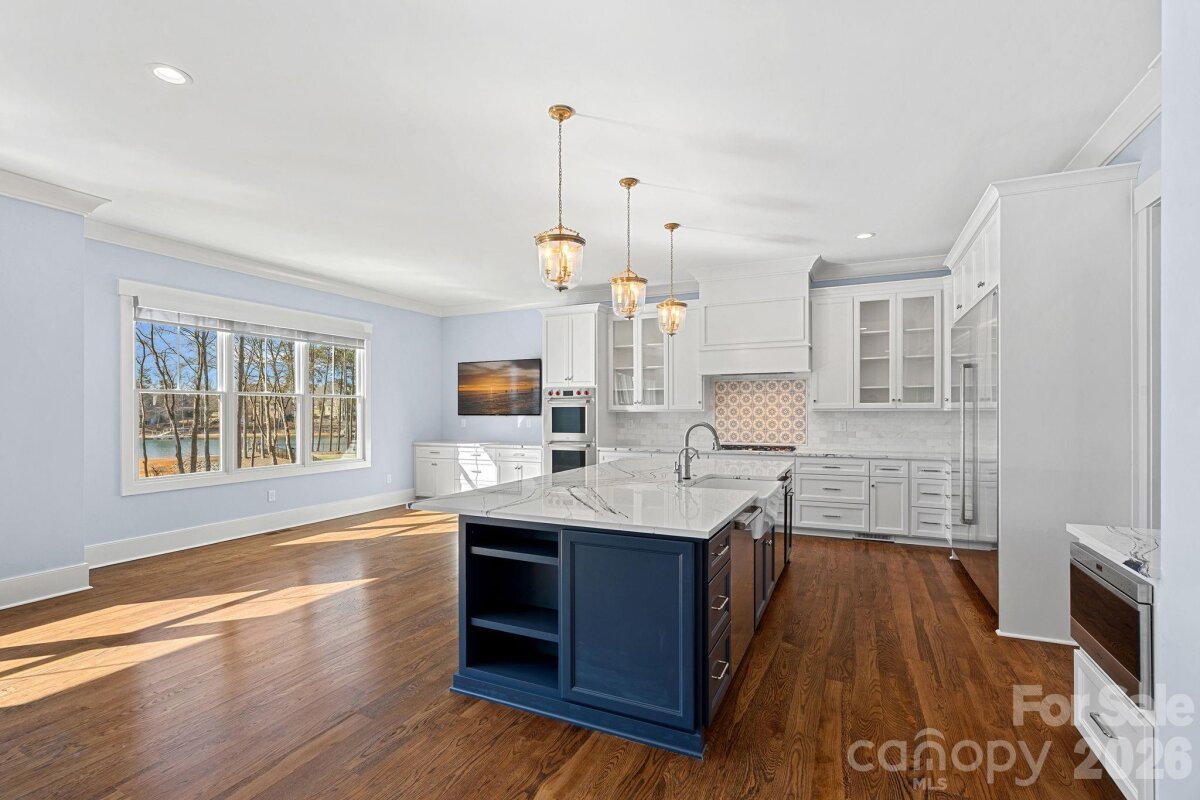 An exceptional opportunity to own a newly built waterfront estate in The Point. Completed in 2024 by Courtland Home Builders, this stunning residence was masterfully designed to embrace effortless lakeside living and refined entertainment. Perfectly positioned to capture expansive water views, the home embraces the beauty and serenity of lakefront living at every turn. Imagine mornings spent paddleboarding from your private waterfront setting and afternoons kayaking into golden sunset skies — this is the lifestyle Lake Norman is known for. Drenched in natural light, the open-concept floor plan seamlessly connects the main living spaces while framing stunning lake views. The chef’s kitchen is the heart of the home, featuring an expansive island, custom cabinetry, and luxury appliances including Wolf, Sub-Zero, and dual Cove dishwashers. Extensive built-ins and exquisite moldings add architectural interest and timeless character throughout. The main-level primary suite offers peaceful water views and a custom walk-in closet that truly impresses — thoughtfully designed and with space to accommodate a future stackable washer and dryer for added convenience. Upstairs, three spacious bedrooms are complemented by an open loft with custom built-ins, offering endless possibilities — from a refined workspace to a quiet reading retreat. A versatile flex room with barn door provides additional space for an office, playroom, or den. A private guest suite with en-suite bath ensures comfort and privacy for visitors. The fully finished lower level continues the home’s thoughtful design, offering a dedicated office with built-ins, en-suite bedroom, expansive family room, exercise/flex space, and a laundry room with built-ins and complete with laundry chutes from the upper two floors. Abundant walk-in storage adds to the home’s functionality. Outdoor living is where this waterfront property truly shines. A saltwater pool and spa overlook the lake, creating a resort-style setting for sunset evenings, weekend gatherings, or quiet mornings by the water. The property includes boat slip Pier M #10, just a short walk away, with dedicated parking available — completing the ultimate Lake Norman boating lifestyle. An exceptional blend of luxury, functionality, and true waterfront living — this is The Point at its finest.