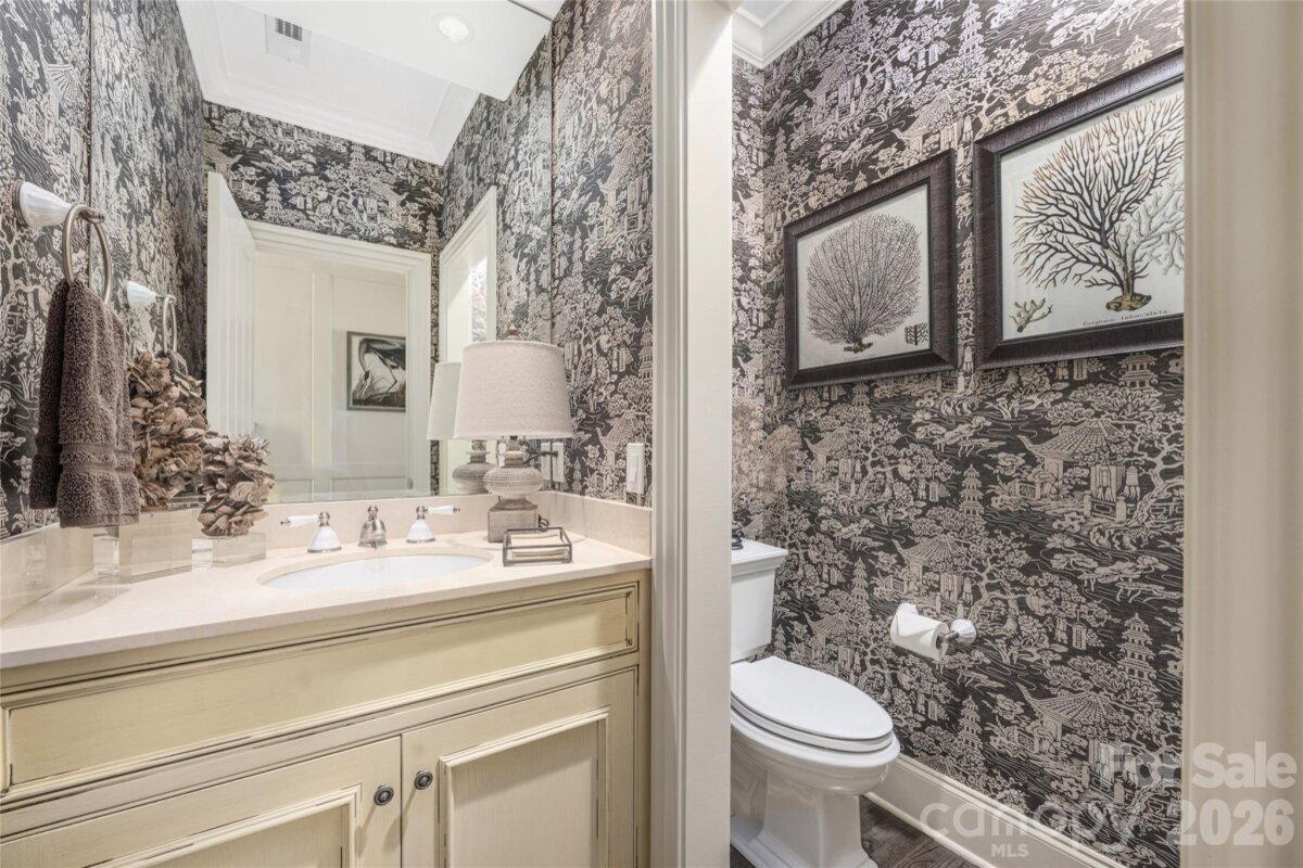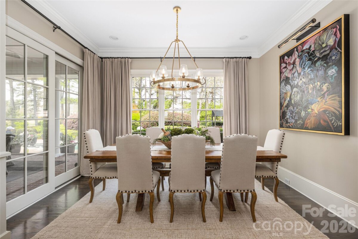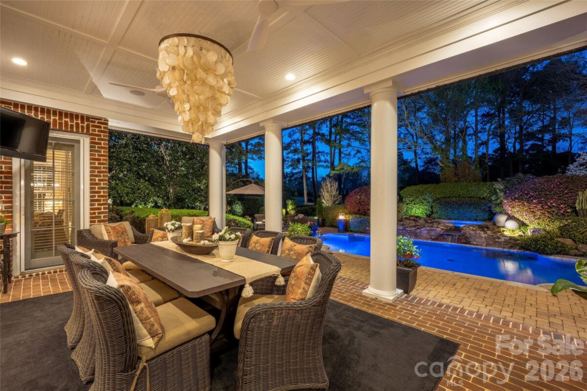 This beautifully upgraded Simonini Builders award winning home is a true turnkey masterpiece. Extensively renovated in 2019 and impeccably maintained ever since, the home boasts standout features including a fully renovated PebbleTec pool with new heater and pump, a low-maintenance high-grade AstroTurf backyard perfect for pets and entertaining, a climate-controlled 250-bottle wine cellar with custom iron door and remote accent lighting, $22,000 in custom sliding barn-door cabinetry with Carolina Custom epoxy flooring in the garage, a new roof with upgraded GutterGuards, a tankless water heater, and a fully encapsulated crawl space. Inside, you’ll find fresh paint throughout with elegant millwork, custom accent walls in every secondary bedroom, shiplap detailing in the bonus room, a chef’s kitchen featuring JennAir and Thermador appliances, a drawer microwave, InSinkerator instant hot water dispenser, and refreshed cabinetry, plus spa-like bathrooms with walk-in showers in all secondary baths, heated floors in the primary suite, and a dramatic back-lit mirror in the powder room. Additional luxuries include dimmer switches on nearly every light, recessed outlets behind all artwork, and a hydraulic TV mount that lowers the TV to perfect eye level in the upstairs living room. Perfectly situated directly on the 9th green of the world-class Greg Norman Championship Golf Course at Trump National Golf Club, this premier location delivers stunning golf course views and effortless walking access to The Point’s resort-style amenities, including tennis courts, pools, dining, fitness center, and clubhouse. A deeded boat slip (Dock H, Slip 8) conveys with the property, offering the ultimate Lake Norman golf and lake lifestyle in one of the area’s most prestigious communities.