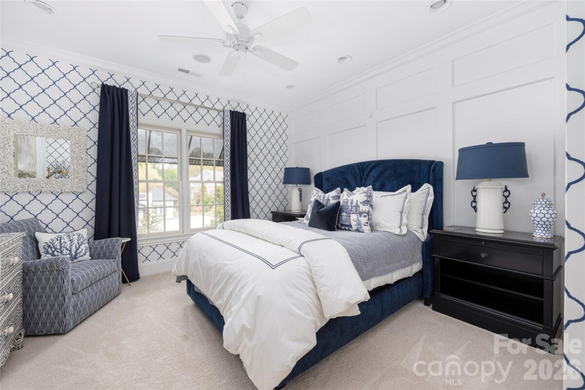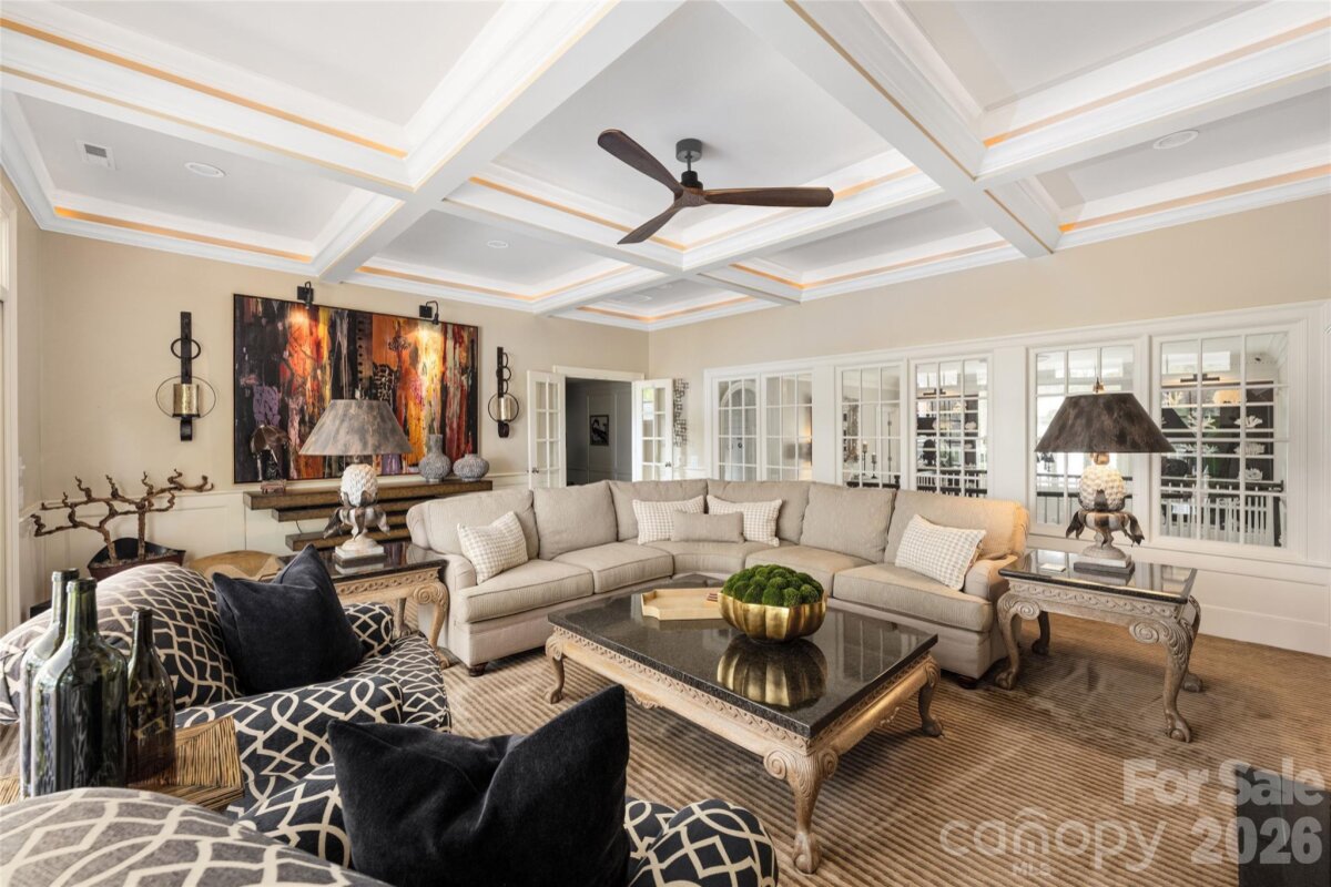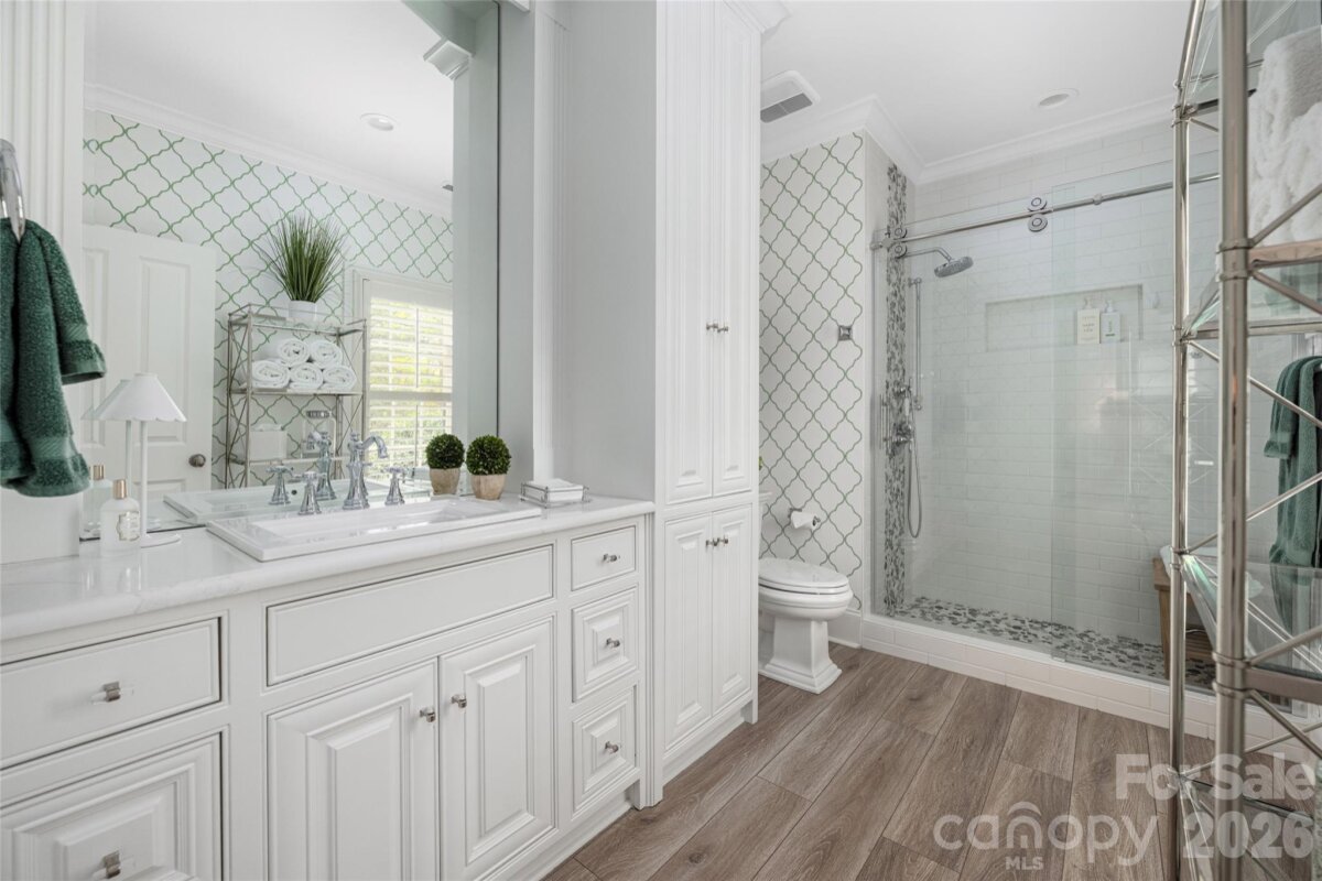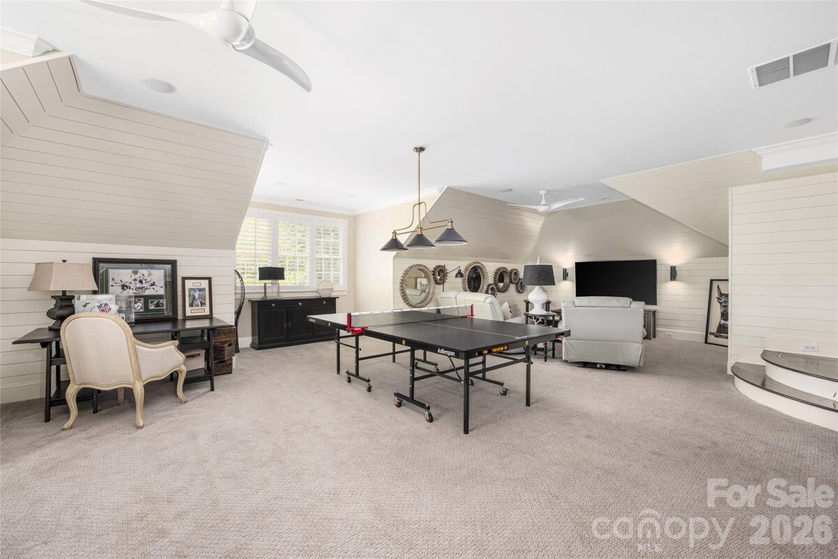 This beautifully upgraded Simonini Builders award winning home is a true turnkey masterpiece. Extensively renovated in 2019 and impeccably maintained ever since, the home boasts standout features including a fully renovated PebbleTec pool with new heater and pump, a low-maintenance high-grade AstroTurf backyard perfect for pets and entertaining, a climate-controlled 250-bottle wine cellar with custom iron door and remote accent lighting, $22,000 in custom sliding barn-door cabinetry with Carolina Custom epoxy flooring in the garage, a new roof with upgraded GutterGuards, a tankless water heater, and a fully encapsulated crawl space. Inside, you’ll find fresh paint throughout with elegant millwork, custom accent walls in every secondary bedroom, shiplap detailing in the bonus room, a chef’s kitchen featuring JennAir and Thermador appliances, a drawer microwave, InSinkerator instant hot water dispenser, and refreshed cabinetry, plus spa-like bathrooms with walk-in showers in all secondary baths, heated floors in the primary suite, and a dramatic back-lit mirror in the powder room. Additional luxuries include dimmer switches on nearly every light, recessed outlets behind all artwork, and a hydraulic TV mount that lowers the TV to perfect eye level in the upstairs living room. Perfectly situated directly on the 9th green of the world-class Greg Norman Championship Golf Course at Trump National Golf Club, this premier location delivers stunning golf course views and effortless walking access to The Point’s resort-style amenities, including tennis courts, pools, dining, fitness center, and clubhouse. A deeded boat slip (Dock H, Slip 8) conveys with the property, offering the ultimate Lake Norman golf and lake lifestyle in one of the area’s most prestigious communities.