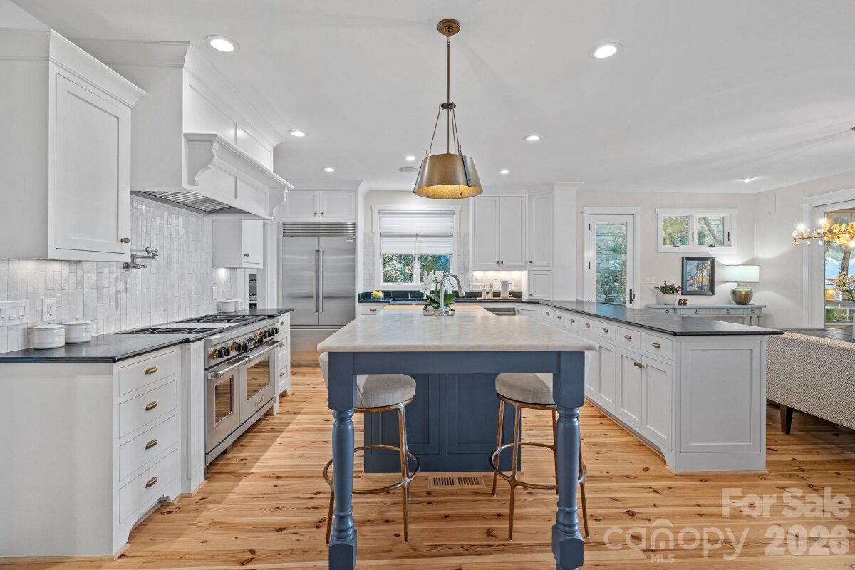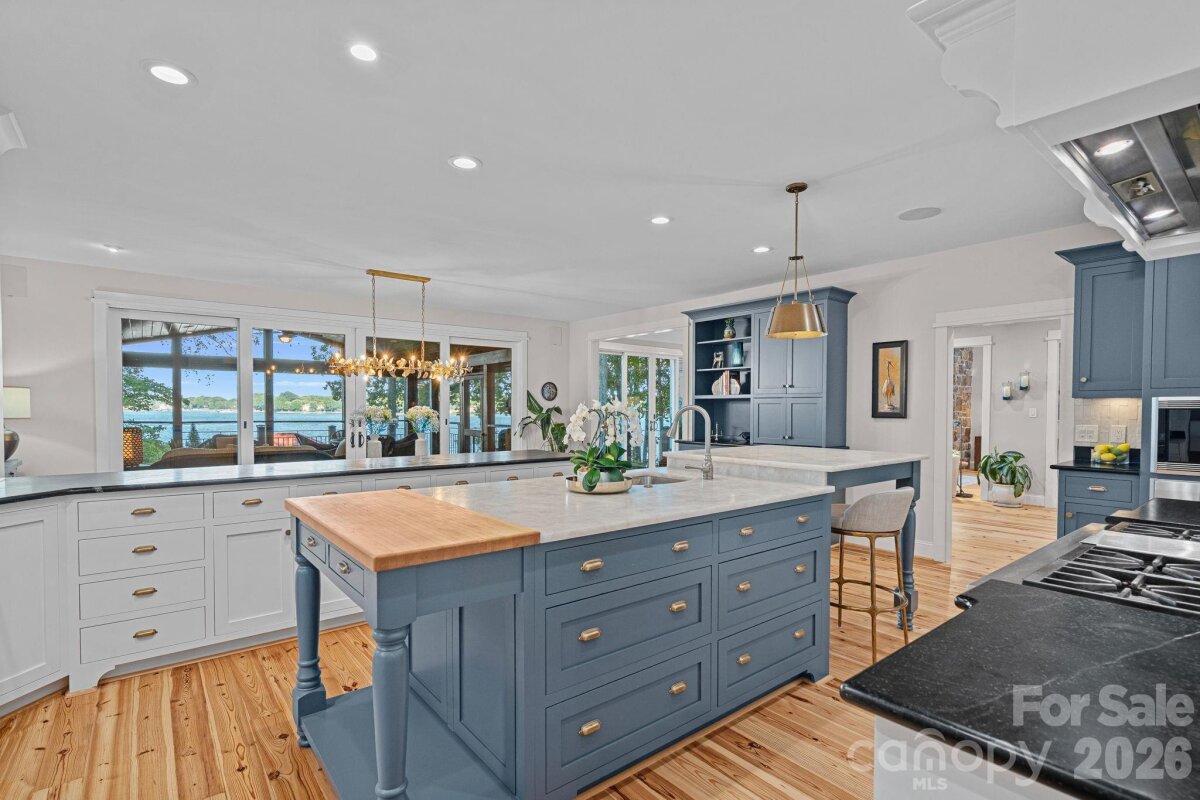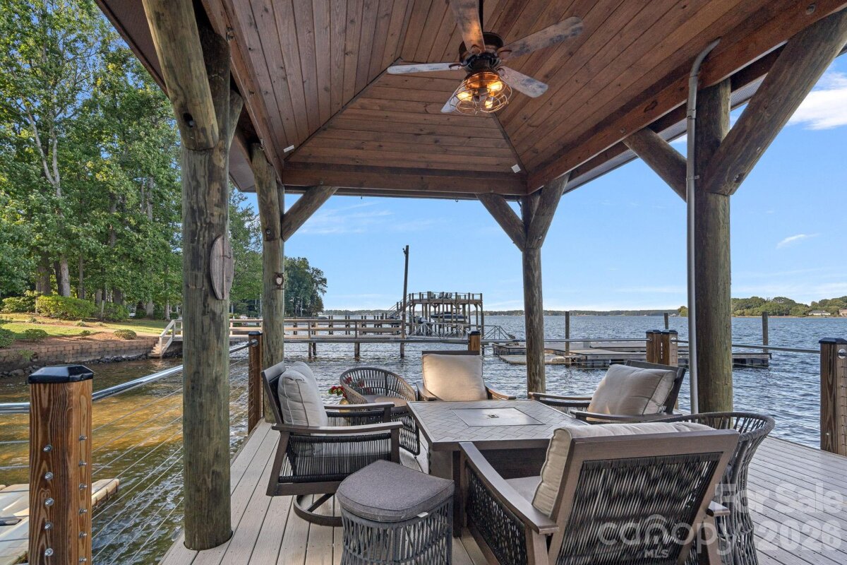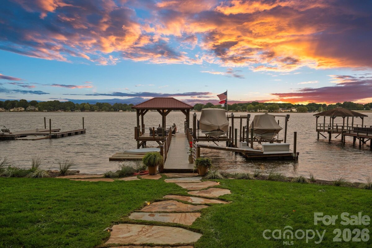A one of a kind waterfront estate on Lake Norman, fully transformed through a renovation completed in 2025. Perfectly positioned on a one-acre, tree-filled lot in a private neighborhood with resort-style amenities, this home combines timeless elegance with modern luxury. Walls of glass and expansive sliding doors frame sweeping big water views and breathtaking sunrises, while rare deep water at the double slip dock allows for swimming and diving right from your backyard. The thoughtfully designed interior balances warmth and sophistication, anchored by a soaring two-story natural stone fireplace, wide-plank Caribbean floors, and designer finishes throughout. A first-floor primary suite offers a private balcony with panoramic views, spa-inspired bath with heated marble floors, custom shower, and a spacious walk-in closet/changing room. The chef’s kitchen features an expansive island, Sub-Zero refrigerator, scullery with custom pantry, and adjacent lounge with wine fridge. A lake-level retreat includes a second kitchen, bourbon room, game room, and direct walk-out to a flagstone terrace with stone fireplace. Enjoy year-round living from the serene screened porch with hurricane shutters, or stroll past the koi pond and waterfall stream to your private dock with covered entertaining area, a high-powered boat lift, floating dock, and jet ski dock. The grounds are truly a rare offering on Lake Norman - professionally designed with both beauty and livability in mind. Lush, layered landscaping blends mature trees, manicured lawns, and thoughtfully placed stonework to create both beauty and privacy. Expansive, usable yard space is a rarity on the lake, offering room to entertain, relax, or simply take in the water views from multiple vantage points. From the winding paths and tranquil water features to the seamless connection between indoor and outdoor living, every element of the landscape was intentionally designed to elevate the experience of lakefront living. Every detail has been updated - hardboard siding, new roof, windows, HVAC systems, exterior stonework, custom lighting, irrigation, and professionally designed landscaping. The neighborhood enhances the lifestyle with a private beach, boat launch, pool, tennis/pickleball court and basketball court. Ideally located just minutes to shops, dining, and top schools, and less than 20 minutes to Uptown Charlotte and Charlotte Douglas International Airport, this estate offers an unrivaled blend of luxury, privacy, and convenience. This is more than a home - it’s a lifestyle.