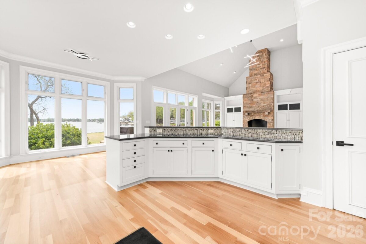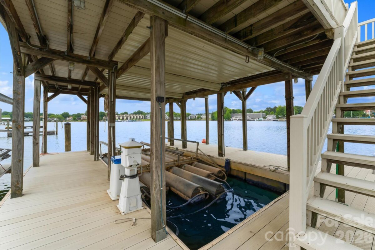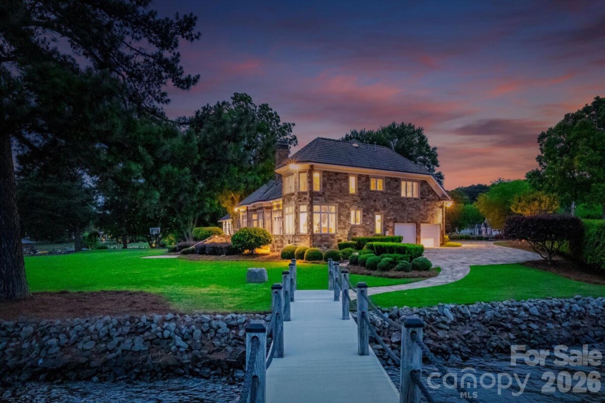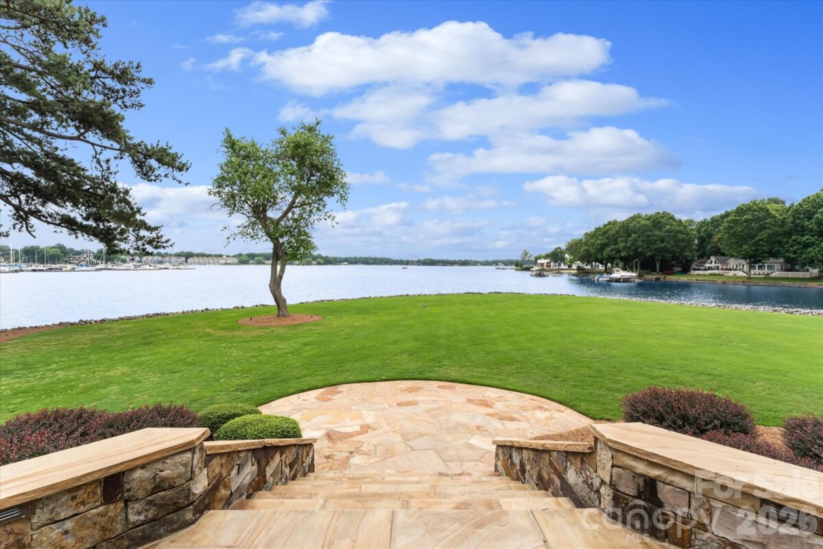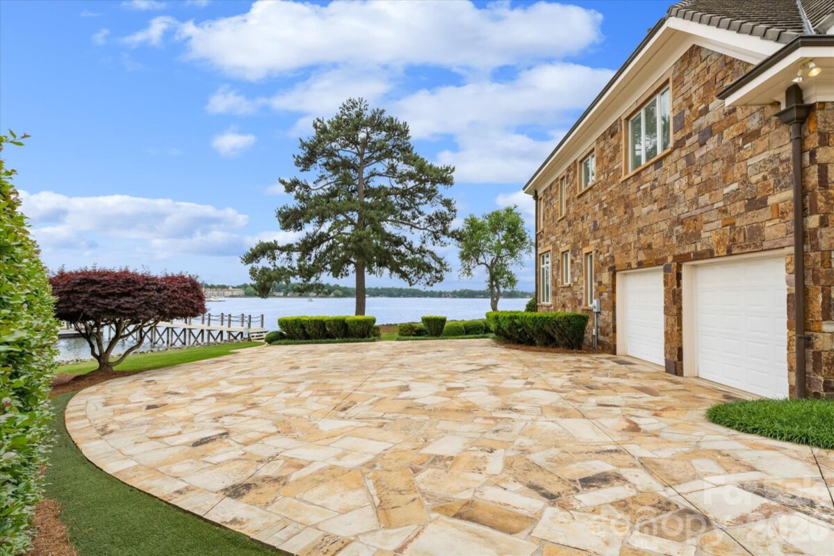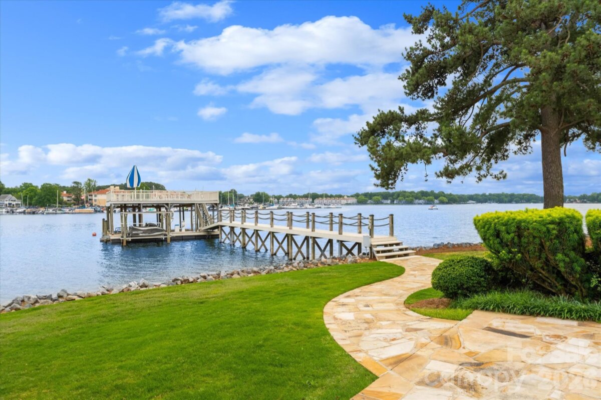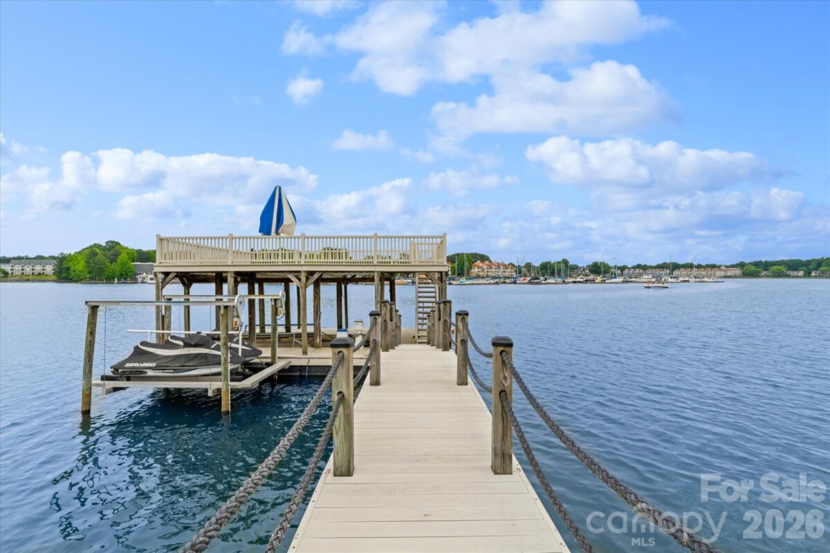 Positioned along a pristine shoreline on Lake Norman, this gated waterfront property offers a rare sense of scale, privacy, and uninterrupted water views. Set within a quiet cul-de-sac in Cornelius, the setting feels both tucked away and highly convenient—without HOA restrictions. The residence is thoughtfully designed to maximize its connection to the lake, with expansive living spaces and large-scale windows that frame the water from nearly every vantage point. Each bedroom features its own private ensuite, offering comfort and privacy for both residents and guests. Interior finishes reflect a warm, timeless aesthetic, including cherry wood flooring and cabinetry, Pella windows, and custom craftsmanship throughout. The waterfront experience is elevated by a distinctive double-decker dock, featuring a covered boat slip with lift below and an upper-level platform ideal for lounging, entertaining, or taking in the panoramic lake views. In addition, a dedicated lift accommodates two personal watercraft, creating a seamless setup for lake living. A separate guest house and additional lot are available for purchase, presenting an opportunity to further expand the estate if desired. A distinctive Lake Norman offering that combines privacy, craftsmanship, and an exceptional waterfront setting.