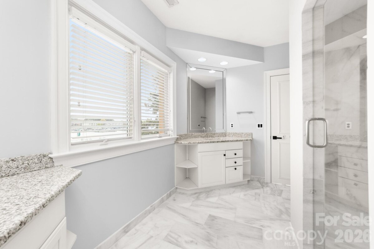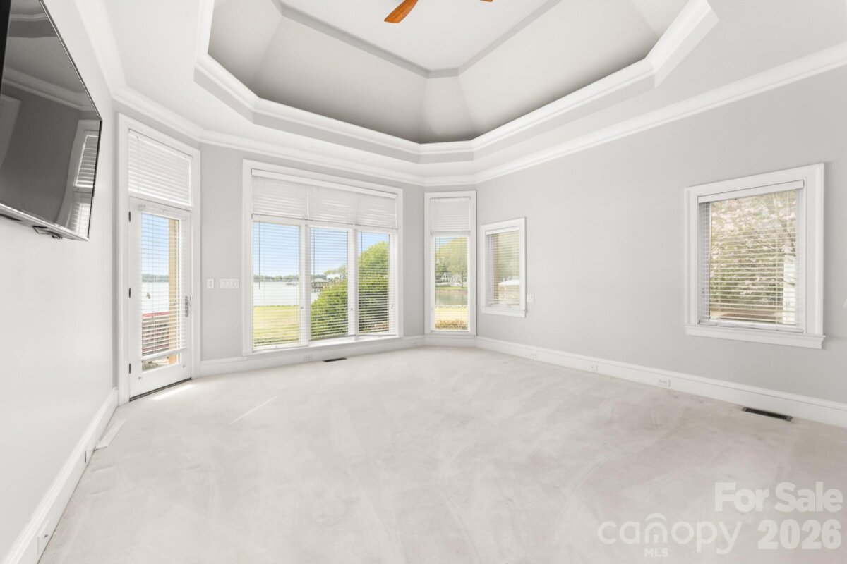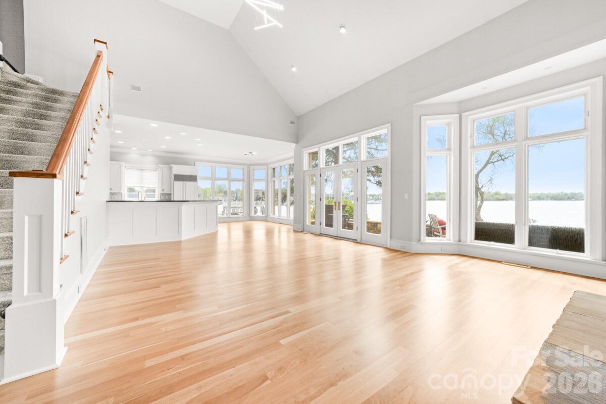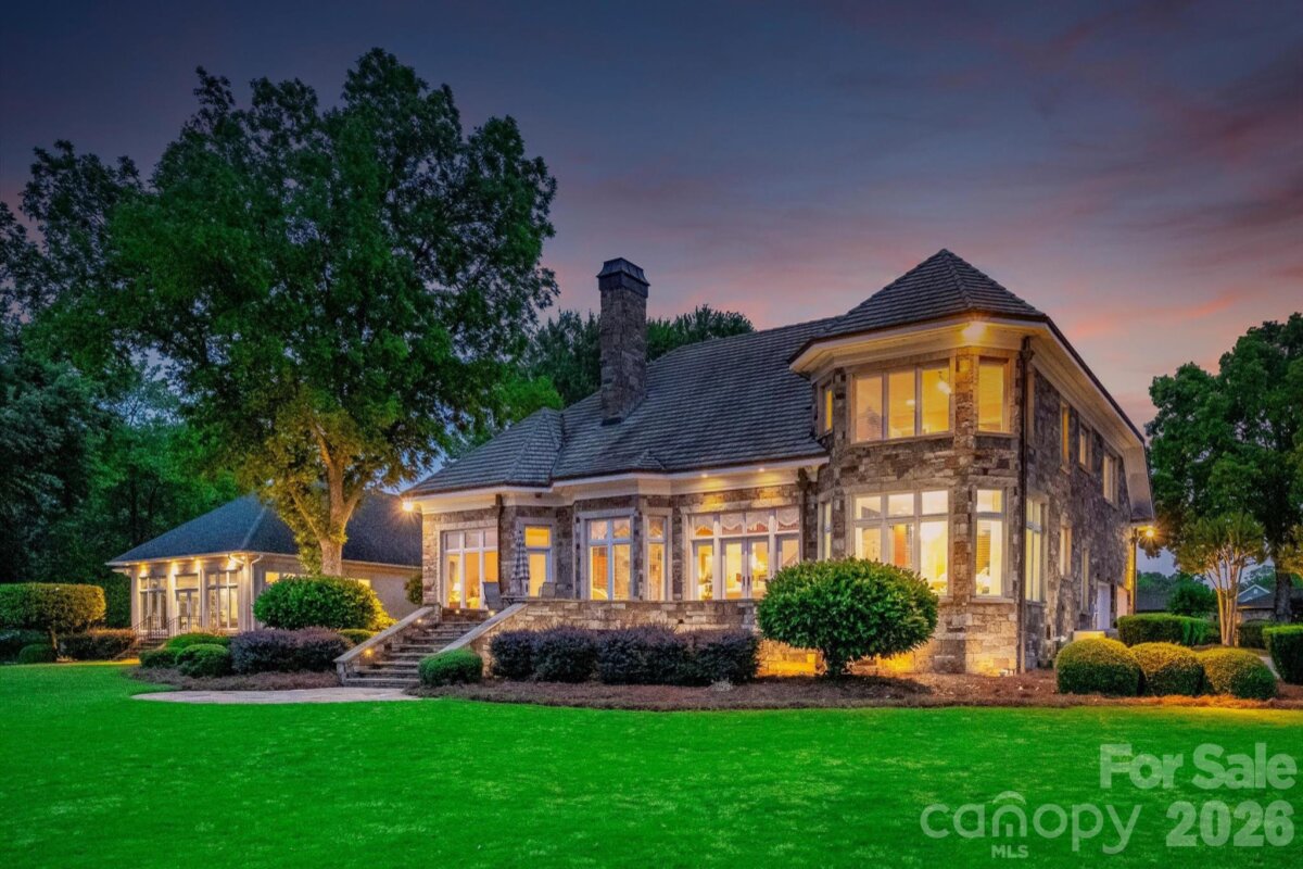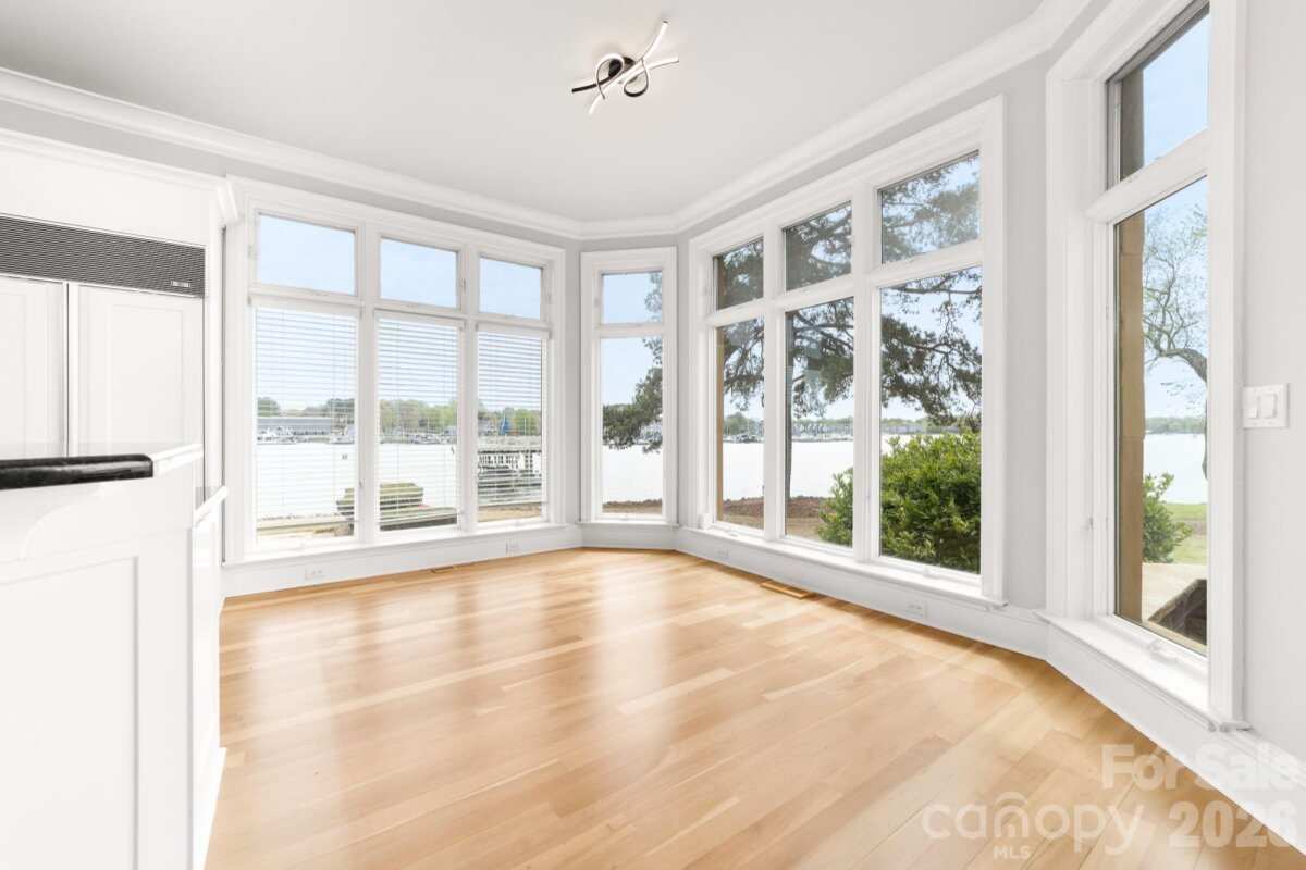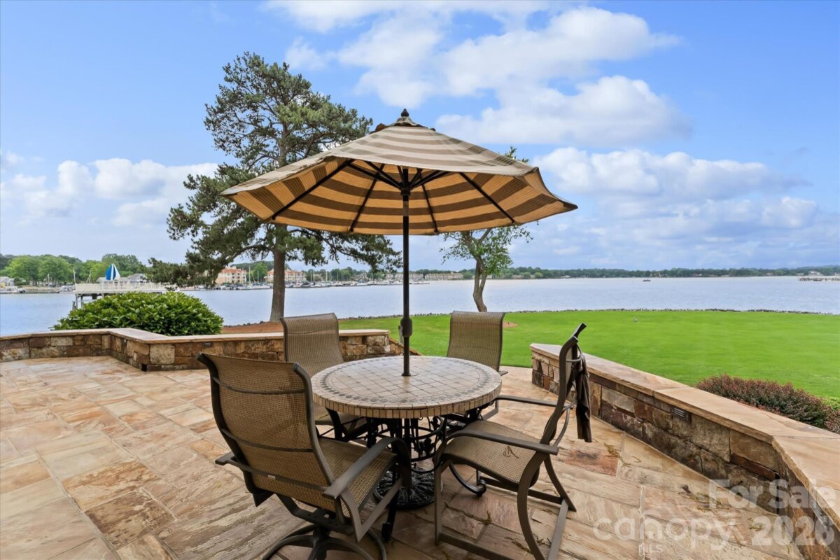 Positioned along a pristine shoreline on Lake Norman, this gated waterfront property offers a rare sense of scale, privacy, and uninterrupted water views. Set within a quiet cul-de-sac in Cornelius, the setting feels both tucked away and highly convenient—without HOA restrictions. The residence is thoughtfully designed to maximize its connection to the lake, with expansive living spaces and large-scale windows that frame the water from nearly every vantage point. Each bedroom features its own private ensuite, offering comfort and privacy for both residents and guests. Interior finishes reflect a warm, timeless aesthetic, including cherry wood flooring and cabinetry, Pella windows, and custom craftsmanship throughout. The waterfront experience is elevated by a distinctive double-decker dock, featuring a covered boat slip with lift below and an upper-level platform ideal for lounging, entertaining, or taking in the panoramic lake views. In addition, a dedicated lift accommodates two personal watercraft, creating a seamless setup for lake living. A separate guest house and additional lot are available for purchase, presenting an opportunity to further expand the estate if desired. A distinctive Lake Norman offering that combines privacy, craftsmanship, and an exceptional waterfront setting.