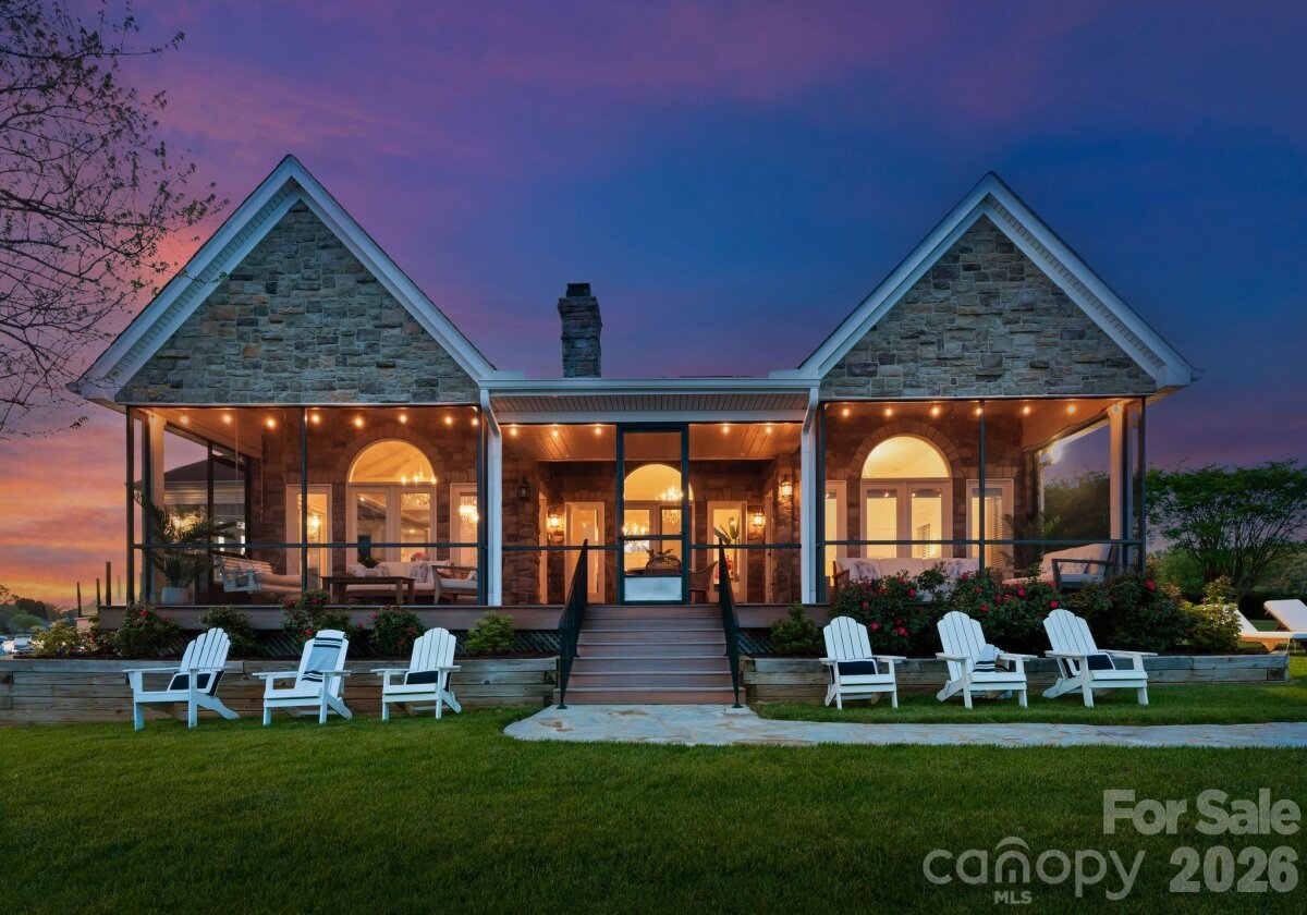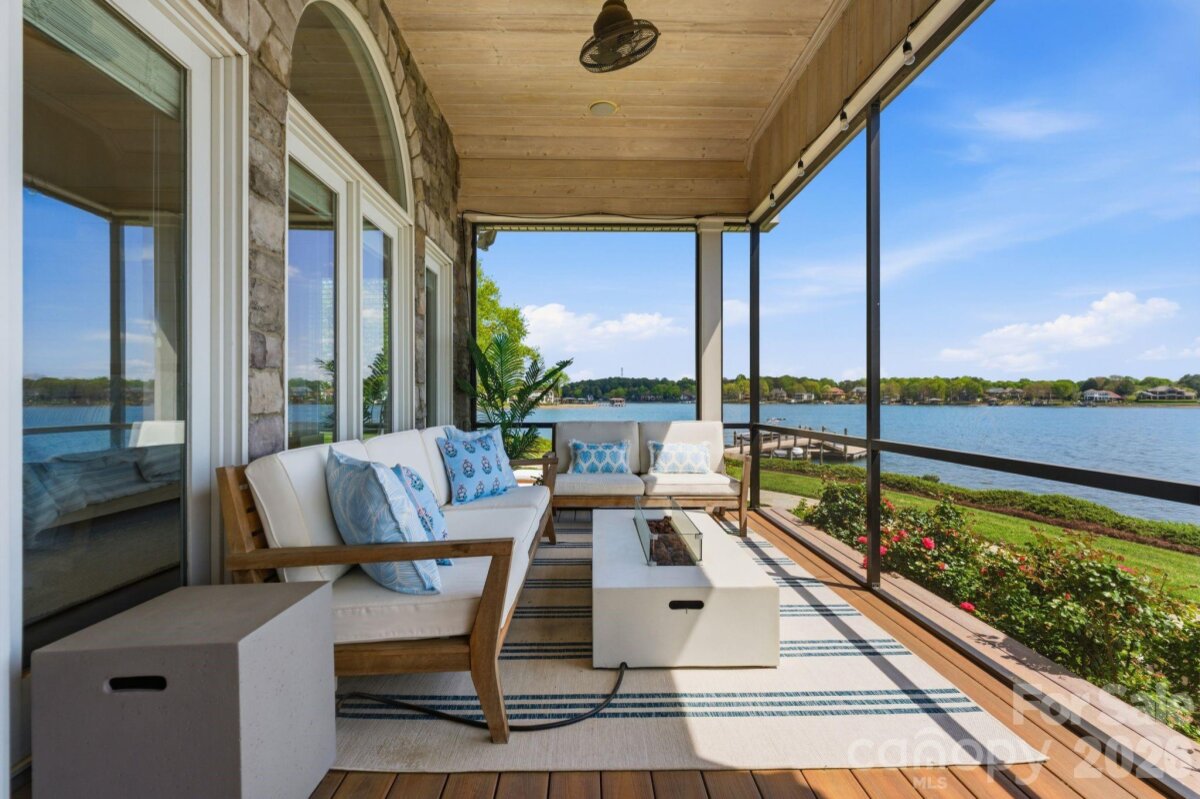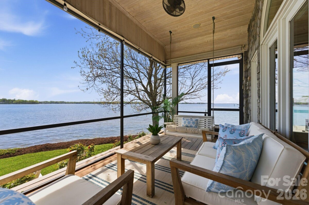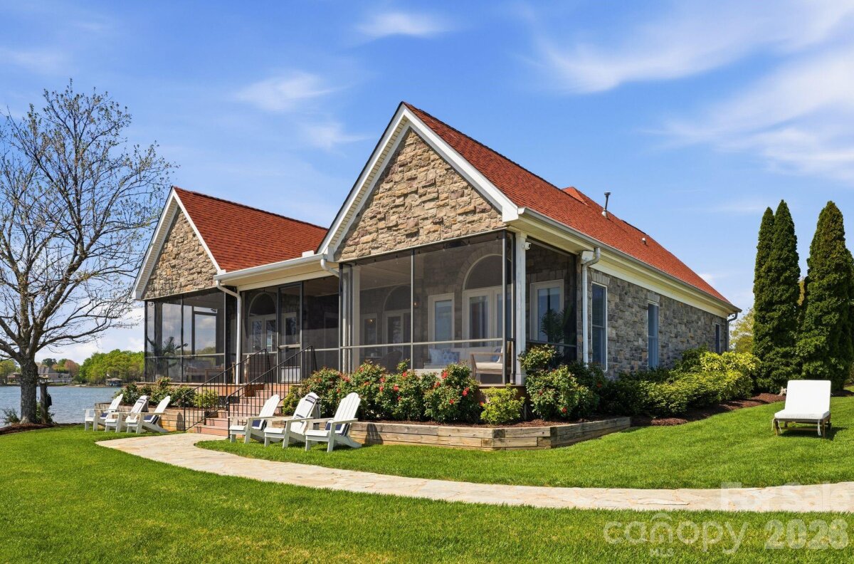 This property could be a set in a Nicholas Sparks or Nancy Meyers rom-com. The most charming stone clad home nestled on 720 feet of waterfront on the desirable Langtree peninsula. Minutes to all the shopping and dining at Birkdale Village. Renovated to the studs in 2015, the interior is as special as the exterior. Every room is full of light and astonishing water views. Vaulted tongue & groove ceilings with custom beams, island seating, marble counters. Spacious screened porch & deck. Dock w/ composite decking can accommodate 4 boats. HOA amenities offer pool, tennis/pickleball courts, boat ramp & storage. Present owners added HVAC to the garage and created a bunkroom. Nothing required to use as a garage again--this space is not included in the heated living area listed. This property is one of the most unique and charming properties on Lake Norman. Some furniture may be available for purchase.