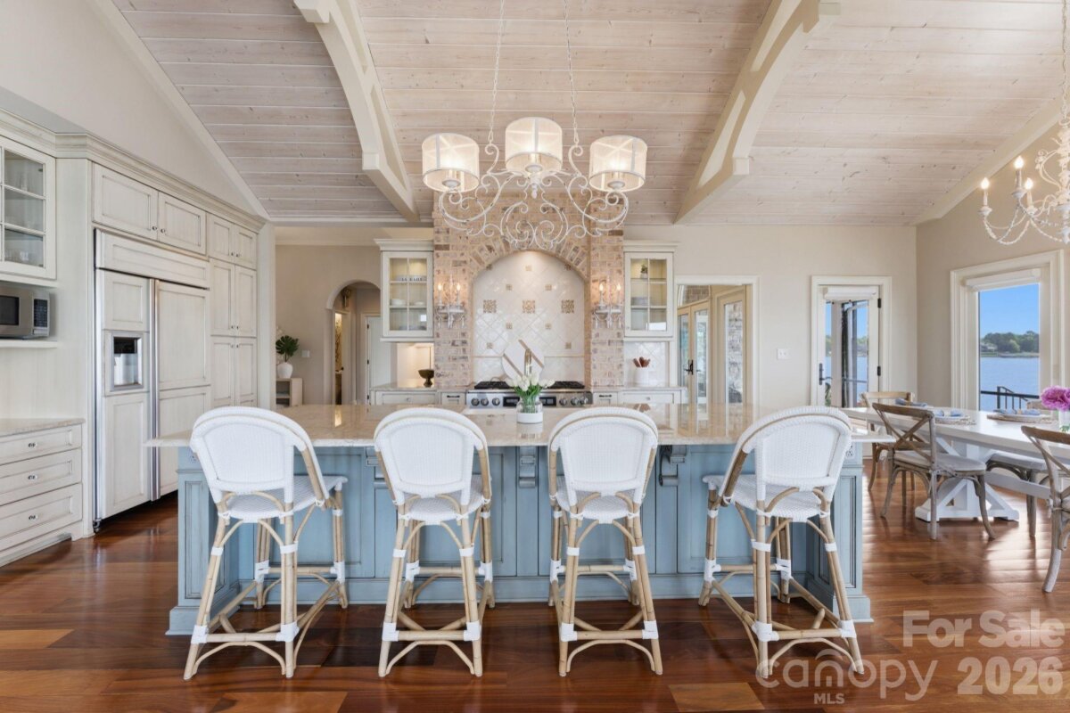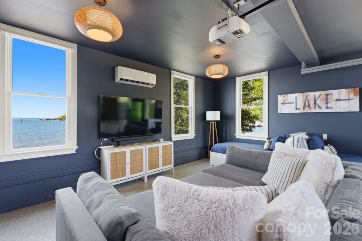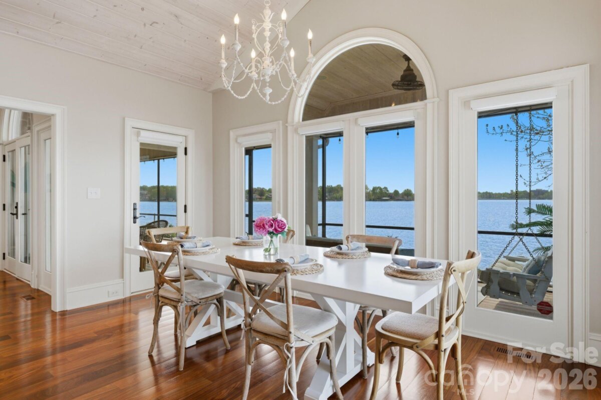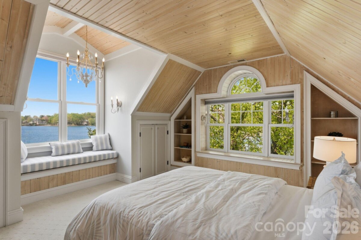 This property could be a set in a Nicholas Sparks or Nancy Meyers rom-com. The most charming stone clad home nestled on 720 feet of waterfront on the desirable Langtree peninsula. Minutes to all the shopping and dining at Birkdale Village. Renovated to the studs in 2015, the interior is as special as the exterior. Every room is full of light and astonishing water views. Vaulted tongue & groove ceilings with custom beams, island seating, marble counters. Spacious screened porch & deck. Dock w/ composite decking can accommodate 4 boats. HOA amenities offer pool, tennis/pickleball courts, boat ramp & storage. Present owners added HVAC to the garage and created a bunkroom. Nothing required to use as a garage again--this space is not included in the heated living area listed. This property is one of the most unique and charming properties on Lake Norman. Some furniture may be available for purchase.
