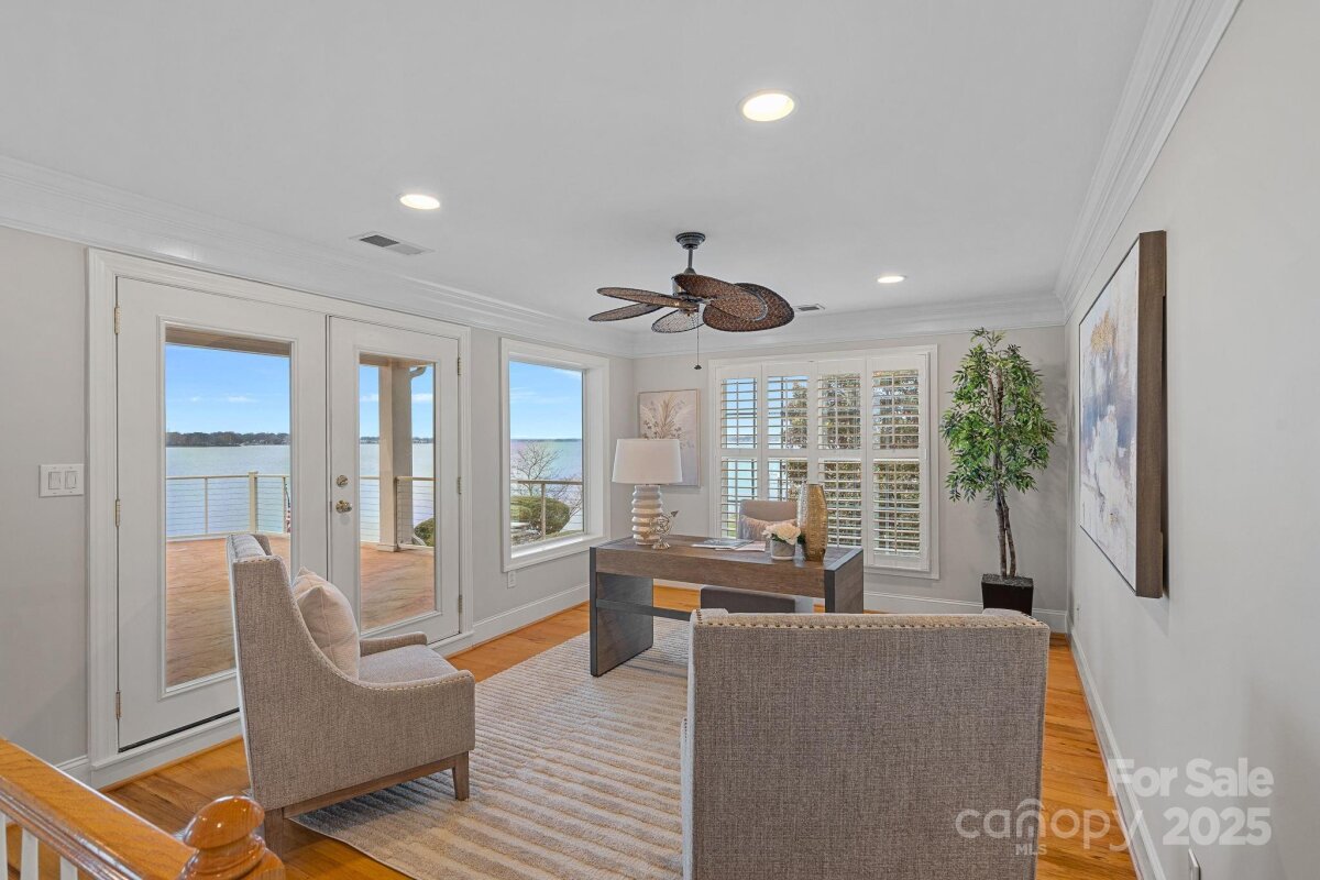 Experience lakefront living at its finest on Lake Norman! This exceptional 3-bedroom, 2.5-bath waterfront home captures the essence of lake life with nearly 200 feet of pristine shoreline and soaring, long-range sunset views from one of the most desirable gated communities off Langtree Road. From the moment you arrive, the setting feels private and inviting, surrounded by mature trees, gentle lake breezes, and endless water vistas. Inside, a dramatic two-story great room welcomes you with expansive windows that frame the lake from every angle, filling the home with natural light. The open concept seamlessly connects the main living area to the screened patio and outdoor entertaining space, complete with a cozy stone fireplace, perfect for year-round relaxation and gatherings with family and friends. The main floor primary suite offers a serene retreat, featuring a fully remodeled bath with heated floors, custom tilework, and thoughtful design details. Upstairs find an expansive loft, perfect for office space which leads to an upstairs patio with lake views for miles. Two additional bedrooms, each positioned to take advantage of the tranquil lake views, and a bonus/bedroom provide flexibility. Throughout the home, Bahama wooden shutters add timeless island-inspired character, blending coastal charm with refined style. An upgraded stationary deep water dock and sitting area extends the outdoor lifestyle, ideal for boating, swimming, or simply enjoying your morning coffee while watching the sunrise over the water. In addition, seller would consider selling the adjoining .64-acre lot, offering over 150 feet of shoreline and a grandfathered 35-foot setback. This extremely rare feature allows future construction closer to the water than current regulations permit. This additional parcel provides an opportunity to expand your waterfront footprint, create a family compound, or build an additional lakeside home. Located just minutes from I-77 and Langtree at the Lake, this property combines quiet waterfront living with unbeatable convenience, close to restaurants, shops, and the vibrant Lake Norman lifestyle. Whether youΓ’β¬β’re seeking a full-time residence or a weekend retreat, this one-of-a-kind property delivers the best of both worlds: privacy, luxury, and the beauty of Lake Norman right at your doorstep.