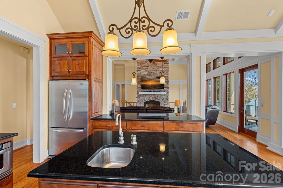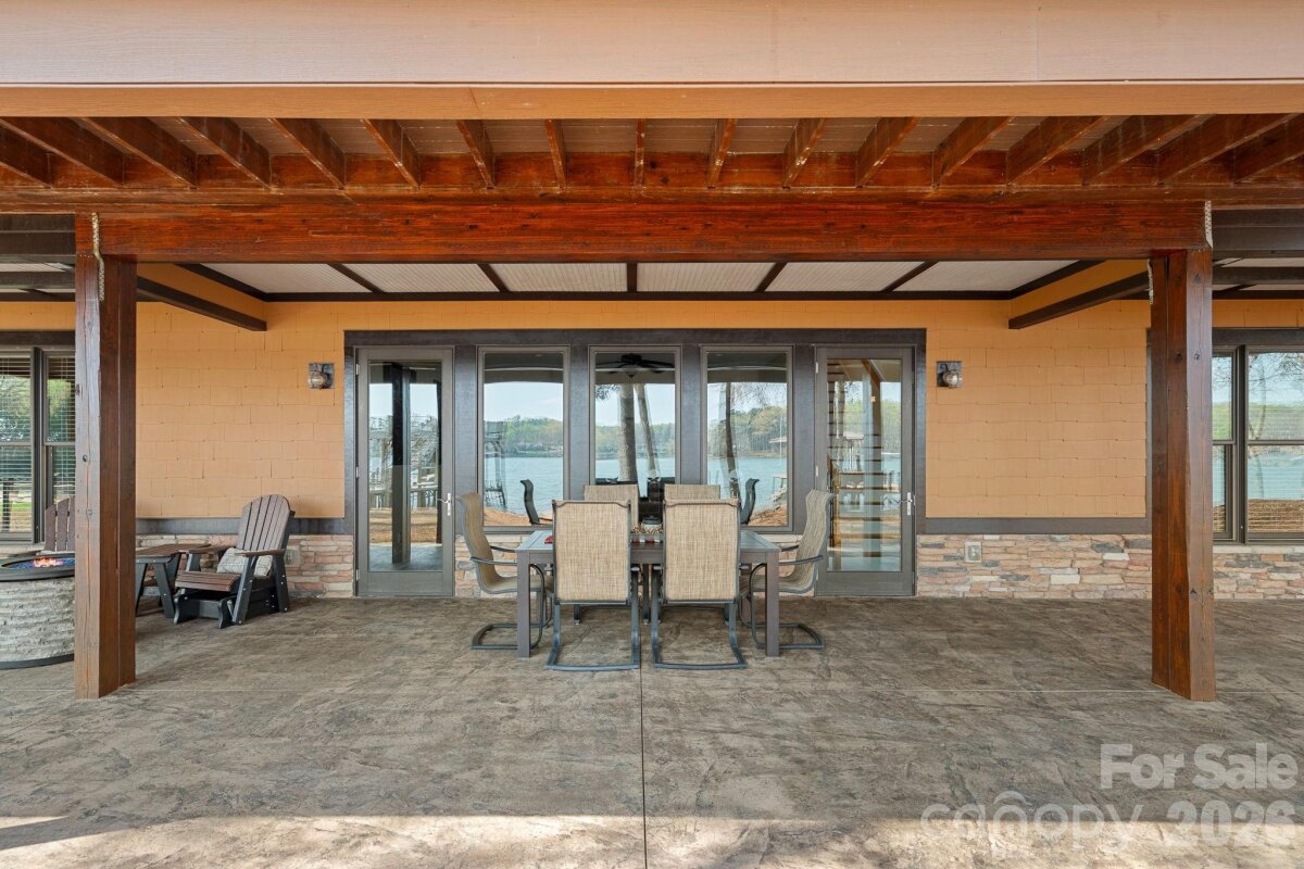 Waterfront living at its BEST! Panoramic water views from most rooms of this impeccably maintained home sitting in the midst of a garden-like lawnscape. Outdoor living areas include expansive covered veranda, deck and screened porch with low maintenance Trex material. All of this overlooking 140' of shoreline, stone retaining wall, lounging/picnic area and covered stationary boat slip with automatic lift. Hardwood floors throughout the spacious main level, primary suite situated away from high traffic area with huge bath featuring dual vanities, jetted tub, large custom tile shower and dual walk-in closets. Great room with wall of windows, coffered ceiling, stacked stone fireplace is an obvious "Welcome Home" once you walk through the main entrance of this beauty! The same wall of windows flows directly into the breakfast area and kitchen continuing to bring the outside in! Gourmet kitchen with built-in appliances, granite countertops including pass window to great room. Large laundry room, cabinets with counter space, great drop zone area, washer and dryer stays. Secondary bedroom on main level is currently used as a flex space, office, dining room...you decide! Lower level contributes two additional bedrooms, a safe room, great bar area for entertaining and large storage room for lake toys.