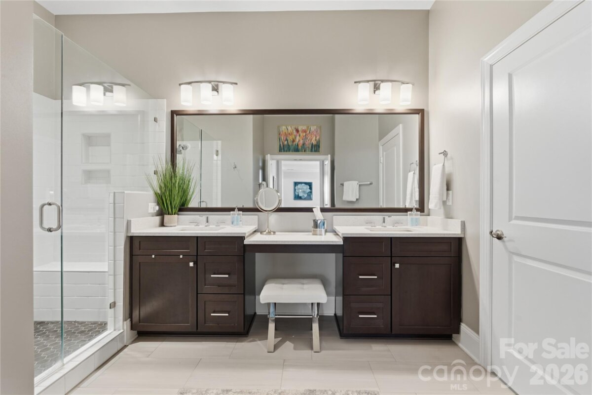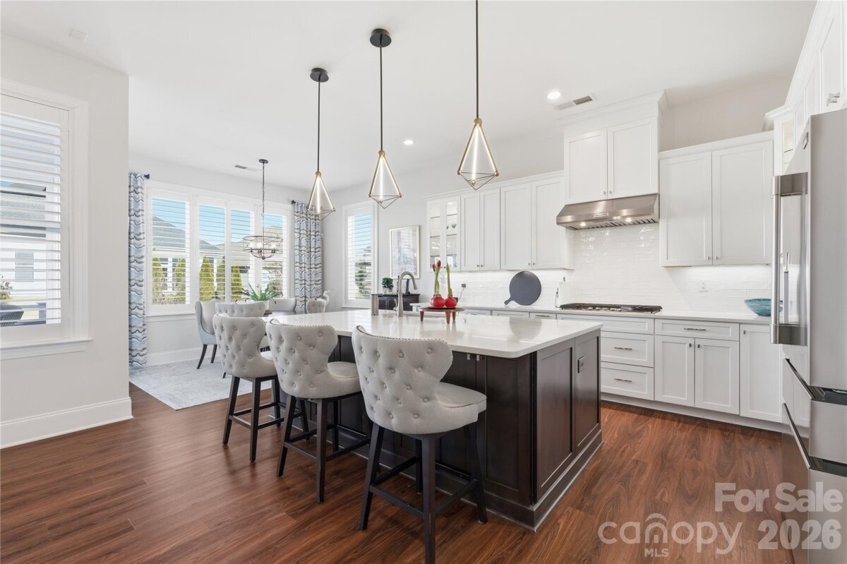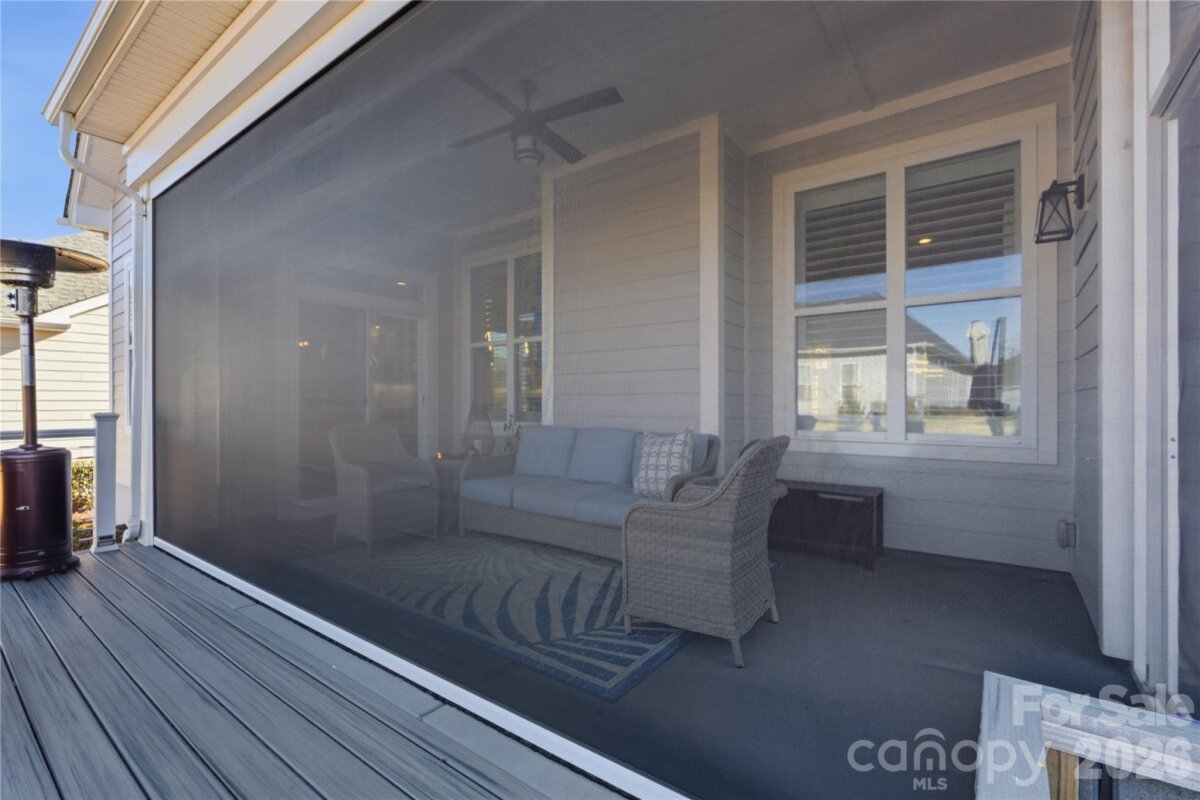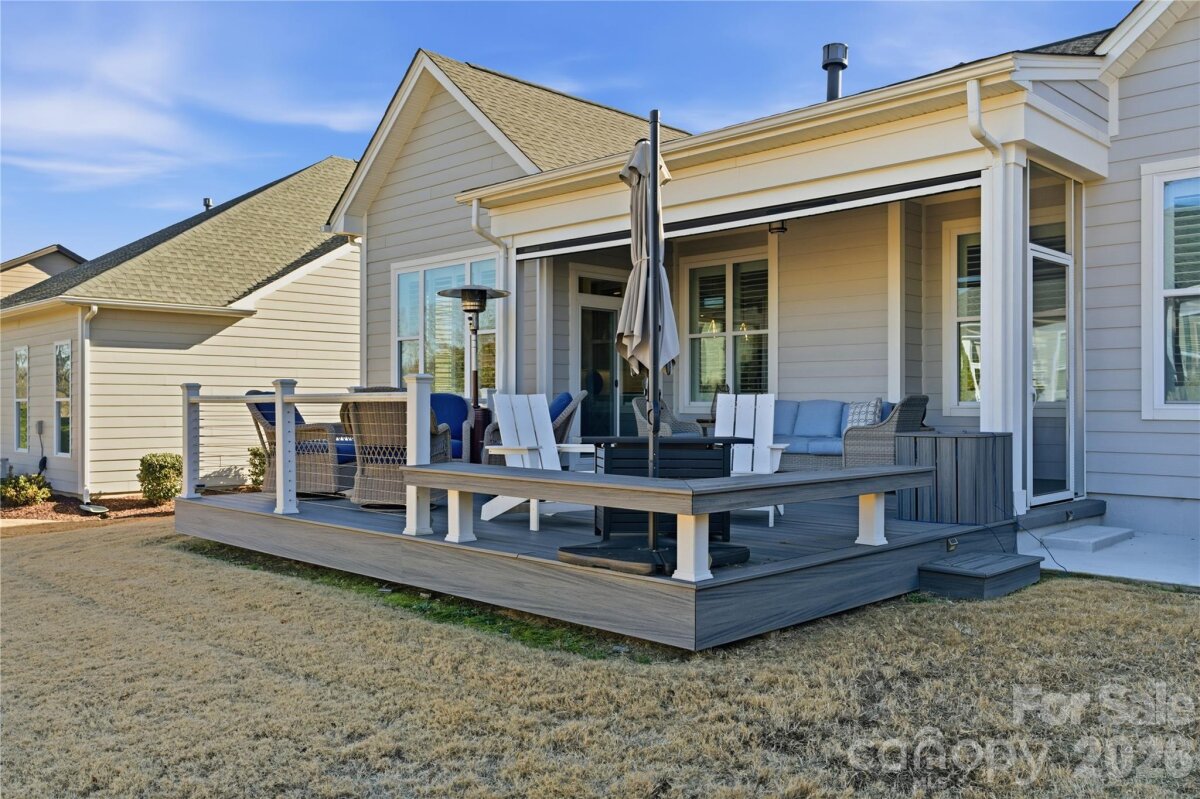 Exceptional curb appeal, meticulously maintained and absolutely pristine, this stunning home in the sought-after Regency at Palisades exudes luxury with carefully curated selections and custom finishes throughout—truly a show-home caliber residence. The open-concept Bowan Devonshire floor plan is designed for effortless entertaining and elegant single-level living, featuring surround sound and custom built-ins in the great room, high-end designer lighting, custom drapery, plantation shutters, custom owners closets and impeccable attention to detail at every turn. Seamless indoor-outdoor living awaits with a covered porch featuring a remote-controlled screen, flowing effortlessly onto a TREX deck with built-in bench seating—perfect for relaxing or hosting guests. Garage upgrades include epoxy flooring and added overhead storage. Even the breaker panel was upgraded to accomodate an emergency generator. Intentional improvements plus lawn maintenance included ensure easy, carefree living. This Toll Brothers floor plan was originally offered with an option for versatilty for den/office or third bedroom, if desired, with the addition of permanent of fixed clothes storage. Move-in ready and flawless, this home offers the best of resort-style living with an active lifestyle director and premier amenities including indoor and outdoor pools, fitness center, exercise studio, pickleball, tennis, bocce courts, and more. Perfectly situated on a quiet cul-de-sac street and rare opportunity to enjoy luxury ranch-style living in one of Charlotte’s most desirable active lifestyle communities—perfect in every way.