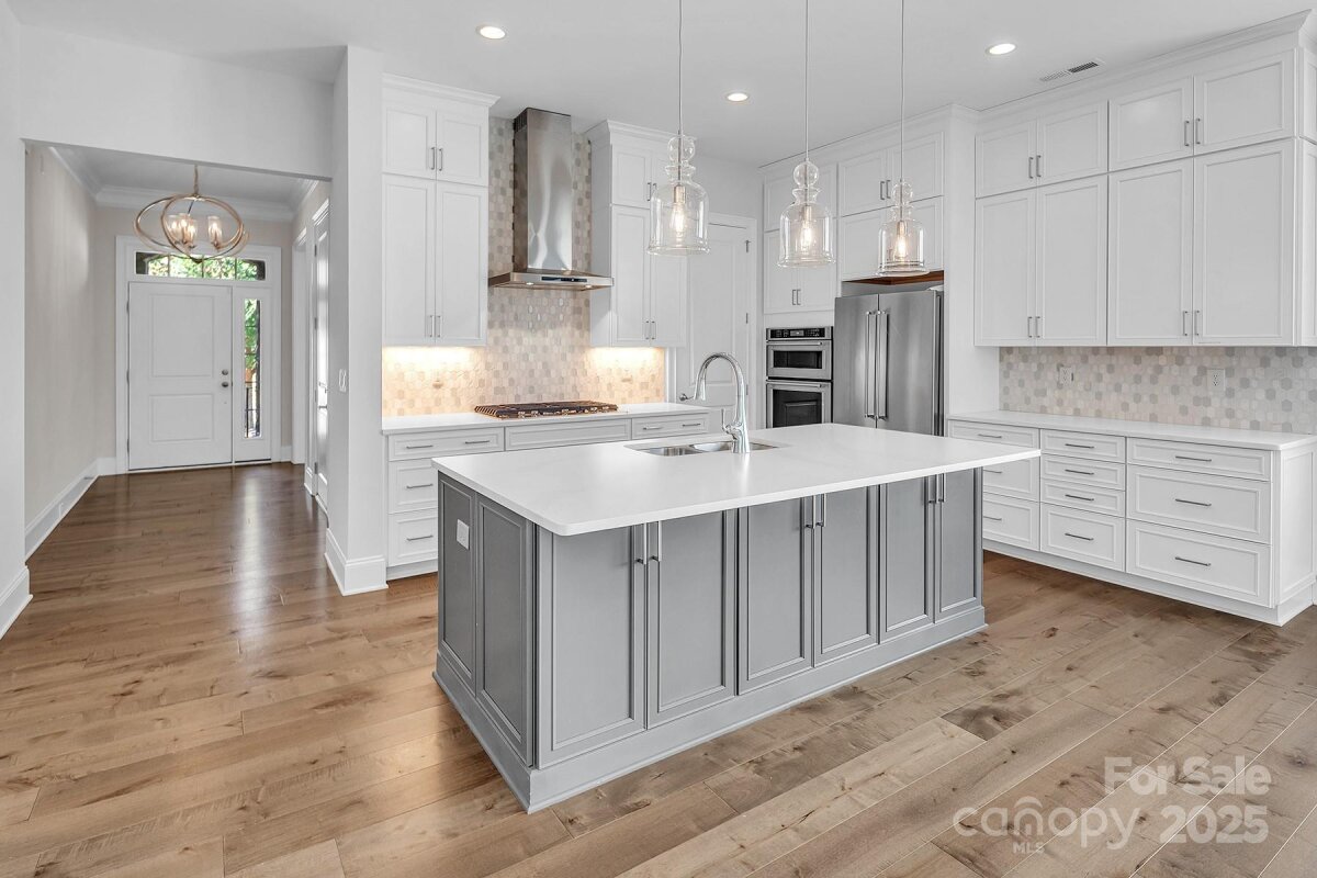 Significant price reduction! Beautifully appointed pristine one story home on the lake side of Regency at the Palisades This home greets you with high ceilings, open concept living, and tons of natural light. Gourmet kitchen features gas cook top, wall ovens, modern quartz counter tops, under counter lights and tons of storage . Spacious pantry and plentiful cabinets. Oversized island is perfect place for entertaining family and friends. Focal point of the living area is the gas burning fireplace with white quartzite looking low profile bricks. Artwork in itself. This family room easily accommodates comfy sectional sofas and more; large enough for family get togethers. Walk out through the 12 ft lanai sliding wall of doors to the large covered porch. This pricy upgrade is often seen on HGTV as a special feature that lets the living area and porch become one big living space letting the outside in. Double French doors opens to the gorgeous Primary Suite with a Trey Ceiling and Beautiful Contemporary Modern Chandelier. Walk into the ensuite with quartz counter tops, designer shower tiles and a much sought after private water closet. The huge Primary Closet flows into the laundry room for extra convenience. The brightly lighted front room could function as an office, family dining room or other flex space. The center Lighting Fixture is certainly a focal point as well as the wall of windows overlooking the quiet street and manicured front yard. Special to this home is the full walkout unfinished basement. Perfect for storage or finishing. Plumbing ready for bath. Use your imagination for this over 2000 ft of space. Perfect to add entertainment area, Movie Theater, workout space etc . Added bonus is the Generac whole house generator. Winter lake views. Be sure to check out the outstanding Amenity Center with pool, fitness center and much more. This is a life style community offering lots of activities and social opportunities at your choosing. Seller looks forward to your showing and offer.