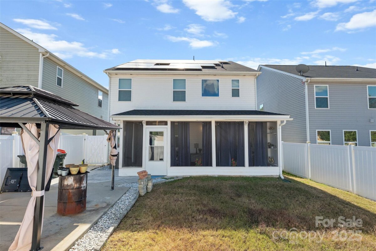 Beautiful 2019-Built Home in Ridgewater at The Palisades! Welcome to this exceptionally maintained 2019-built residence, ideally situated in the highly desirable Ridgewater subdivision of The Palisades. Thoughtfully designed with a perfect blend of modern luxury and everyday comfort, this impressive 4-bedroom, 3.5-bath home is crafted for today’s lifestyle. Step inside to an inviting open-concept floor plan that seamlessly connects the main living areas. The gourmet kitchen is a chef’s dream, featuring an oversized island, stainless steel appliances, sleek cabinetry, and designer finishes—all overlooking the spacious great room and dining area, perfect for entertaining or everyday living. Updated light fixtures, accent walls, and a charming front balcony add warmth and style to the home’s modern design. The main level guest suite with a full bath offers convenience and comfort for visitors or multigenerational living. Enjoy year-round relaxation in the enclosed sunroom, ideal for morning coffee, reading, or quiet evenings. Equipped with solar panels, this home delivers energy efficiency and sustainable living while reducing utility costs. Upstairs, the luxurious owner’s suite provides a private retreat complete with a spa-inspired en-suite bath, dual vanities, and a large walk-in closet. Three additional bedrooms and two full baths offer plenty of flexibility for family, guests, or a home office. Outside, embrace the natural beauty and peaceful setting of this amenity-rich community, offering walking trails, wooded views, a community cabana, and playground, all just minutes from Lake Wylie. With easy access to I-485, enjoy quick commutes to shopping, dining, and all that Charlotte has to offer. This stunning home perfectly combines comfort, efficiency, and location without compromise. Don’t miss your chance to make this turnkey property your new home—schedule your private showing today!