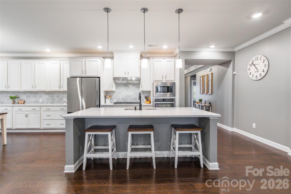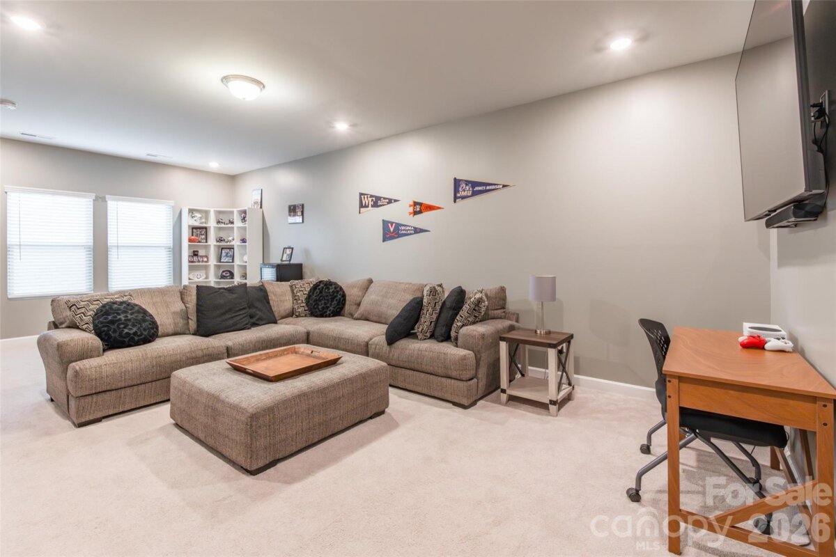 What you want, this home has. Open Floor plan, hardwood floors through out the main floor, 4 bedrooms on the main level and a large bonus room, full bathroom and bedroom on the upper level perfect for a second living area. Two of the bedrooms on the main floor have a jack&jill bathroom and the 4th BR on the main floor is perfect for an office. The large gourmet kitchen offers ample cabinets and counter space, large island for entertaining, and walk in pantry room. The primary suite on the main floor is a retreat with trey ceilings, hardwood floors, and en-suite bathroom and huge walk in closet. 10' ceilings on the main level bring in lots of natural light. Screened in back porch allows you to enjoy outdoor nature almost year round. Fenced in back yard. Drop zone area right off the garage. HOA INCLUDES YARD MAINTENANCE The Palisades amenities you have access to which might include outdoor pool, tennis and pickleball courts, fitness center, club house, walking trails, and recreation area.