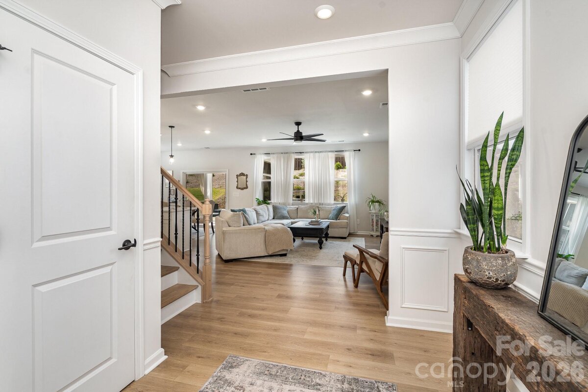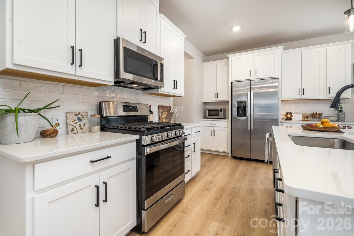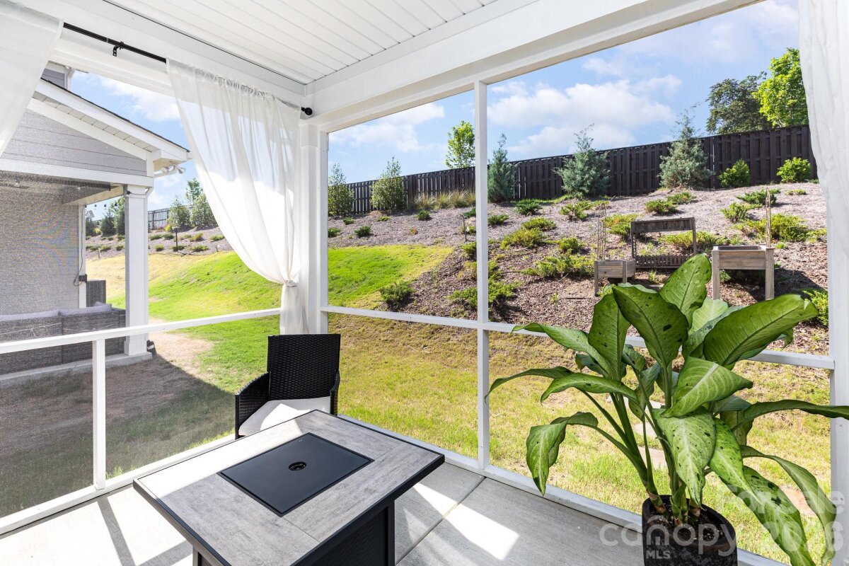 This spacious home features 4 bedrooms, 2.5 bathrooms, a versatile loft, and a 2-car garage with a utility sink. The open main level offers a welcoming foyer, a large living room, and a bright breakfast area with sliding glass doors leading to a screened-in porch—ideal for outdoor relaxation. The kitchen has stainless steel appliances, a center island with quartz countertops, and a walk-in pantry. Tons of natural light, LVP flooring, and custom Roman shades complete the main level. Upstairs, the primary suite includes a ceramic tile shower, double vanity with quartz countertop, and a walk-in closet. Three additional bedrooms, a full bath, loft, and laundry room provide ample living space. The upper level also features carpet, recessed lighting, and custom blinds. Community amenities include access to Lake Wylie for canoeing, multiple swimming pools, and scenic walking trails throughout The Palisades. Plus, from this home you can stroll along the trails right down to the waterfront Lake House. Conveniently located near Palisades Country Club, shopping, dining, and major routes with easy access to the airport.