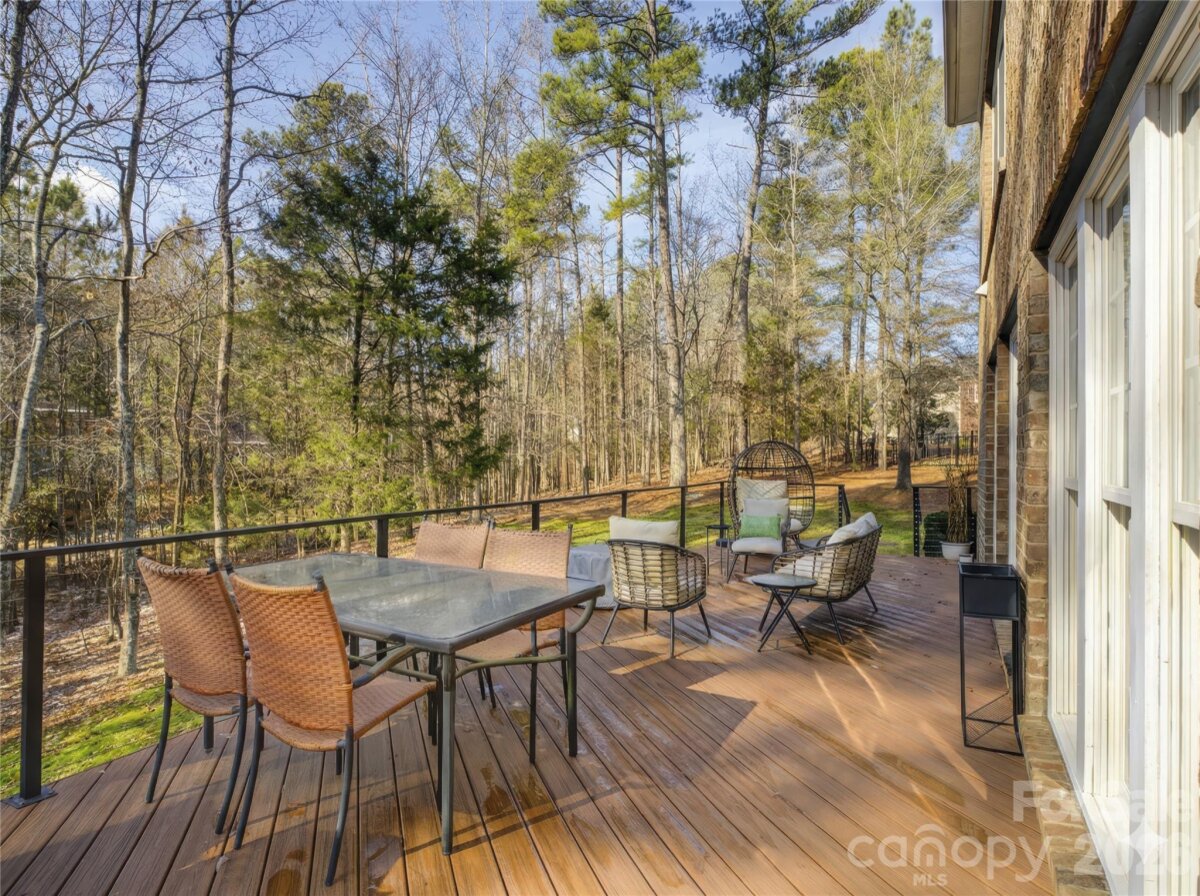 Tucked away on a quiet cul-de-sac, this full-brick home offers refined living on an oversized, private wooded lot with a fenced grassy play area that feels like a peaceful retreat. An impressive two-story foyer with a wood-tread staircase sets the tone, leading to a formal living room with a cozy fireplace and an adjoining dining room ideal for both formal and casual gatherings. The well-appointed kitchen features expansive granite countertops, an integrated 6-burner gas cooktop, an oversized island, double wall ovens, and abundant cabinetry. It opens to a bright breakfast area with a built-in wine refrigerator and access to a sun-filled Trex deck spanning half of the home. The great room is anchored by a second gas fireplace with custom-built-in cabinetry—perfect for entertaining and everyday living. A French-door study (or main-level guest bedroom) with a full bath adds flexibility. Upstairs, the spacious primary suite features a tray ceiling and a spa-inspired bath with dual vanities, a glass-enclosed tiled shower, a soaking tub, and an oversized walk-in closet. Three additional bedrooms, two full baths, and a versatile bonus room complete the second floor. A third-floor bedroom with a full bath and bonus space offers additional space to grow. Set amid natural beauty and paired with the luxury of sought-after country-club–style living, this home offers comfort, space, and timeless appeal. This home also features solar panels, whole house central vacuum system, and a new tankless hot water heater