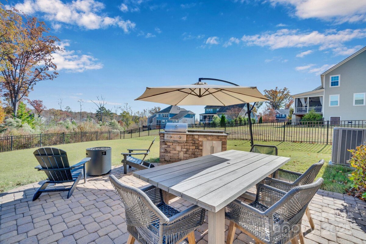 Tucked into the highly desirable Southern Trace Charlotte community, this Fenton floor plan offers the perfect blend of modern luxury, privacy, and everyday livability; a home that truly supports the way people want to live today. At the center of the home, an open-concept gourmet kitchen anchors daily life and effortless entertaining. Featuring granite countertops, double convection ovens, a 5-burner gas cooktop, and staggered cabinetry with crown molding and designer hardware, this space is both elevated and highly functional. A butler’s pantry provides additional storage and serving space, while LED, pendant, and under-cabinet lighting creates a warm, inviting atmosphere ideal for everything from family dinners to hosting friends. Hardwood floors throughout the main level, a cozy gas fireplace, and an elegant wrought-iron stair railing add timeless appeal. A unique secondary stairway leads to a flexible bonus room or second primary suite, perfect for guests, multi-generational living, a home office, or media room...a layout increasingly sought after by today’s Charlotte buyers. The primary suite serves as a private retreat, complete with a spa-inspired primary bathroom finished with upscale details designed for relaxation and comfort. Step outside and experience one of the home’s most coveted features: a private backyard backing to mature woods, offering peaceful views and exceptional privacy; a unique feature in this neighborhood. Enjoy true outdoor living with a screened-in back porch, patio, and built-in outdoor grill, ideal for entertaining, grilling year-round, or unwinding at the end of the day. An added advantage: the adjacent green space between this home and the neighboring property can never be built on, ensuring long-term privacy and open views. Beyond the home itself, the neighborhood lifestyle elevates everyday living. Residents enjoy access to community amenities including a pool and playground creating opportunities for relaxation, recreation, and connection. This is all just minutes from shopping, dining, and major South Charlotte and Steele Creek conveniences Adding even more value, the home includes a refrigerator, washer and dryer, and window blinds, making it truly move-in ready. This is more than a home; it’s a Charlotte lifestyle, offering open-concept living, outdoor entertaining, wooded privacy, flexible space, and resort-style community amenities all thoughtfully designed for today’s buyers and tomorrow’s memories.