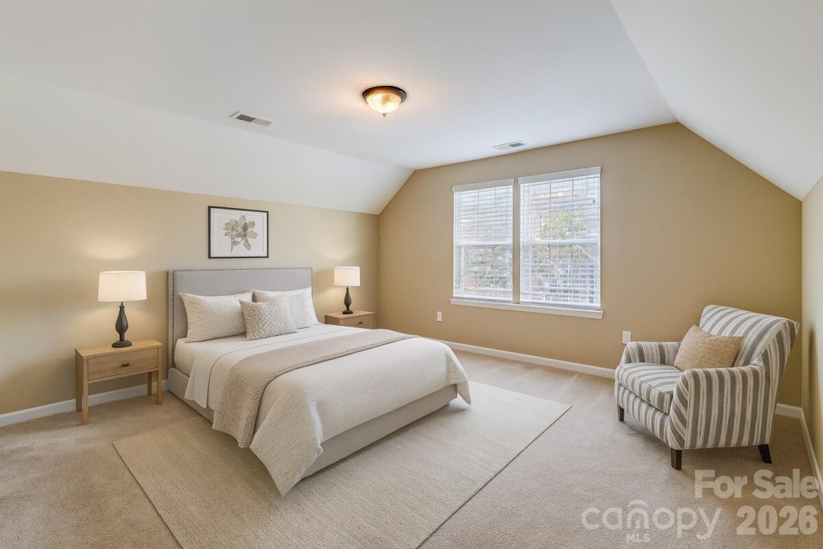 Welcome to the perfect blend of space, comfort and convenience in this beautifully appointed home. Top school district, affordable taxes, tucked in quiet cul-de-sac with seasonal water view of Lake Wylie. This property delivers both privacy and proximity to everything you need. Step inside to a warm and inviting entry where main floor offers an office with french doors, dining room perfect for hosting. A cozy living room centered with a stacked stone that is open to the kitchen, just in time for the holidays! A bright & sunny flex space/sunroom offers endless possibilities - playroom, gym, etc. The spacious kitchen opens seamlessly to all, making everyday living and entertaining effortless. Upstairs you'll find large secondary bedrooms and a generous primary suite. The 3rd floor bedroom/bonus provides even more flexibility - ideal for teens, media room, guests or private retreat. Graves Plumbing has been contracted to install a 3rd floor bonus room bathroom with buyer allowance for selections with acceptable offer; Making this home a 5 bedroom 3.5 bathroom! Outside, enjoy a private backyard with a water view of Lake Wylie - all in a desirable cul-de-sac setting. Community offers lake access for your personal watercraft, picnic area and playground.