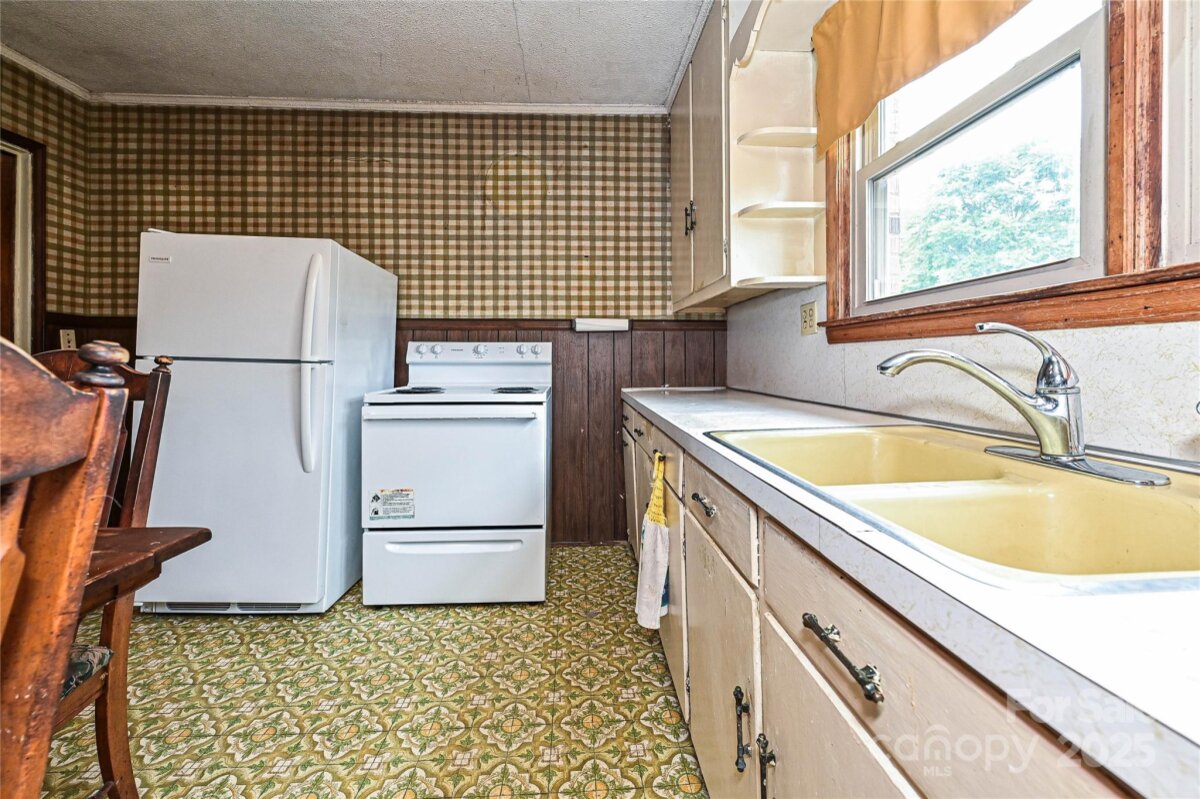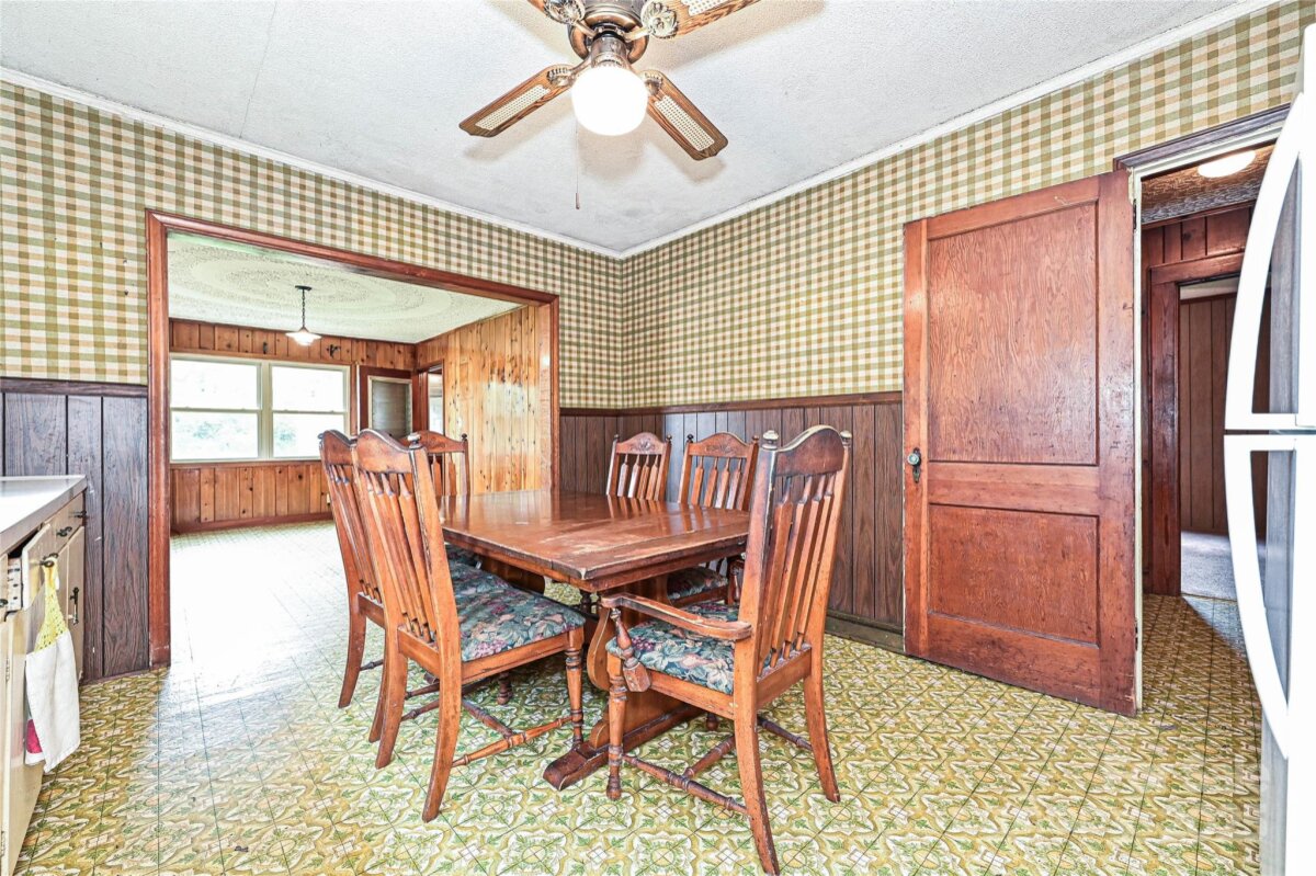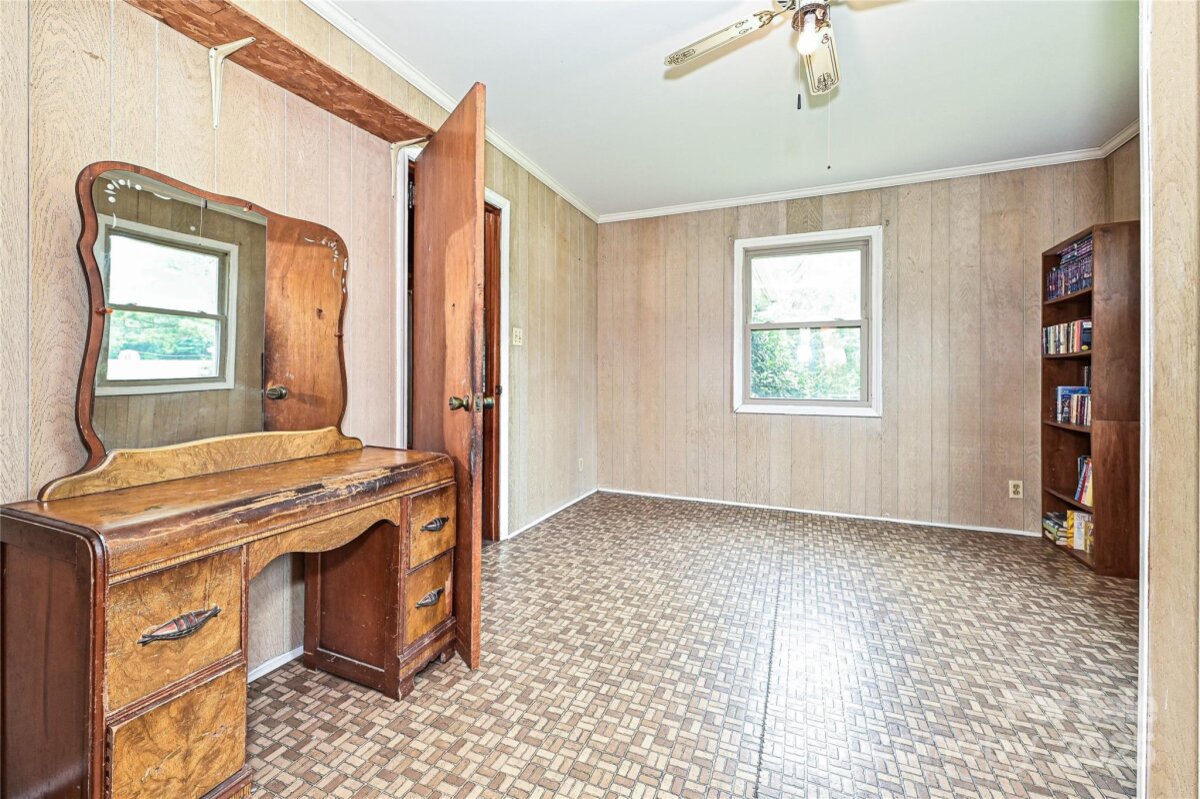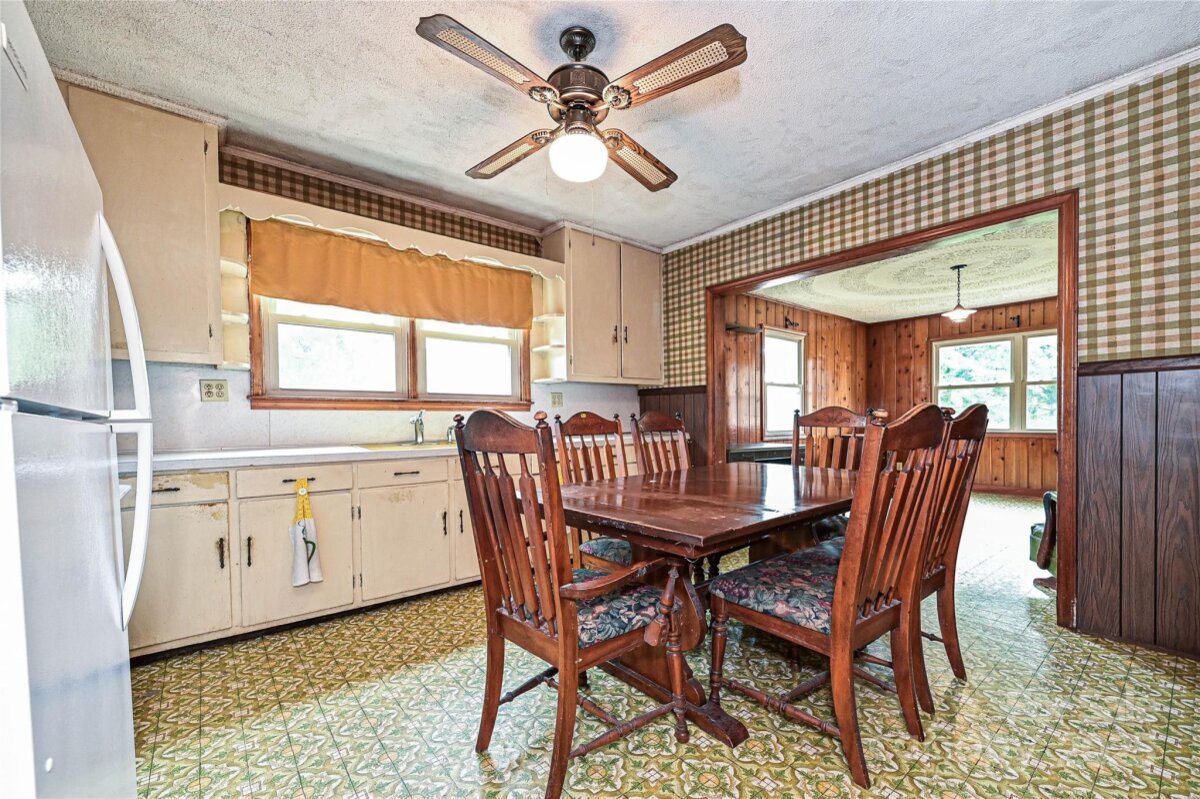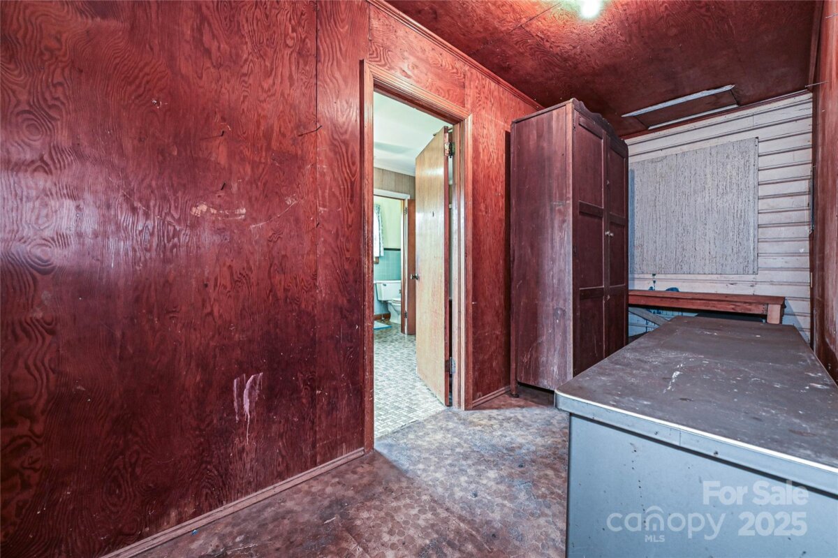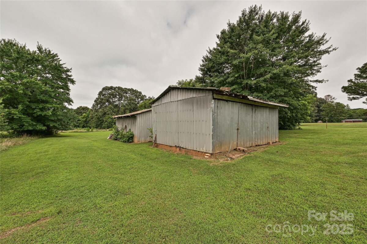 This AS-IS 3-bedroom, 1.5-bath home is brimming with potential for homesteaders, hobby farmers, or future homebuilders looking to make the most of a spacious, versatile property. Ideally situated with convenient access to Lincolnton, Denver, & Gastonia, the location offers both privacy & proximity. With dual road frontage on Salem Church Rd & Catalina Ln, the property is well-suited for a variety of uses. Two large, enclosed outbuildings provide ample space for storing vehicles, tractors, or setting up a workshop, while an additional covered shed adds extra protected storage. The land itself is a beautiful blend of open fields & wooded areas—perfect for gardening, exploring, or future development. Step inside the home & enjoy a touch of rustic charm, featuring cozy knotty pine walls & a free-standing woodstove in the living room. A true root cellar, accessible from the rear of the house, offers a nod to traditional homesteading and plenty of space for storing homegrown harvests.