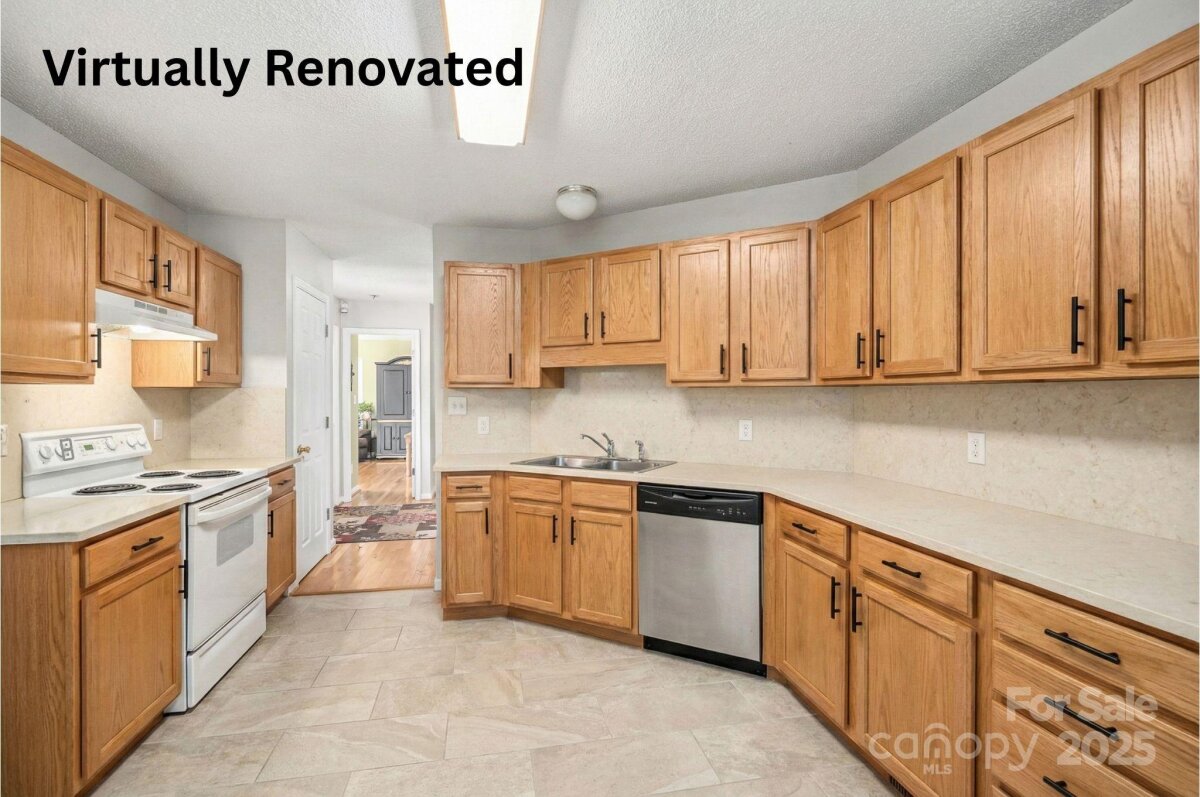 This home is located just outside of Lincolnton; however, close for all of your necessities. The outside of the home feels like you are in a small community. As you enter the inside, you will find a living room with gas log fireplace and to the right is the kitchen with a breakfast area. Around the corner is formal dining room. Home has a primary suite that is tucked away from the other bedrooms. Septic Permit is for a 3 bedroom but there is 4 bedrooms and an office space. The bedrooms have 3 conveniently located full bathrooms. From the living room, you can exit the home onto a large deck which looks onto a very private feeling back yard. Lots of relaxation space here. There is a short commute to Denver, Hwy 16 or Hwy 321. There is a separate membership required to use the community pool. The hall bathroom has a toilet that was leaking. The leak has been fixed and new flooring installed. There are 3 photos that have been virtually renovated. Living room photo has painted walls, and new furniture. Primary Bedroom has painted walls, new flooring, new light fixture, and new furniture. Kitchen has been virtually renovated to give the cabinets new color.