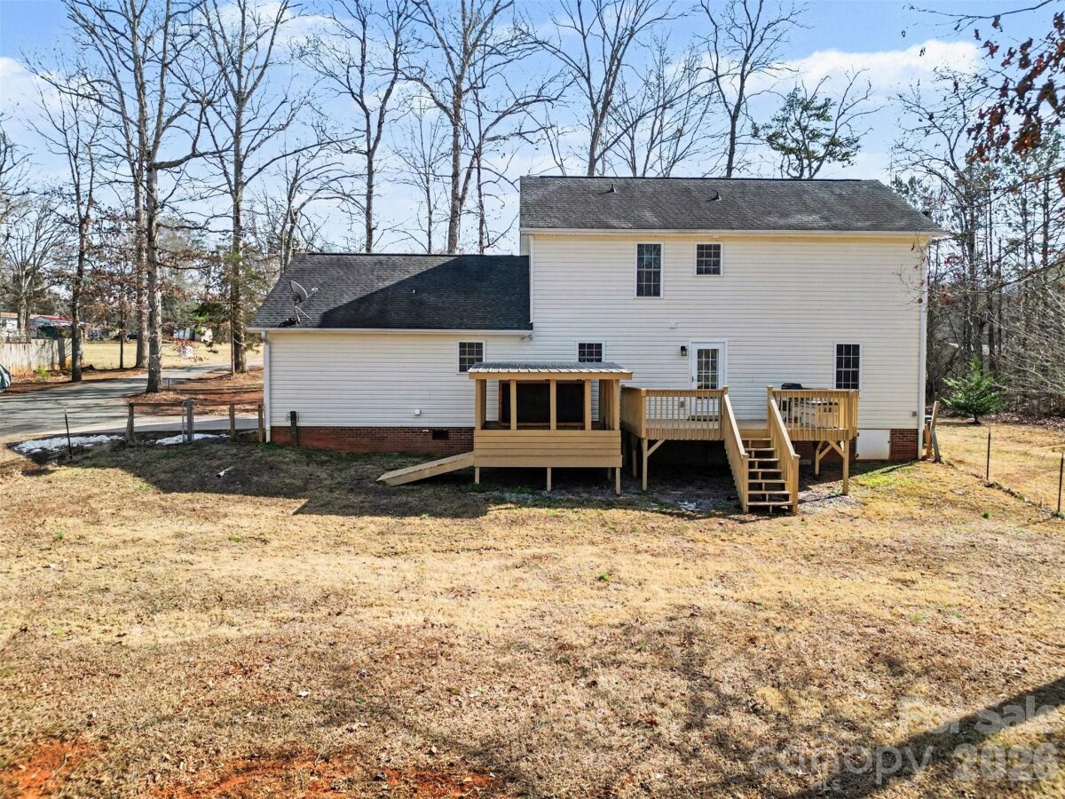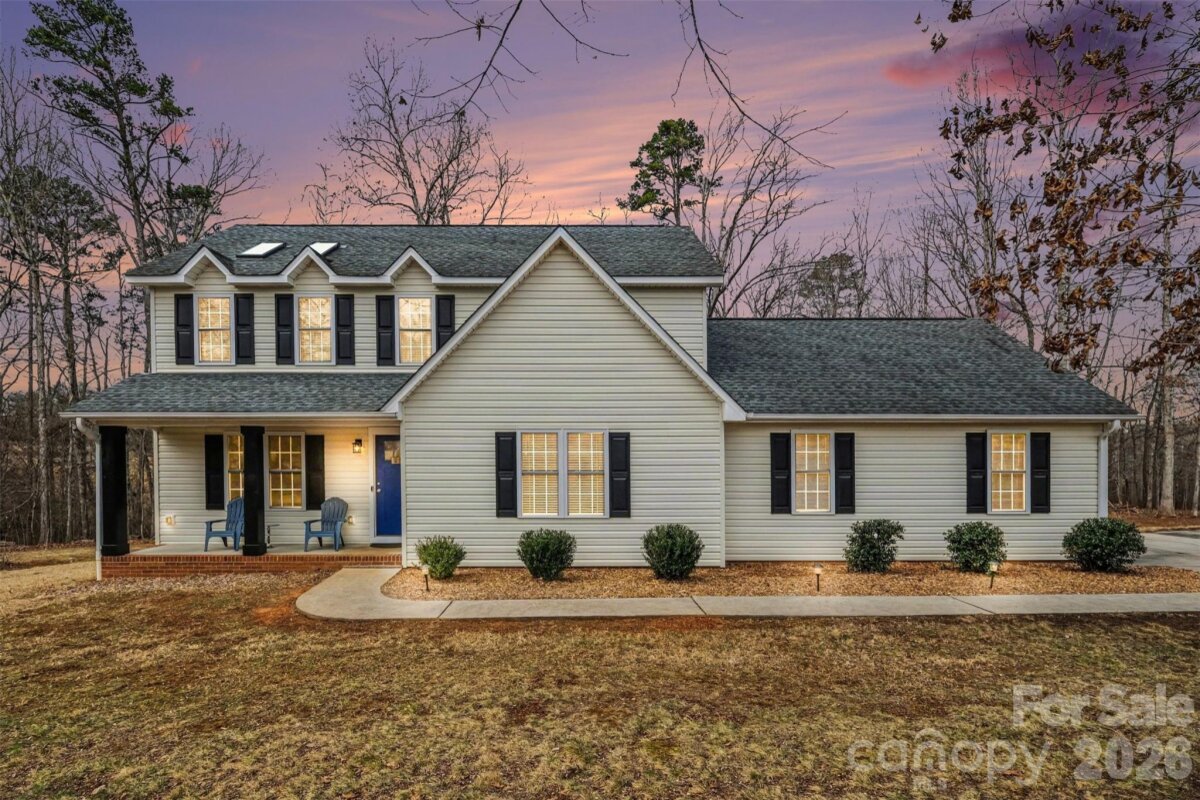 Tucked at the end of a cul-de-sac on a public road, this 4BR/2BA home sits on 3.9 acres with a peaceful, private setting - partially cleared around the home with wooded acreage behind. No HOA. Main-level living: Primary suite on the first floor with a private bath. Hardwood flooring throughout the main living areas. Bathrooms feature tile flooring. Upstairs layout: Three additional bedrooms upstairs, including an oversized 13'9" x 17'8" bedroom with direct access to the full bath (also accessible from the hall) for added convenience. Outdoor living: Enjoy the covered front porch plus a back deck for entertaining, with an additional covered deck area for shade and outdoor enjoyment. Parking + storage: Attached 2-car garage, detached 1-car carport, and a utility shed. Partial fencing in the backyard. Well & septic; 4-bedroom septic permit. Heat pump. Dual Agency Allowed.