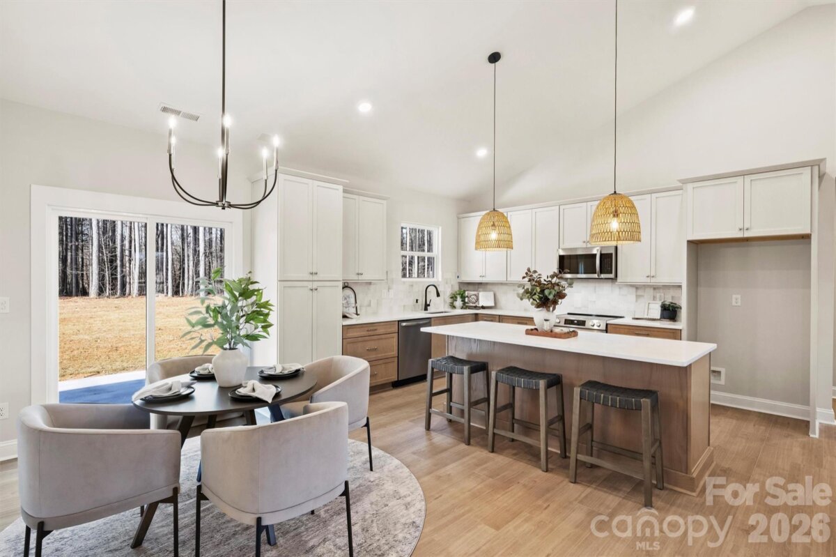 Recently completed and now fully revealed, 2307 Lee Lawing Road offers effortless living, elevated design, and the peaceful privacy of tree-lined homesites—just 15 minutes from downtown Lincolnton and convenient to Sherrills Ford and Denver. The exterior welcomes you with charming brick accents and stained wood front-porch columns, setting a warm and inviting tone. Inside, the builder’s Earthy Designer Package blends natural elements with warm tones, featuring upgraded lighting, high-end two-toned cabinetry, and quartz countertops throughout. The open-concept kitchen is centered around a generous island with pendant lighting and flows seamlessly into the vaulted main living area, creating an airy, spacious environment ideal for both everyday living and entertaining. The primary suite offers a beautifully tiled shower and designer finishes that balance comfort and style. Additional highlights include a dedicated laundry room with cabinetry and quartz counters, added recessed lighting, curated designer paint selections with crisp white ceilings, and an extended two-car garage with exterior exit door plus additional driveway parking. Now that construction is complete, this home is part of a newly released collection on Lee Lawing Road—offering a rare opportunity to own new construction with modern finishes and natural privacy in a growing Lincolnton location.