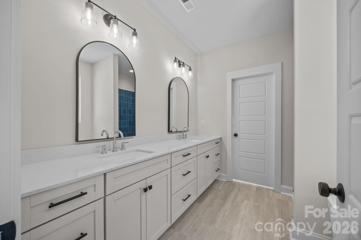 Recently completed and now available with NO HOA, discover North Pines—Lincolnton’s newest collection of thoughtfully designed single-level homes by Brancer Homes. 2319 Lee Lawing Road blends quality craftsmanship, elevated finishes, and the tranquility of a rural setting just 15 minutes from downtown Lincolnton and convenient to shopping in Sherrills Ford and Denver. A welcoming exterior sets the tone with stone accents and a stained wood front-porch column surround, creating warm and timeless curb appeal. Inside, the builder’s Lakeside Designer Package showcases elevated lighting selections, upgraded cabinetry in mixed designer tones, and quartz countertops throughout for a cohesive and refined look. The open-concept kitchen features pendant lighting over the island, a walk-in pantry, and seamless flow into the main living areas—an ideal layout for modern living and entertaining. The spa-inspired primary suite offers a stand-alone soaking tub, tiled shower wall, and a calming designer palette complemented by crisp white ceilings. Additional highlights include a functional drop zone, added recessed lighting, and a well-appointed laundry room with cabinetry and quartz counters. The home is completed by an extended two-car garage with exterior door, additional driveway parking, and a covered back porch overlooking tree-lined surroundings that provide both privacy and a peaceful setting. Now that construction is complete, this home is part of a newly released collection in North Pines—offering a rare opportunity to own move-in ready new construction with elevated design, no HOA, and a relaxed rural lifestyle in one of Lincolnton’s fastest-growing areas.
