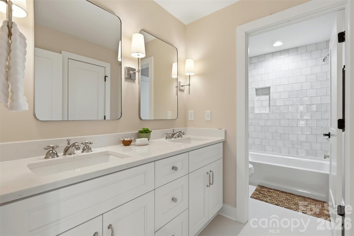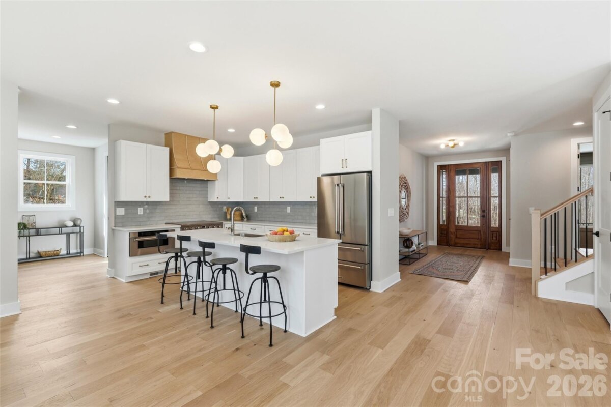 NEW CONSTRUCTION by Birchstone Homes in desirable Quinlan Estates! Situated on a private 1.07-acre wooded corner lot, this custom-designed 4-bedroom, 2.5-bath home offers over 2,900 square feet of high-end finishes. The open-concept floor plan features European white oak engineered hardwoods & a dramatic two-story living room with floor-to-ceiling windows. The gourmet chef’s kitchen boasts quartz countertops, tile backsplash, custom wood range hood, premium THOR stainless steel appliances, large island, and flows into the dining area— Perfect for hosting! Main-level dedicated home office with trimwork provides an ideal work-from-home setup. Spacious laundry room with utility sink and abundant cabinetry adds convenience and storage. Upstairs, the primary suite features a custom walk-in closet and spa-inspired ensuite bath complete with soaking tub, walk-in tile shower, and dual-sink vanity. Three additional oversized secondary bedrooms offer generous closet space and share an upgraded full bath with tile shower and double vanity. Enjoy outdoor living year-round from the covered back porch overlooking the peaceful, wooded backyard— Ideal for both relaxing & entertaining. Located just 15 minutes to downtown Lincolnton, dining, shopping, parks & recreation. Zoned for highly sought-after North Lincoln High School. Bold, modern luxury, privacy, acreage, and convenience— A home that truly hits the mark in every way!