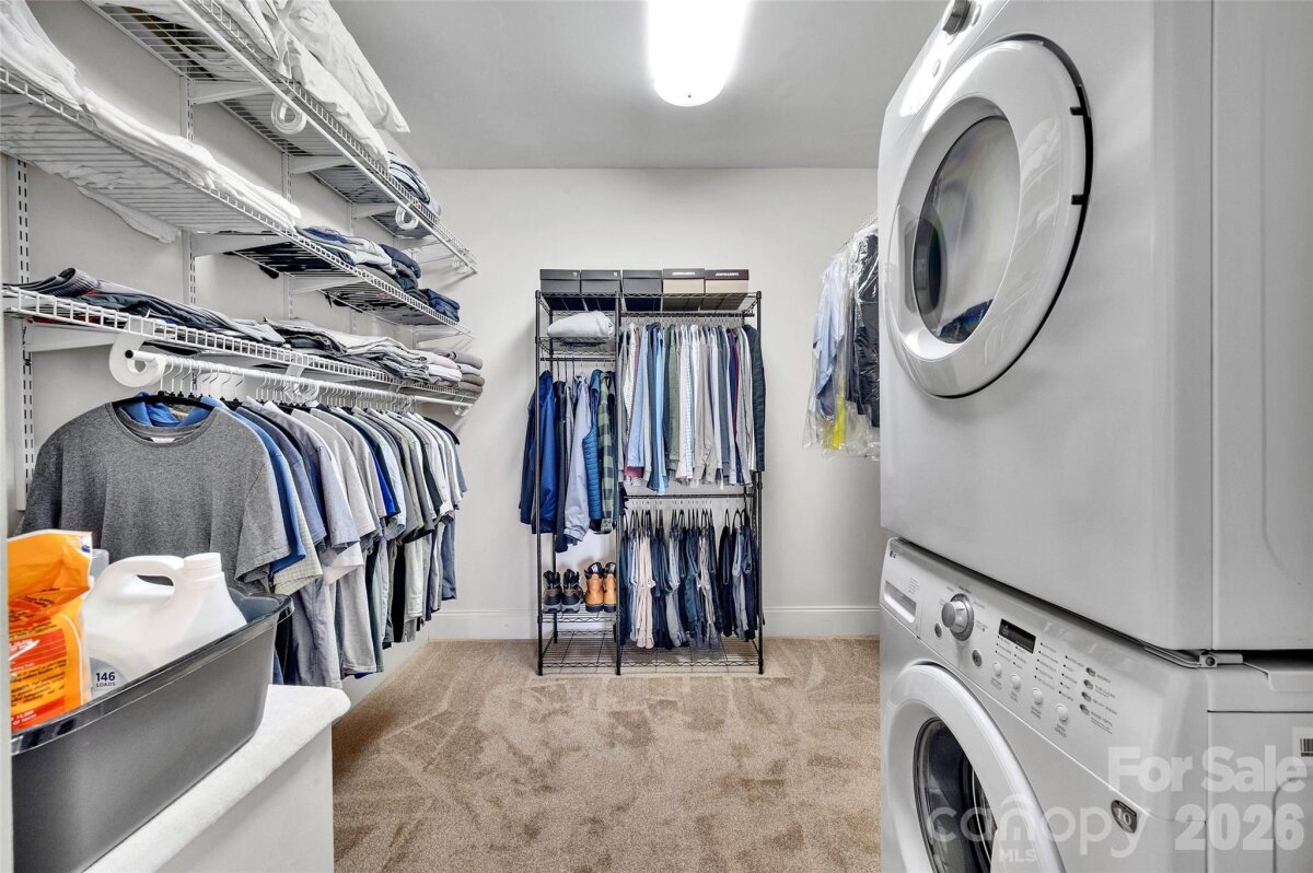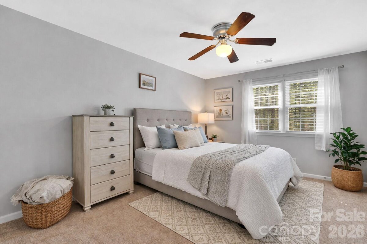 Space, flexibility, and privacy come together in this beautifully designed full brick home offering over 3,500 square feet of thoughtfully planned living space on an acre lot. From the moment you step inside, you’re greeted by warm hardwood floors that flow throughout the main level, complemented by an inviting layout featuring formal living and dining spaces, a spacious great room, and abundant natural light throughout. The heart of the home is the well-appointed kitchen, complete with a gas range, granite countertops, tile backsplash, stainless steel appliances, and a decorative center island—perfect for both everyday living and entertaining. Notable updates include a new stove and dishwasher (2021), adding both style and functionality. The breakfast nook, highlighted by a charming bay window, overlooks the private fenced backyard and wooded surroundings, creating a peaceful start to your day. A true standout feature is the main-level primary suite, thoughtfully designed for comfort and versatility—ideal for multigenerational living or an in-law suite. This spacious retreat features brand new carpeting, a zero-entry walk-in shower, and a walk-in closet with washer & dryer (will convey), offering ultimate convenience. With direct access to the raised outdoor patio, it provides a seamless indoor-outdoor lifestyle. Upstairs, you’ll find all new carpeting throughout, along with a secondary primary suite offering a luxurious retreat, complete with a tray ceiling, spacious walk-in closet, and a spa-like en-suite bath featuring a stand-alone soaking tub, glass and tile walk-in shower, and separate raised vanities—creating the perfect private escape. In addition, the upper level includes three generously sized secondary bedrooms, a second laundry area for added convenience (both washer and dryer sets convey), and a large bonus room with an electric fireplace, ideal for a media room, playroom, or flex space to fit your lifestyle. Step outside to enjoy the exceptional outdoor living areas, including a raised covered patio with ceiling fans and skylights, ideal for relaxing or entertaining year-round. An additional uncovered patio connects directly to the main-level suite, enhancing the home’s functionality and flow. The private lot backs to mature trees, offering a serene, wooded backdrop. Major system updates provide peace of mind, including a new HVAC system installed in 2023 and a new water heater in 2021. The septic tank was recently pumped on March 12, adding another layer of confidence for the next owner. Additional highlights include a side-load oversized garage with a convenient entry door and a spacious layout designed for both everyday living and entertaining. Located in the desirable Hidden Hills community, this home is just minutes to Pine Lake Country Club, with easy access to Mint Hill and Matthews—offering the perfect blend of privacy and convenience.