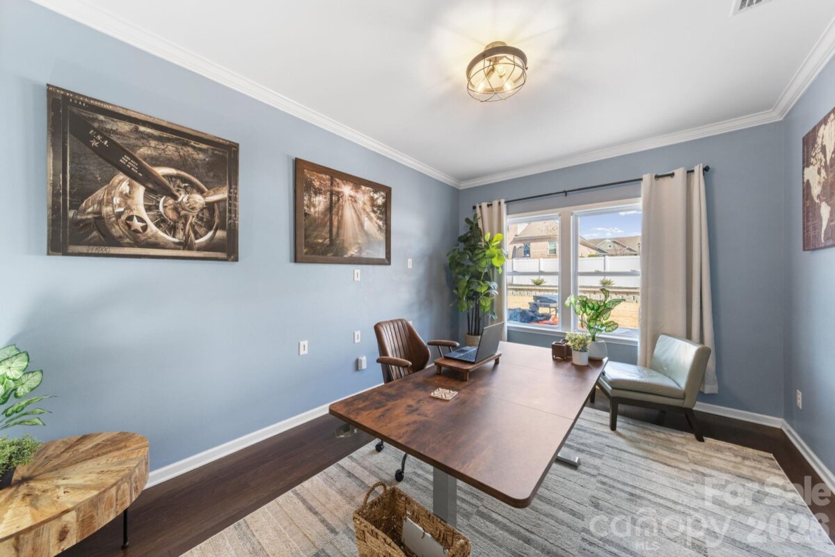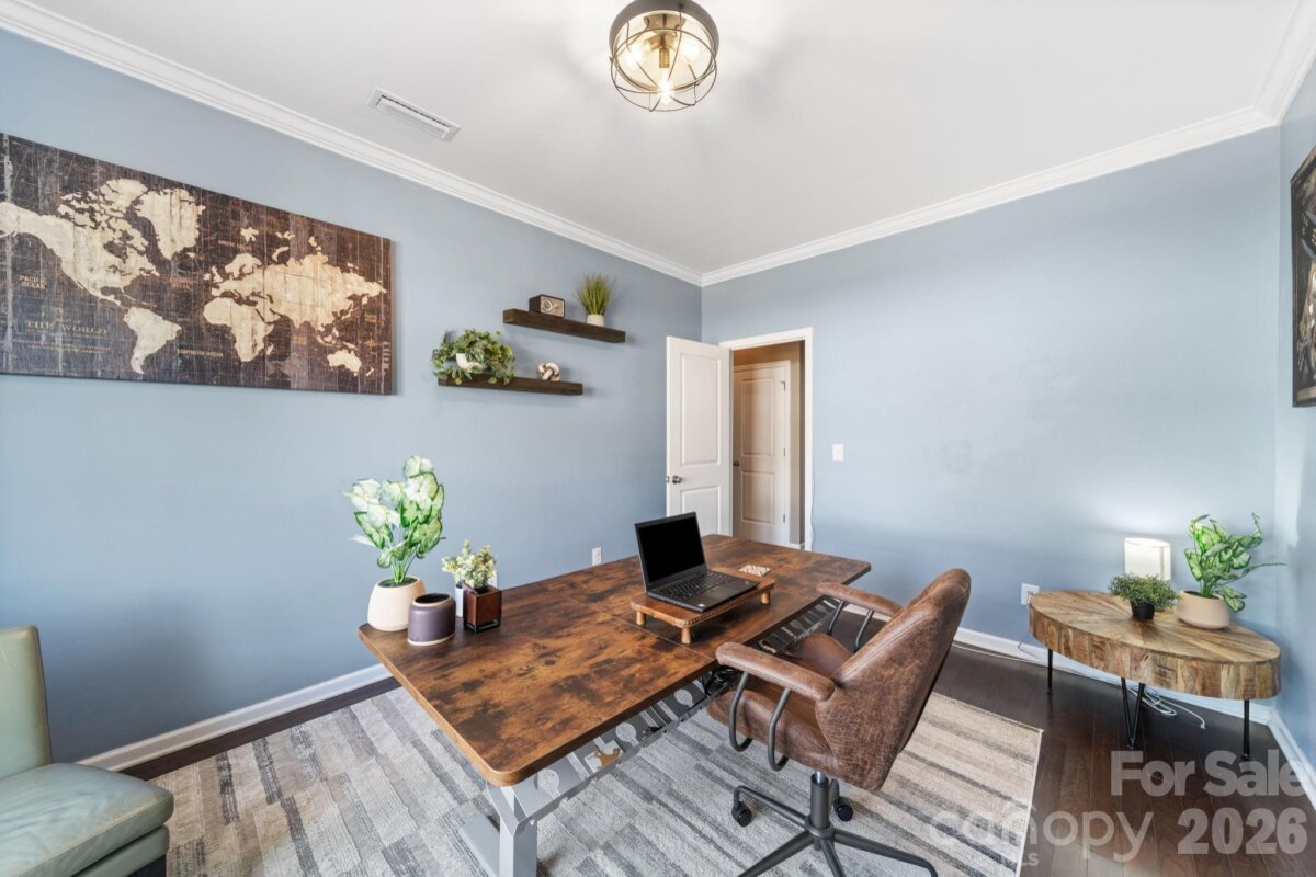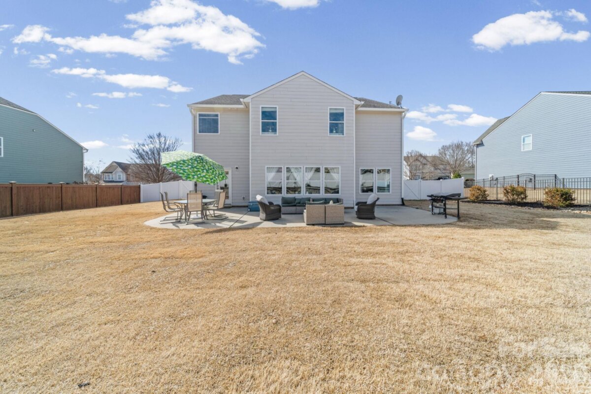 From the moment you walk in, this home has the space, warmth, and flexibility that makes it easy to picture life unfolding here. Exceptionally spacious, it offers 4 oversized bedrooms—each featuring walk-in closets—plus a large bonus room upstairs and a dedicated office on the main level that can easily function as a fifth bedroom. the layout provides room to spread out, gather, and grow, with generously sized spaces throughout. The primary suite offers an attached private room perfect for a sitting area, media room, workout space, office, or additional flex use. Upstairs also features new flooring in one bedroom, currently being used as a home gym, while the main level showcases hardwood floors throughout. One of the massive walk-in closets is large enough to serve as a podcast, hobby, or creative space, highlighting the incredible storage and versatility found throughout the home. Outside, the sellers invested in a complete backyard redesign, creating a welcoming outdoor living space perfect for relaxing evenings, entertaining, or simply enjoying time at home. The fully fenced yard includes a retaining wall, flower beds, and a spacious patio, while out front, the basketball hoop in the driveway conveys—ready for friendly games, laughter, and everyday moments that make a house feel like home. Additional updates include new gutters with a transferable warranty and the remodeled powder room. Located just minutes from downtown Mint Hill for shopping, dining, and local events, and only 1.5 miles to I-485, this home offers convenient access to Charlotte while maintaining the charm of a quiet community setting.