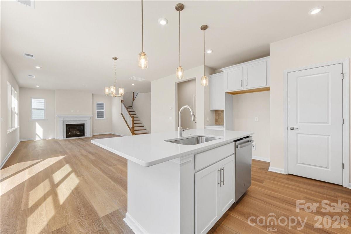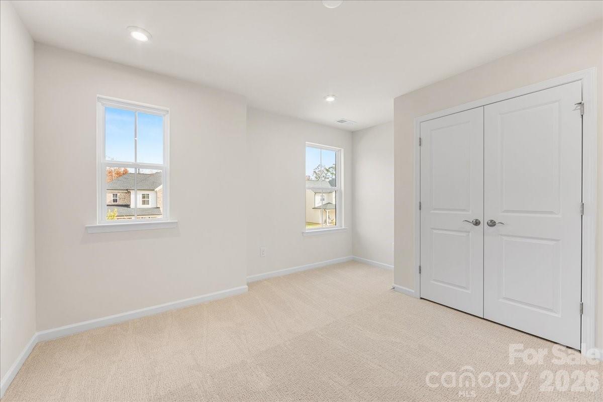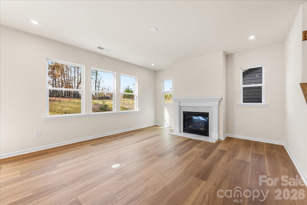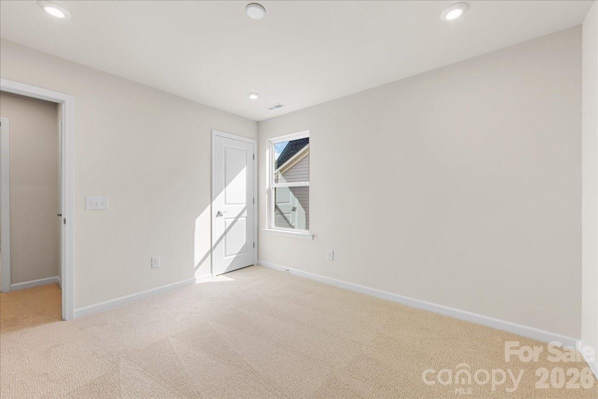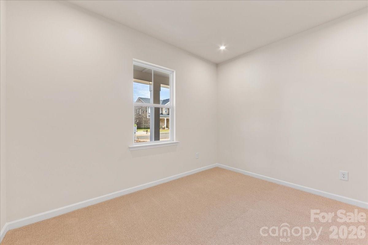 This five bedroom, three full bath home features a striking brick exterior with strong curb appeal, a first floor guest suite with full bath, a gourmet kitchen with white cabinetry, gas cooktop, and quartz countertops, a spacious walk in pantry, and a bright great room with gas fireplace. Eight foot wide sliding glass doors open to a covered outdoor living space overlooking mature trees. Positioned at the front of Alton Creek, the home faces a green space with direct access to the front activity lawn. Located in Mint Hill, it combines a peaceful neighborhood setting with walkable access to parks, dining, and everyday conveniences.
