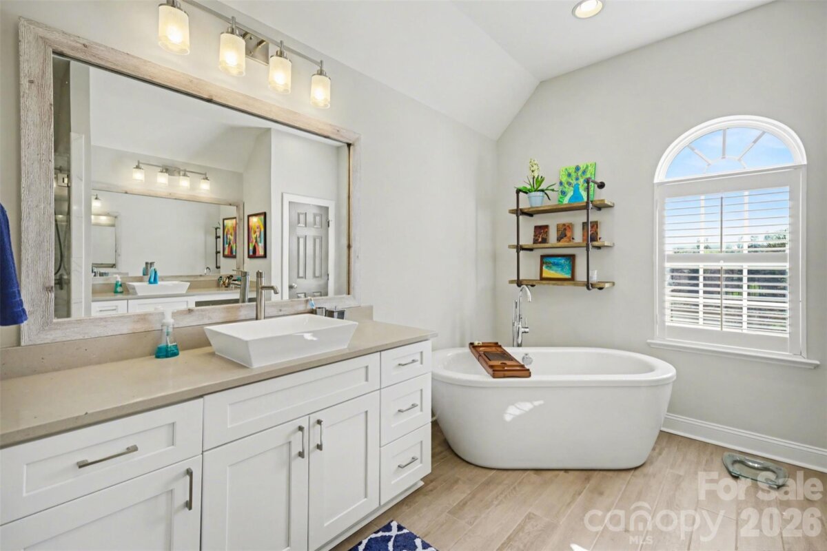 This is more than a home—it’s a thoughtfully curated retreat, where elegance and ease come together in perfect harmony. Tucked within one of Mint Hill’s most desirable enclaves, this former model home showcases timeless full-brick construction and a setting that feels both elevated and serene, with tranquil pond views best enjoyed from the inviting front porch. From the moment you arrive, the welcoming rocking chair front porch and manicured landscape set a gracious tone—an invitation to slow down and savor. It’s the perfect perch for morning coffee as the water gently reflects the day’s first light, or for unwinding in the evening with a glass of wine as the neighborhood settles into quiet calm. Inside, a soaring two-story foyer greets you with an abundance of natural light and refined architectural detail, creating a sense of openness that carries throughout the home. Designed for both gathering and quiet moments, the main level offers a seamless blend of formal and relaxed spaces. The living room, tucked behind elegant double doors, leads into a private home theater—perfect for cozy evenings and memorable movie nights. Nearby, the formal dining room, grounded by rich wood floors, provides a warm and inviting backdrop for celebrations both large and small. At the heart of the home, the kitchen is as beautiful as it is functional. Granite countertops, stainless steel appliances, generous cabinetry, and an expansive island invite connection—whether preparing a meal or simply enjoying conversation. The adjoining breakfast area opens to the deck, offering a peaceful outdoor setting for dining, entertaining, or simply enjoying the fresh air. The two-story great room is a true focal point, anchored by a fireplace and framed by a dramatic wall of windows that draws in sunlight and showcases the natural surroundings. It’s a space that feels both grand and welcoming. Upstairs, the primary suite offers a peaceful escape, with ample space to relax and recharge. The spa-inspired bath and expansive dual closets add both comfort and practicality, creating a retreat that feels indulgent yet effortless. With its rare combination of thoughtful design, scenic beauty, and a sought-after Mint Hill location—along with the added benefit of a low HOA—this home offers a lifestyle defined by quiet luxury and lasting value. For those seeking something truly special, this is a place that feels like home from the very first moment.