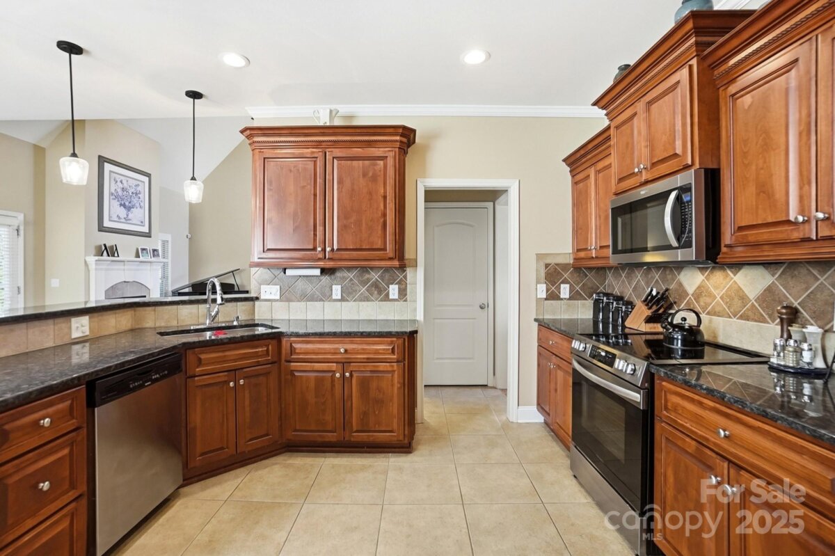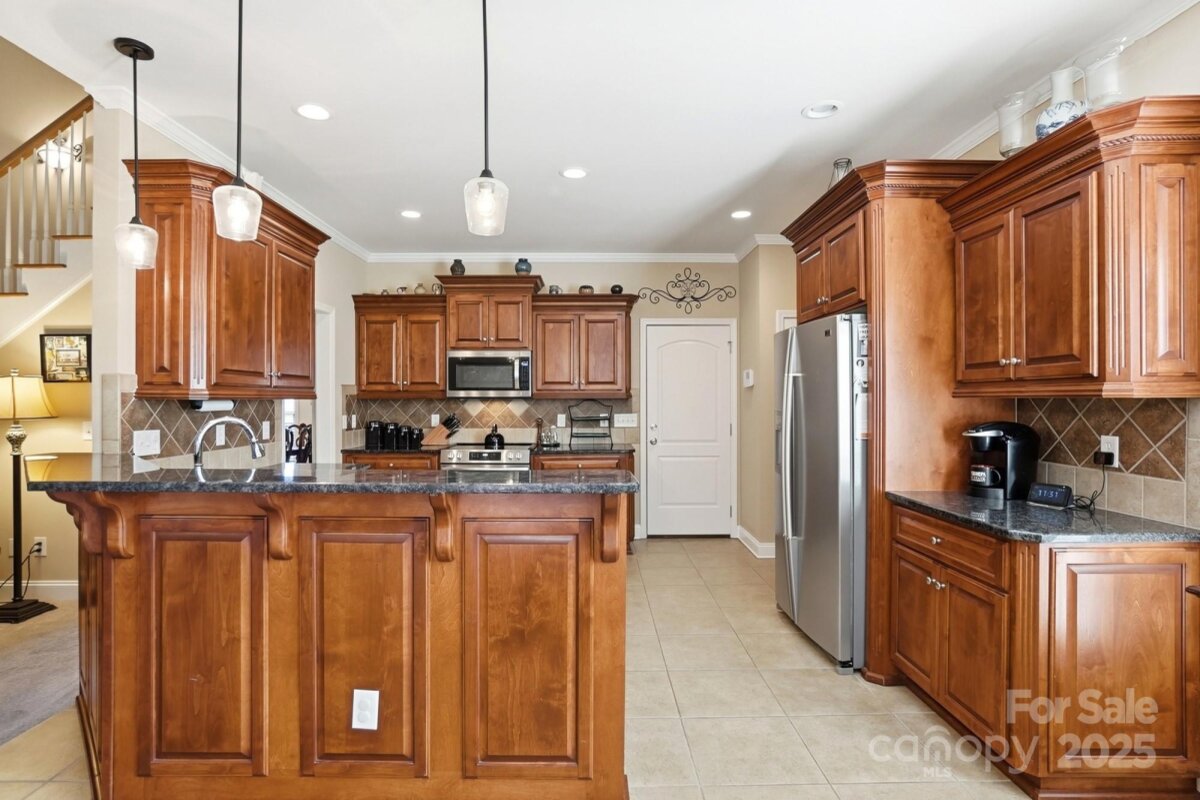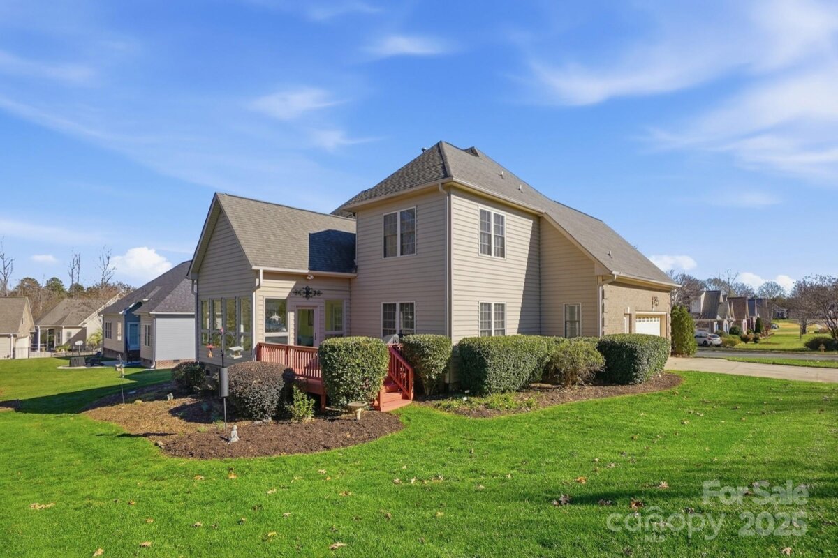 Welcome to 101 Moses Rhyne Dr. in Mount Holly — a beautifully maintained home tucked within the little “hidden gem†neighborhood of Rhynes Estate. This peaceful community is one of Mount Holly’s best-kept secrets, offering a friendly atmosphere and an unbeatable location. With quick access to I-85, commuting to Charlotte, the airport, or surrounding areas is an absolute breeze. From the moment you arrive, this home impresses with its stately brick front, elegant keystone corners, and attractive side-load oversized garage. Set on a spacious corner lot and backing up to a tranquil wooded common area, the property provides exceptional privacy and daily visits from deer—your own nature retreat right at home. Inside, the vaulted living room welcomes you with abundant natural light and cozy gas logs, creating an inviting setting for gatherings or quiet evenings in. A formal dining room with classic wainscoting offers an elegant space for hosting holidays, dinner parties, or special occasions. The kitchen features a bright breakfast/eat-in area that overlooks the peaceful backyard. Just off the kitchen is the enclosed sunroom, a favorite highlight of the home, offering a year-round place to relax, read, or watch wildlife from your personal observation deck. The main-level primary suite is spacious and serene, featuring a lighted tray ceiling, a generous walk-in closet, and a beautifully appointed en-suite with a double vanity, soaking tub, tiled shower, and thoughtful details throughout. Upstairs, you’ll find three oversized bedrooms, including one that easily serves as a bonus room, office, or flex space. The home has been recently refreshed with new interior paint, including the garage and deck, giving it a clean and move-in-ready feel. Additional features include an irrigation system to keep the lawn lush, a new HVAC installed in 2017, and quality construction you can appreciate throughout. Rhynes Estate is truly the kind of neighborhood buyers wish they knew about before their last home purchase—quiet, welcoming, and incredibly convenient to everything Charlotte and the surrounding area has to offer. 101 Moses Rhyne Dr. is a standout property in a standout community, offering comfort, style, and the perfect Mount Holly lifestyle.