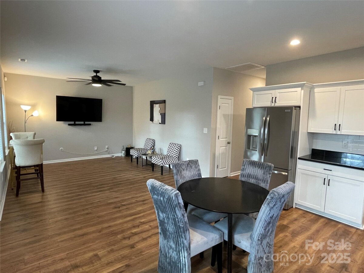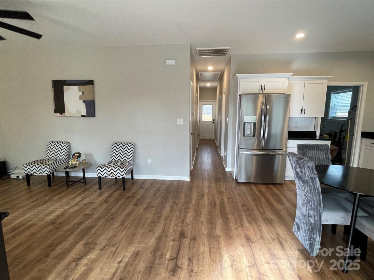 Dimmer & Sons construction only 1 year old in Mt. Holly just off of Highway 27 artery to quickly access your work or play destinations. Just a few minutes to quaint mid-town Mt. Holly, or jump on I-85 to get to uptown Charlotte or the airport, and only about 12 minutes to the Whitewater Center. Cared for by a tenant for 1 year, but now on a month-to-month lease only requiring 30 days' notice for a owner occupant. (Note to investors: Tenant may wish to remain and currently leases for $1800 per month). Builder is the owner and says prior to closing he will touch up paint and have professionally cleaned so home should feel like new again. Wide rocking chair front porch (16'x6') greets you as you step into the open living area with laminate wood look floors. Down the hall you'll find the primary bedroom on the left with a spacious walk-in closet with tiled shower, glass shower doors, tiled floor, granite counter top, and linen closet. For privacy, the 2nd bedroom is on the right side of the hall with a double door closet. The hall bath has a granite topped vanity, tile floor, and tub/shower combo. Kitchen features stainless steel appliances, including a refrigerator that remains, and granite countertops. Adjacent to the kitchen is the laundry room with washer/dryer hook-ups. Back door opens to a 12'x12' patio and a huge, nearly flat, privacy-fenced back yard that backs to the woods. Lot is approximately .32 acres. Survey on file. This is a city road paved from Highway 27 almost all the way to this property and then is briefly gravel as you pull into the double-width concrete drive. Both the paved and gravel portions of Payne St. are city-maintained per seller. Home is in the Mt. Holly city limits with city water, but has private septic tank in back yard. AT&T fiber connection in place.