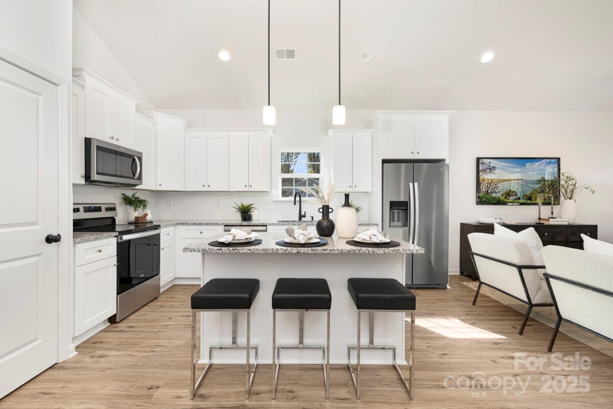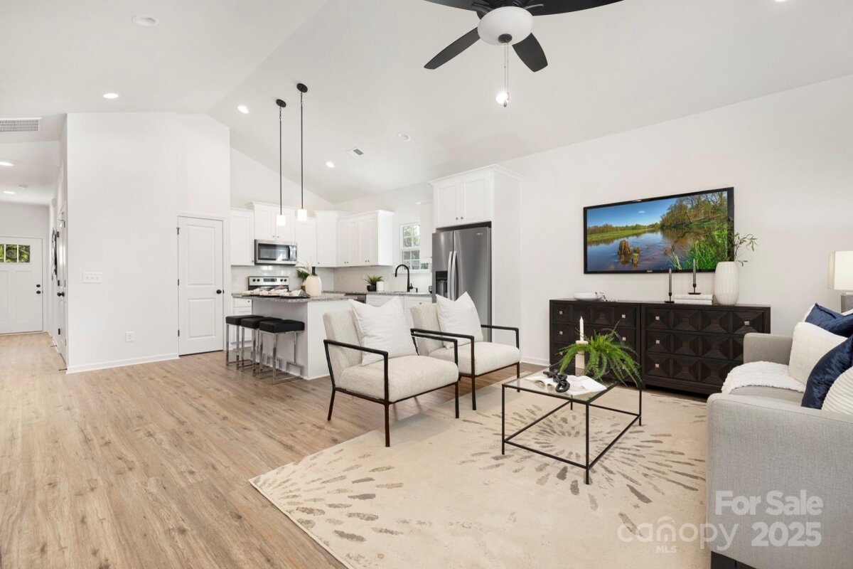 Experience contemporary living in this recently constructed ranch home, perfectly situated in Mount Holly, NC. This attractive three-bedroom, two-bathroom residence features an expansive, open-plan design that fluidly unites the kitchen, dining space, and living area, making it ideal for both daily life and hosting guests. The kitchen stands out with stainless steel appliances, premium soft-close cabinetry, and a generous central island, all set beneath a soaring vaulted ceiling that amplifies the sense of space. Retreat to the primary suite, which includes a spacious walk-in closet and a private attached bathroom. Practicality is enhanced by a convenient one-car garage, offering additional storage. Its location provides easy connectivity to I-85 and is just minutes from the vibrant core of downtown Mount Holly, offering quick access to the scenic Catawba River, local green spaces, various shops, and dining establishments. With new construction flourishing in the vicinity, this represents an excellent chance to acquire a quality new build in a rapidly growing community. Please note that photos are of a similar, previously completed home and final finishes are subject to change.