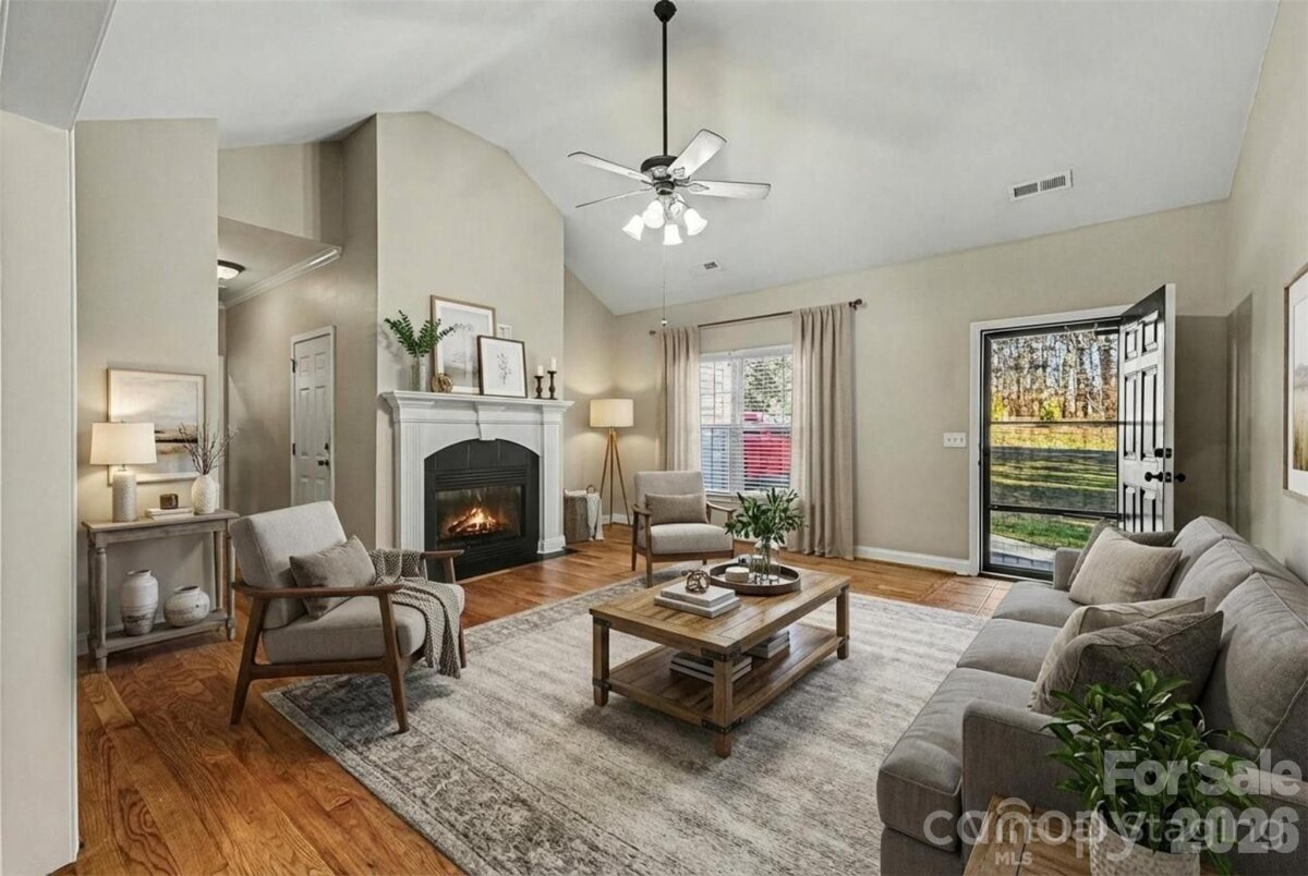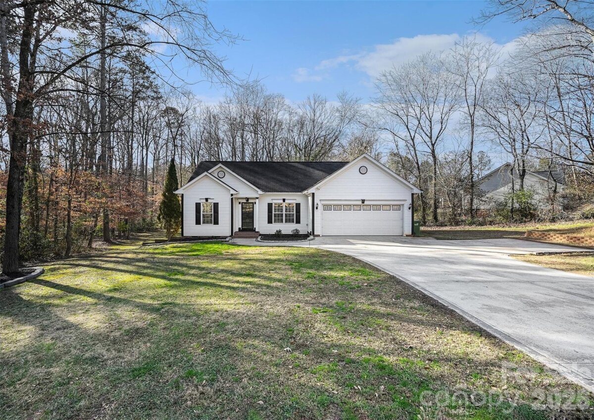 Welcome to this charming 3-bedroom, 2-bath ranch-style home situated on a spacious .75-acre wooded lot with no HOA. This inviting property offers comfortable single-level living in a private, peaceful setting while still being conveniently located near Mount Holly, Belmont, and Charlotte. Inside, you’ll find an open and airy floor plan featuring vaulted ceilings, warm hardwood floors, and a cozy fireplace that anchors the main living area. The living space flows effortlessly into the dining area and kitchen, which offer ample cabinetry, modern appliances, and abundant natural light—perfect for both everyday living and entertaining. The primary bedroom provides a relaxing retreat with a private en-suite bath, while two additional bedrooms offer flexibility for guests, a home office, or additional living space. Neutral finishes throughout make this home truly move-in ready and easy to personalize. Step outside to enjoy the screened-in porch overlooking the serene, wooded backyard—ideal for morning coffee, evening relaxation, or entertaining friends and family. The expansive lot offers plenty of space for outdoor activities, gardening, or simply enjoying the surrounding nature. This well-maintained home delivers privacy, space, and freedom with no HOA restrictions, all while offering easy access to shopping, dining, and major roadways. A wonderful opportunity for those seeking peaceful living without sacrificing convenience.