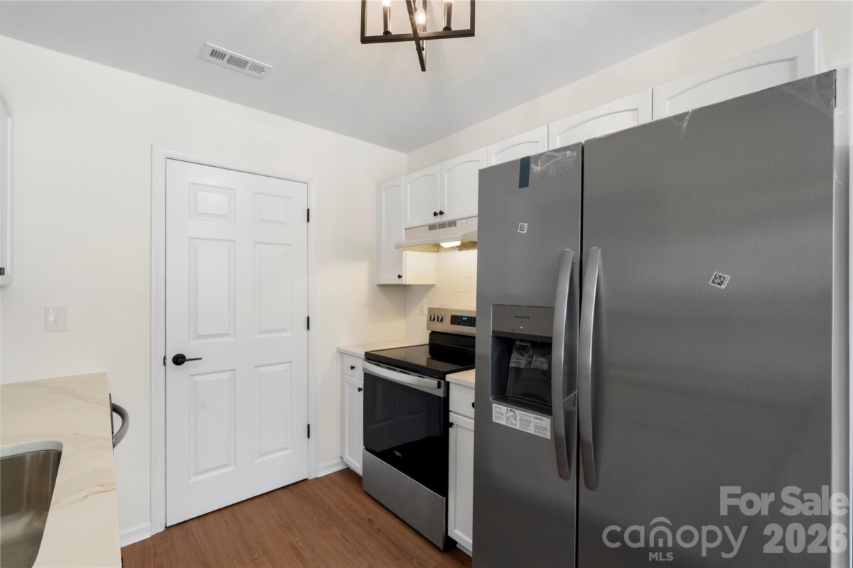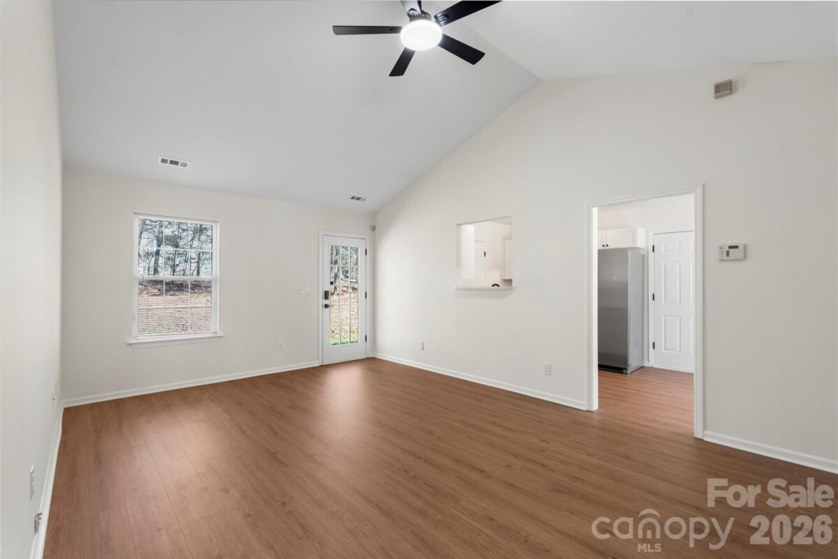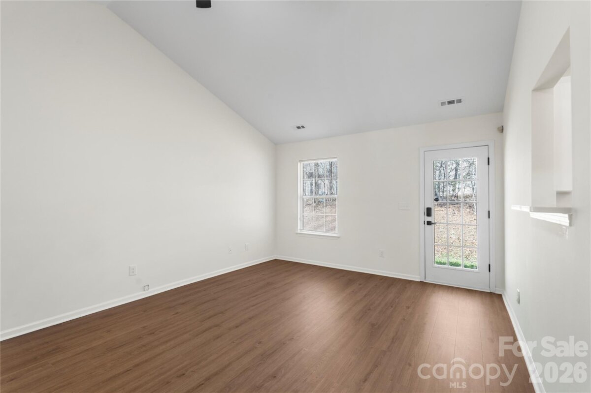 Welcome to this charming and updated Ranch Home offering 3 bedrooms and 2 bathrooms. The very functional floor plan offers durable vinyl plank flooring throughout the main living areas, new carpet in the bedrooms and fresh neutral paint throughout! The bright and spacious living room features soaring vaulted ceilings and offers easy access to the rear patio and Kitchen/Dining areas. The gourmet kitchen features white cabinetry, stainless steel appliances, quartz counters, and seamlessly connects to the dining area for convenient meals, or your morning coffee. The primary suite offers a comfortable retreat with a private and updated bathroom and walk in closet. Two additional bedrooms provide flexibility for guests, a home office, or hobbies. Enjoy nature from your rear patio with matured trees and natural area or the large front yard from your covered porch offering plenty of space for outdoor activities, gardening, or relaxing! Great location with easy access to I77 and I85, CLT airport, 485 and tons of shopping, entertainment and restaurants near by, this home has something to offer for everyone!