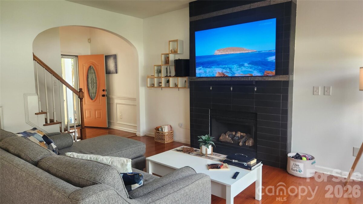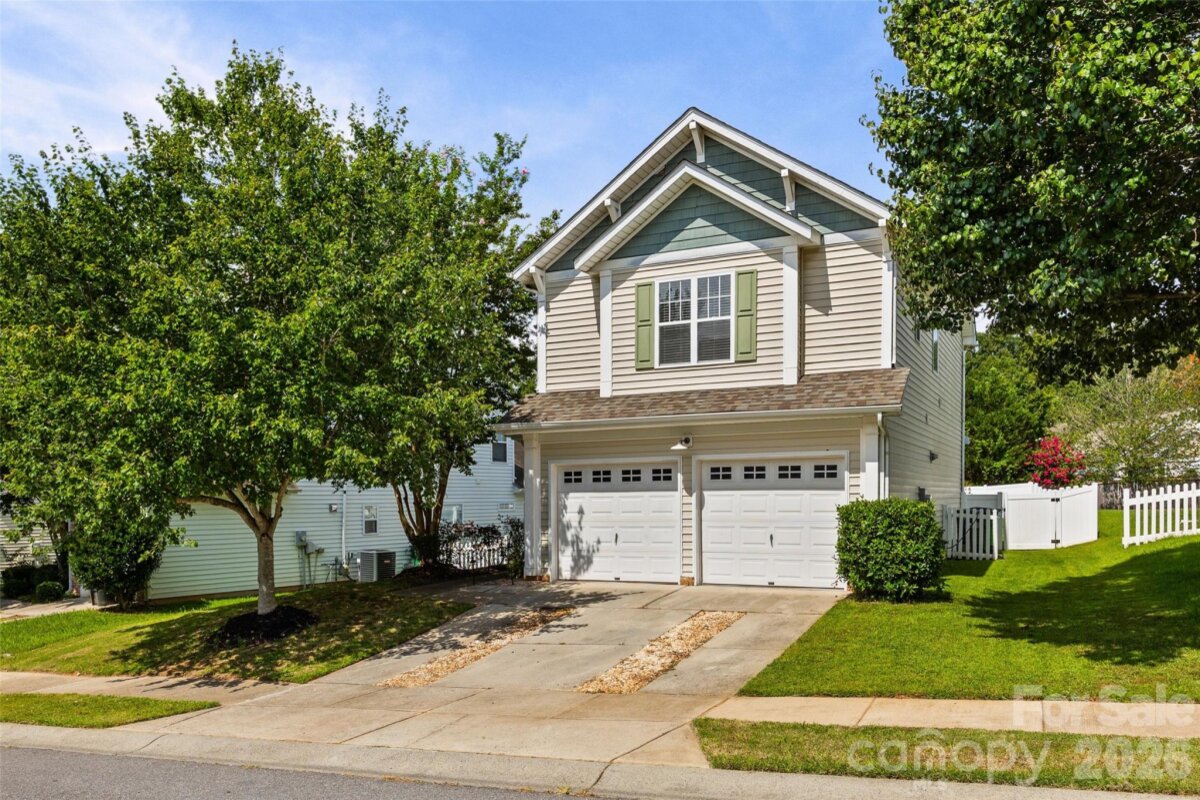 Bright and spacious, this Riverbend home offers an open layout ideal for entertaining and everyday living. Enjoy a large living room that flows into the upgraded kitchen with a generous peninsula and dining area. Fresh, neutral paint throughout enhances the light-filled space. Upstairs, the oversized primary suite features two walk-in closets; two additional bedrooms, another full bathroom and a convenient laundry room—washer and dryer included. Step outside to a flat, fenced backyard with a deck, pergola, fire pit, and young fruit trees—perfect for gatherings. The fence was installed 2 years ago. The finished 2-car garage includes a foldable built-in workbench and numerous supplemental lights, adding function and storage. Riverbend amenities include a pool with slide, volleyball court, playground, sidewalks, and streetlights. All this just minutes from the Whitewater Center, Mountain Island Lake, I-485 and exciting Riverbend Village shopping and dining.