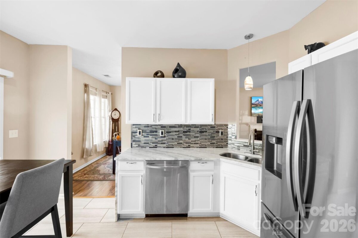 This inviting 4 bedroom, 2.5 bath home is filled with natural light and features practical storage throughout the entire home. The kitchen has been recently updated with marble countertops featuring a waterfall edge, along with newer stainless steel appliances, a breakfast nook and a pantry. The open-concept living area features a cozy gas fireplace, offering a comfortable space for everyday living and fun gatherings alike. The dining room offers a comfortable place to land and enjoy your meals after a long day. A half bathroom and two-car garage complete the main floor. Upstairs, you’ll find three bedrooms plus a large, versatile bonus room with a closet, easily used as a fourth bedroom, bonus room, home office or kids play area. The expansive primary suite offers a comfortable retreat, featuring tall ceilings, walk-in closet, and a spacious bathroom with a step-in shower and soaking tub. Outside, you'll find a large backyard with privacy trees, as well as a paved patio, ready for summer gatherings, BBQs and more! Located in Catawba River Plantation, residents enjoy access to a large community pool and a peaceful setting with a convenient commute. Just minutes to 485, only 15 minutes to CLT, 10 minutes to the Whitewater Center, and close to grocery stores, shopping, dining, gyms, and everyday essentials. Schedule a tour today!