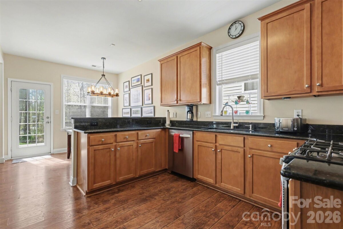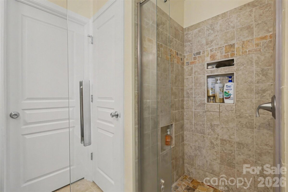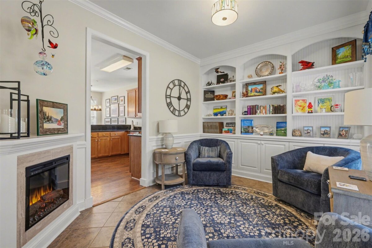 Updated and meticulously maintained, this beautiful Riverbend home checks boxes many buyers don’t expect. Ideally located just minutes to Hwy 16, I-485, Charlotte Douglas International Airport, the U.S. National Whitewater Center, and Mountain Island Lake. A covered rocking chair front porch welcomes you into a light-filled main level featuring 9-foot ceilings, LVP flooring, and an open living area with a gas fireplace. Framed TV with soundbar and subwoofer to remain. The formal dining/flex space includes wainscoting, custom-built shelving, and an electric fireplace—offering both character and versatility. The kitchen has been updated with granite countertops, soft-close cabinetry, and includes a full stainless appliance package with gas range, microwave, dishwasher, and refrigerator. The main level also offers a half bath and access to a rare 2-car garage with cabinet upgrades, providing excellent storage and functionality. Upstairs, the spacious primary suite features an updated en-suite bath with dual vanities, garden tub, tiled shower and floors, and a walk-in closet. Three additional bedrooms/bonus rooms and a fully updated secondary bath complete the second level. Laundry is conveniently located upstairs (washer and dryer to remain). Enjoy a private, wooded backyard with mature trees, two large decks ideal for relaxing or entertaining, and a storage shed for lawn and garden equipment. Community amenities include a large swimming pool with water slides, two playgrounds, and outdoor gathering areas—all within close proximity to the home. Major updates include a new roof (2021) and tankless water heater, offering peace of mind for the next owner. Please refer to the attached list of additional improvements.
