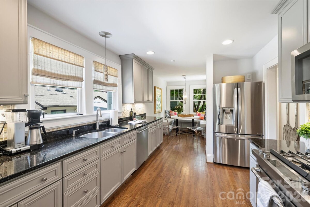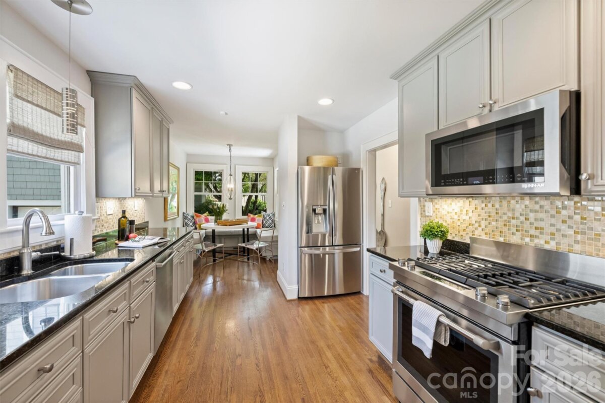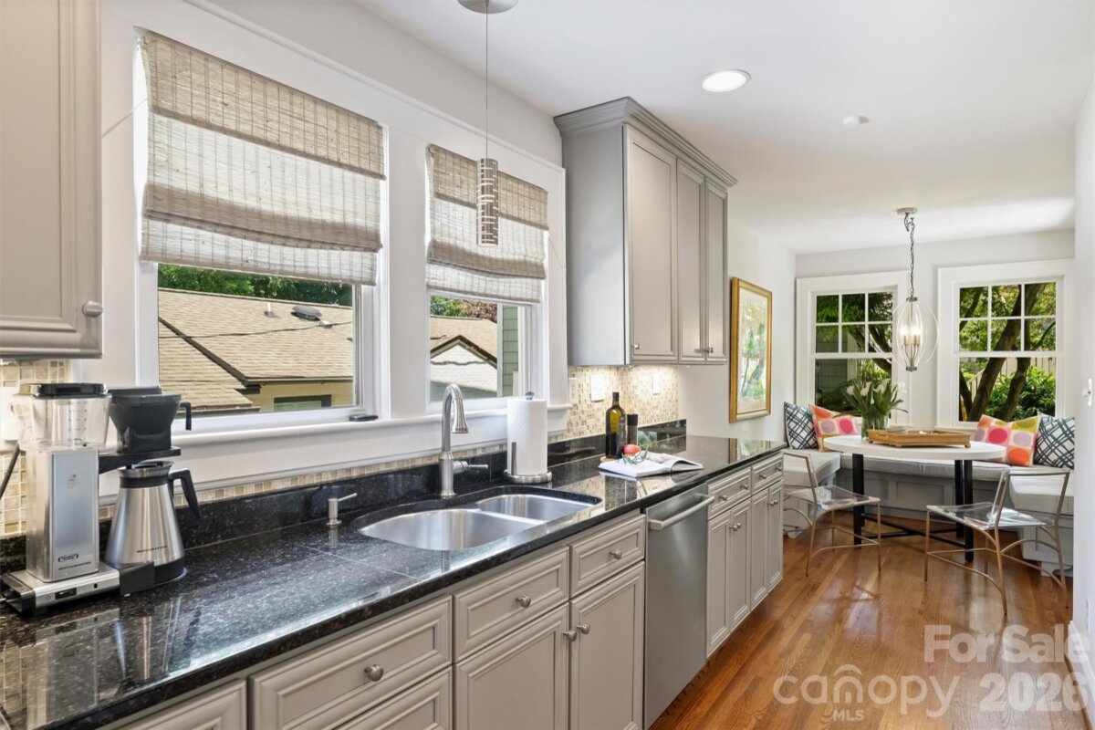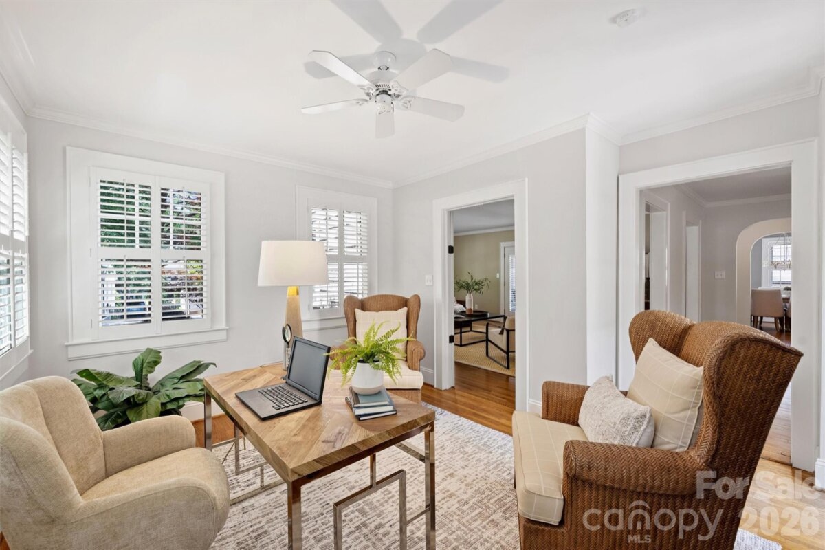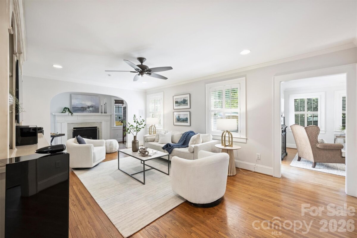 Charm abounds in this well-maintained Myers Park home! Set on a corner manicured lot with professional landscaping, this beautifully designed home features a welcoming floor plan, a garage apartment, covered front porch and a large back patio, offering the perfect blend of classic character and modern livability. Thoughtfully curated and designed spaces include large living and family room with gas log fireplace, a cozy dining room, built-in kitchen seating, office/playroom on first floor, primary suite with sitting area, two large walk-in closets and two secondary bedrooms with a shared bath. The outdoor living area is complete with a privacy fence, newly installed patio and a grilling area which creates the perfect space for relaxing or gatherings. Additional highlights include a fourth bedroom with full bath above the garage and ample basement storage. Just around the corner from nearby shops and dining along Selwyn Ave, with easy access to SouthPark, Uptown, and the Greenway. An absolute gem of a home you do not want to miss this one!